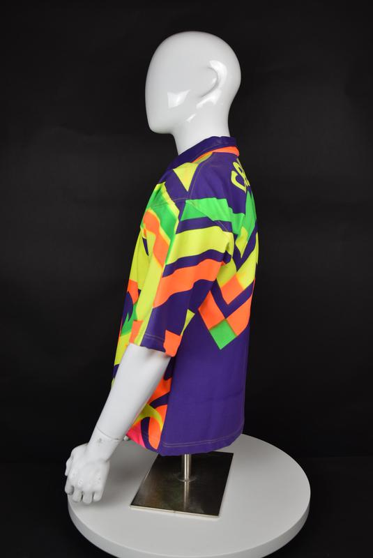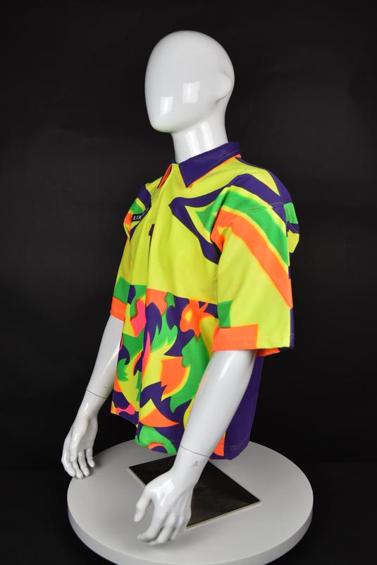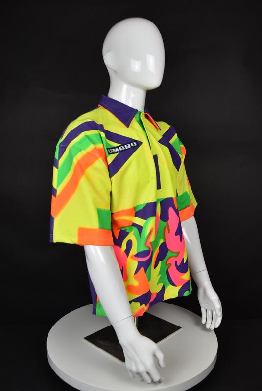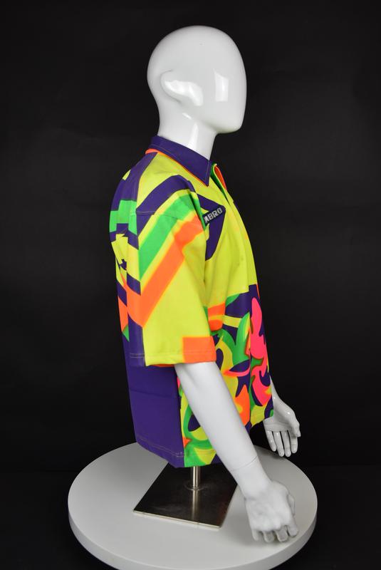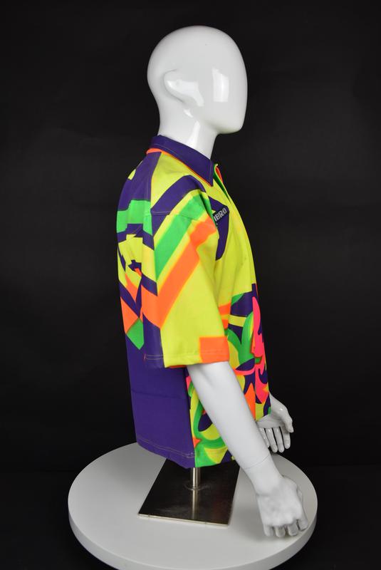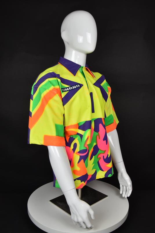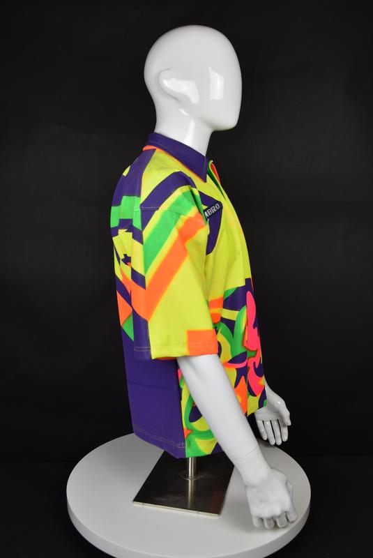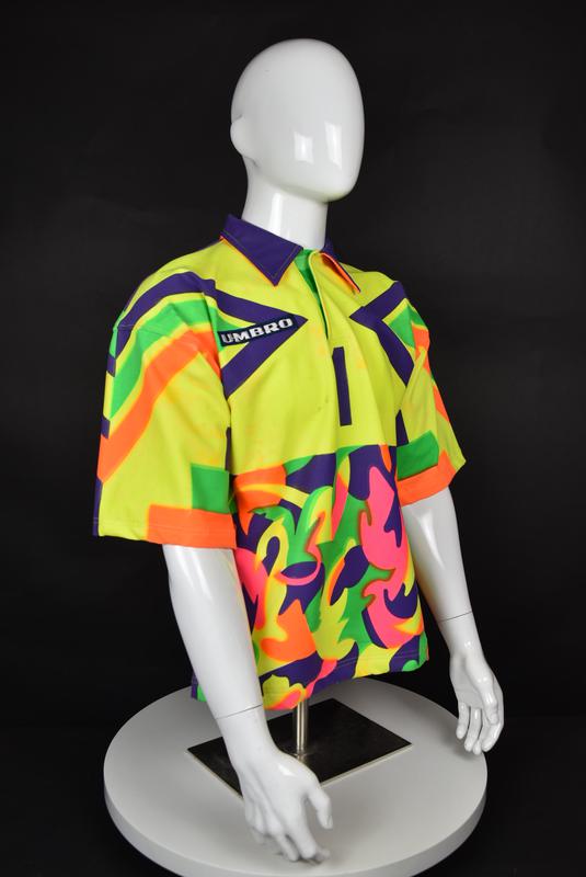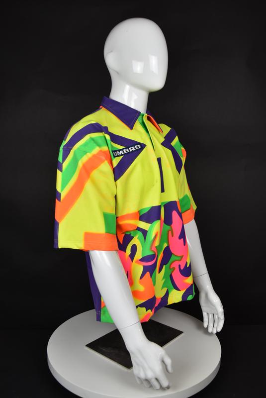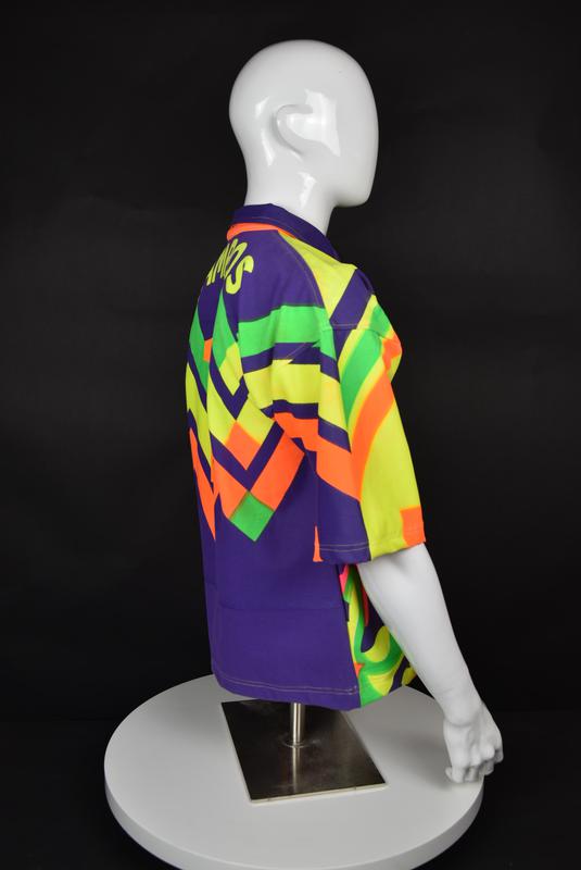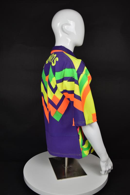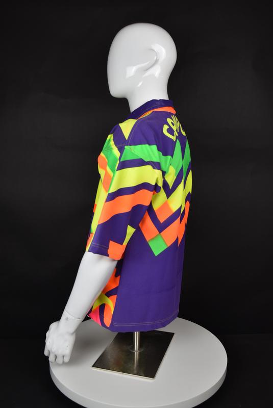 Подготвена за вратаря Хорхе Кампос фланелка на Мексико от Световното първенство САЩ 1994. Екипите от тази лимитирана серия (25 бройки) са по лична идея и изработка на ексцентричния вратар, който носи различен цветен дизайн във всеки двубой. Този е използван в двубоя срещу Норвегия от груповата фаза. Мексиканците отпадат на 1/8 финал от България след изпълнение на дузпи. Висок едва 168 см, Кампос се отличава с уникалния си стил на игра и акробатични спасявания. Шареният екип му спечелва прякора „Папагала“. Хорхе е участник на 3 световни първенства и има записани 130 двубоя с националната фланелка на Мексико.