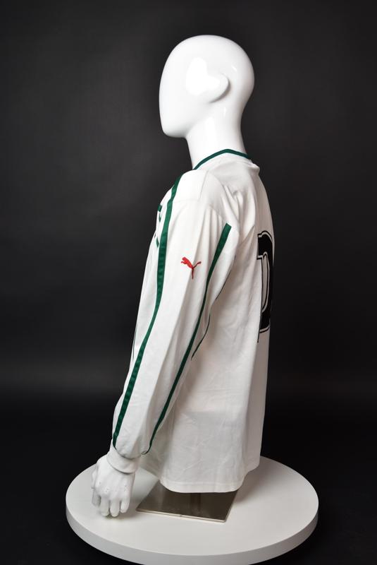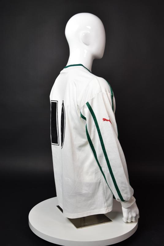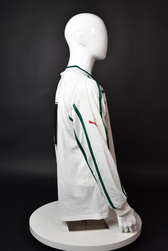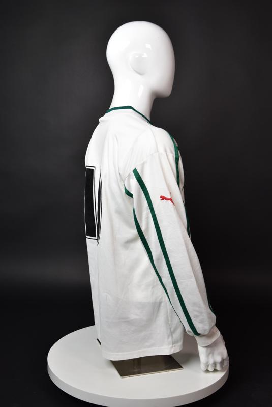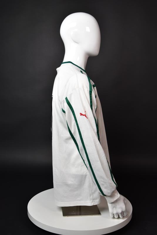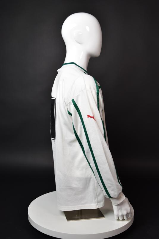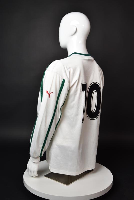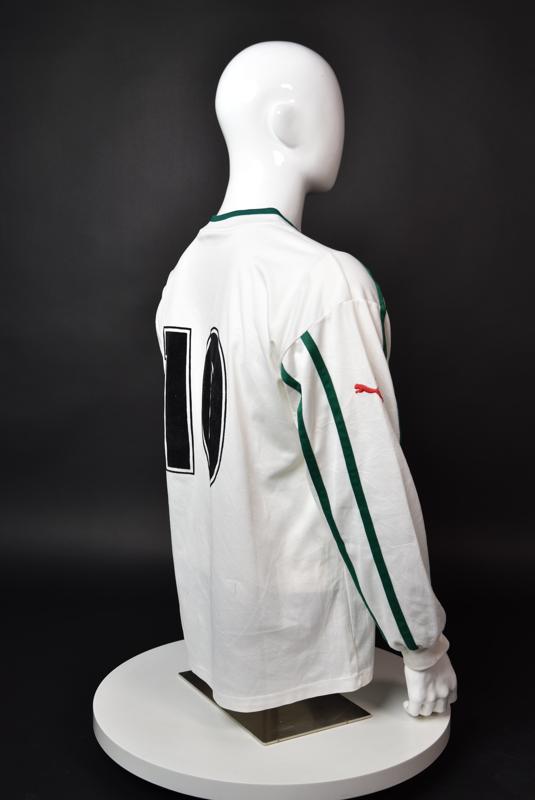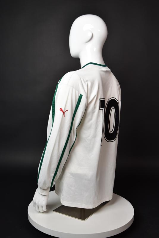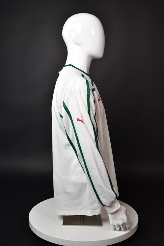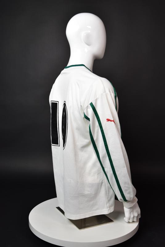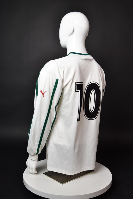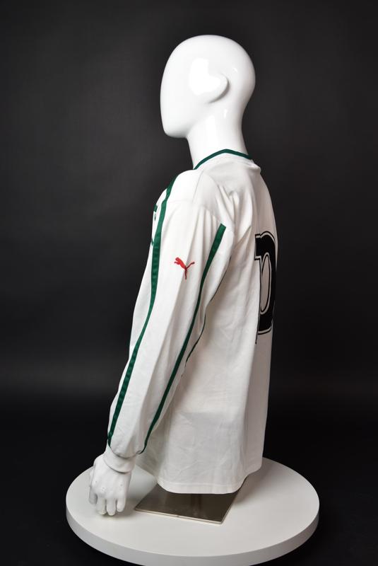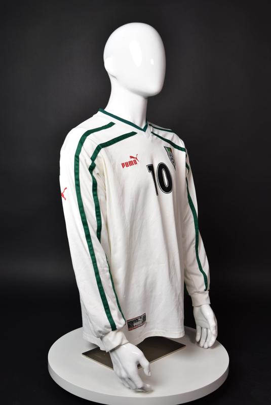 Bulgaria shirt issued to Krasimir Balakov for the 2002 FIFA World Cup Qualifiers. This is a special shirt as Bulgaria only wore black coloured printings in the last three games of the qualifying group - away games at Malta and Czechia and the home match against Denmark. Balakov, however, wore short sleeve shirts in these games. For the rest of the games the colour of the shirt number printings is red. The former attacking midfilder made 92 appearances for the national team between 1988 and 2003 (one of the best totals in national history) and scored 16 goals. He is a bronze medalist from the 1994 FIFA World Cup and was voted to the World Cup All-Star team.