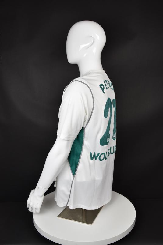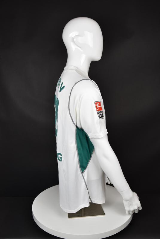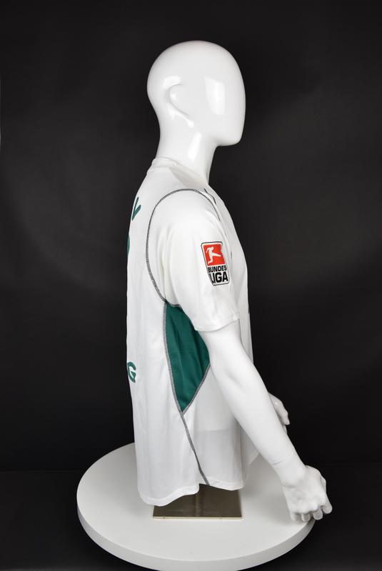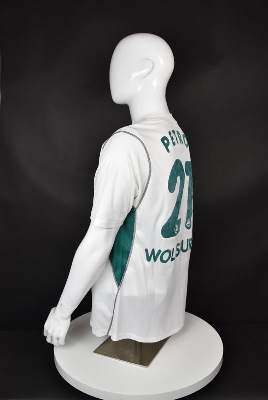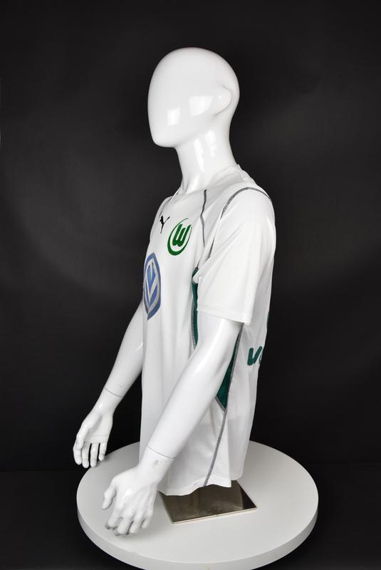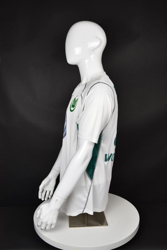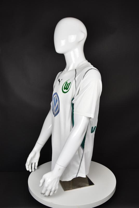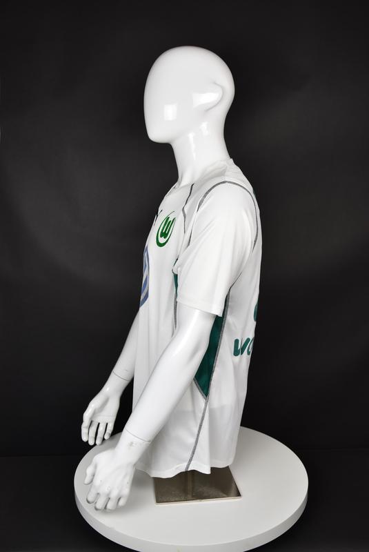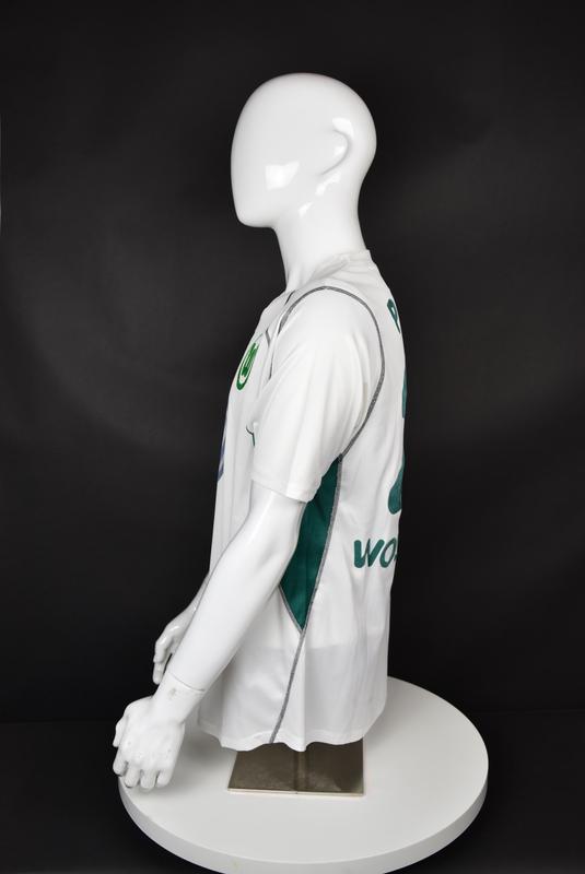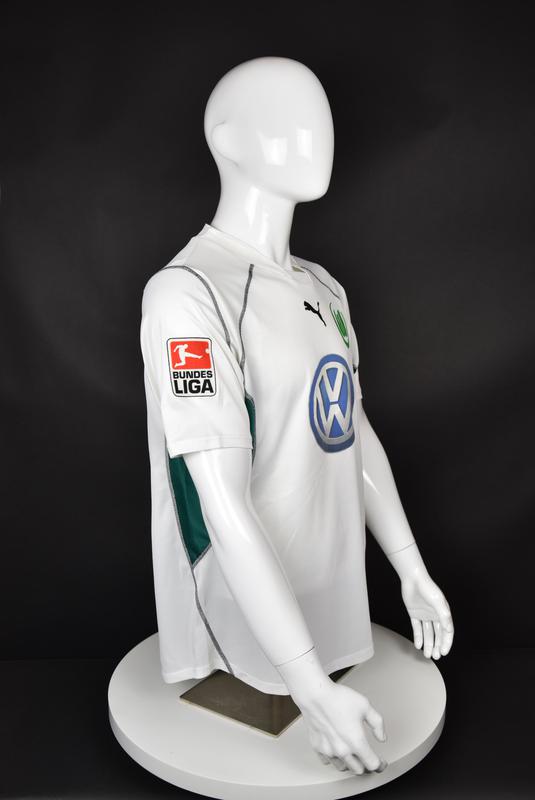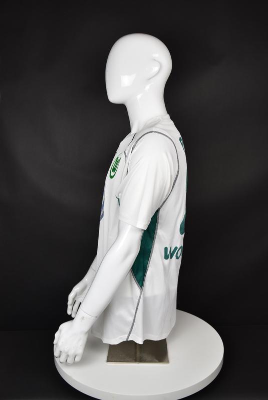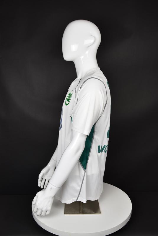 Wolfsburg shirt worn by Martin Petrov during the 2002/2003 season. The former Bulgarian International winger went on to make 137 appearances for the Bundesliga side in the period 2001-2005, scoring 40 goals. Petrov earned 90 caps for the national team, scoring 19 goals. He was part of the squad at the 2004 European Championship in Portugal, excelling in all three games and scoring Bulgaria's only goal at the finals - a penalty against Italy in the 1:2 loss. Petrov has won the League title and the League cup of both Bulgarian and Swiss championships, with CSKA Sofia and Servette Geneva, respectively. In 2006, he was voted the Bulgarian Footballer of the Year award.