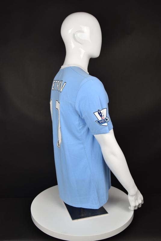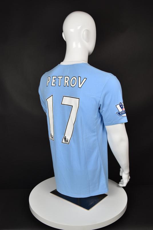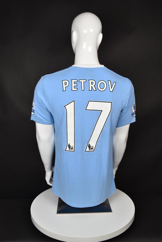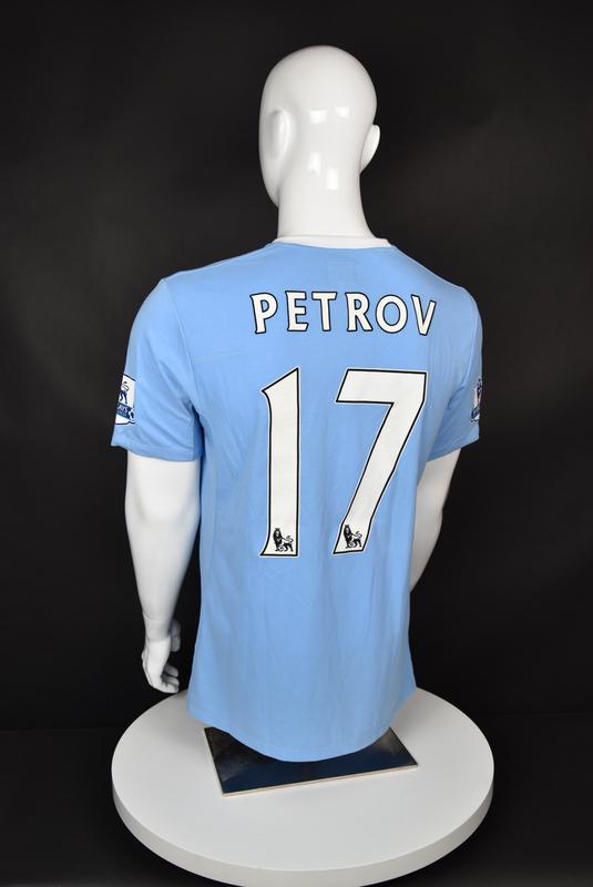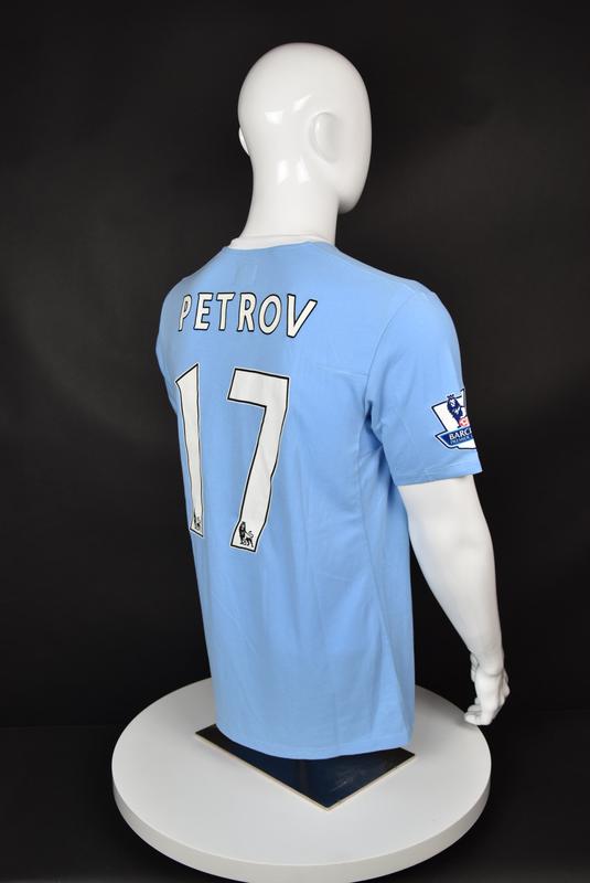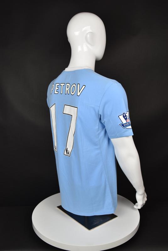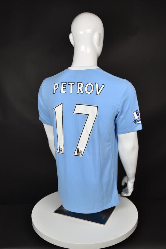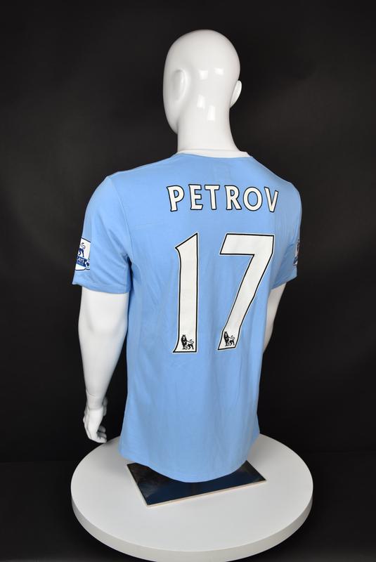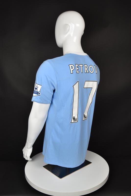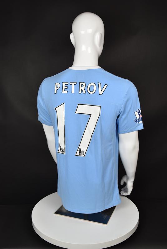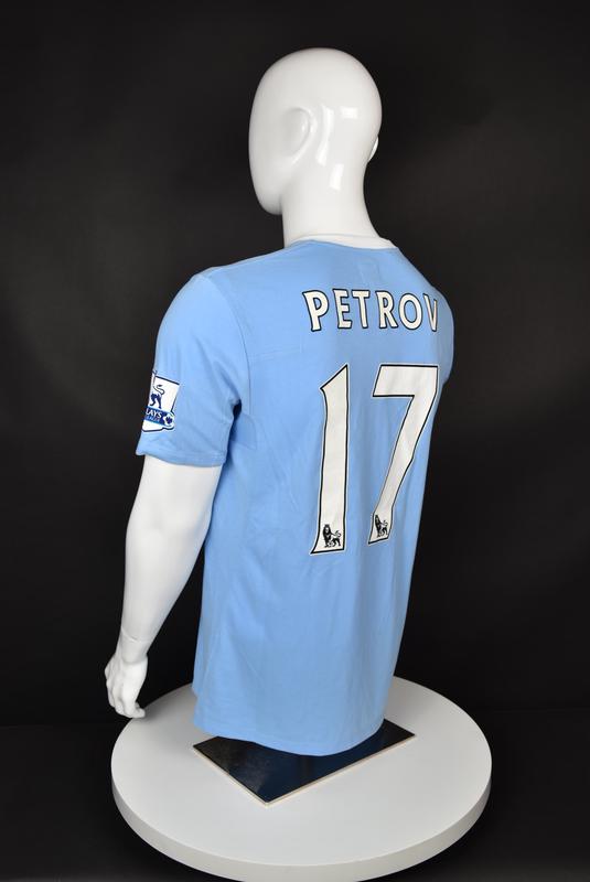 Manchester City shirt worn by Martin Petrov in the League Cup Round of 32 clash against Fulham (2:1). Game played at Etihad on September 23, 2009. The former Bulgarian International winger went on to make 72 appearances for the club in the period 2007-2010, scoring 12 goals in total. Petrov earned 90 caps for the national team, scoring 19 goals. He was part of the squad at the 2004 European Championship in Portugal, excelling in all three games and scoring Bulgaria's only goal at the finals - a penalty against Italy in the 1:2 loss. Petrov has won the League title and the League cup of both Bulgarian and Swiss championships, with CSKA Sofia and Servette Geneva, respectively. In 2006, he was voted the Bulgarian Footballer of the Year award.