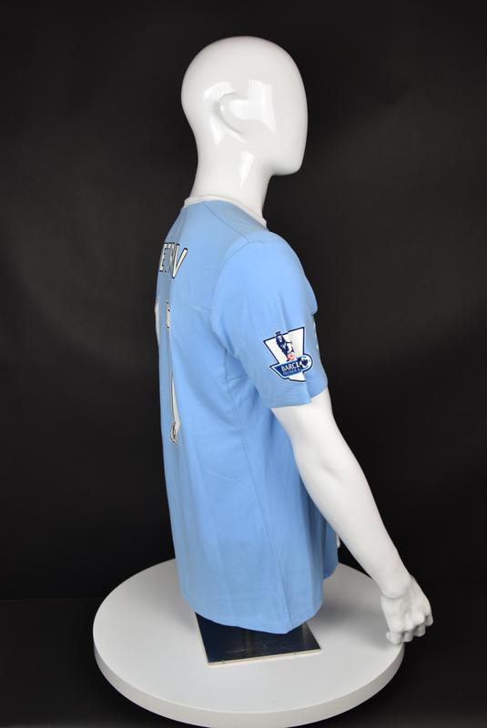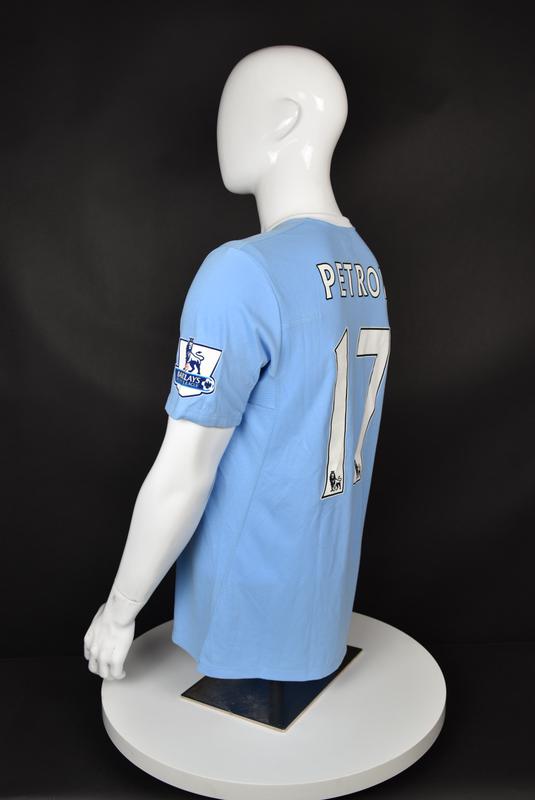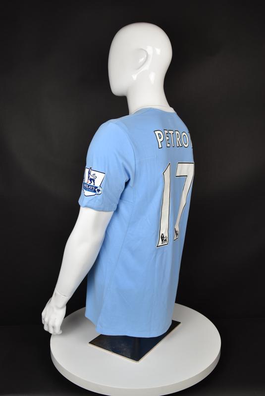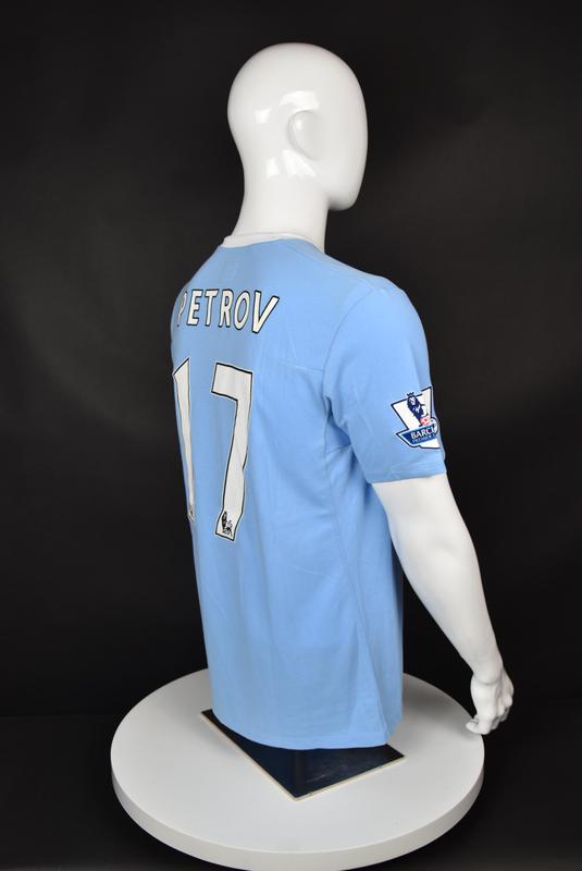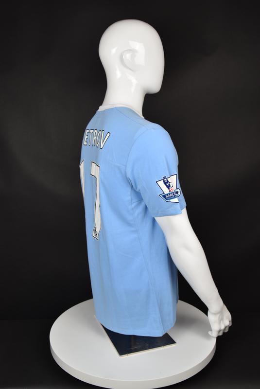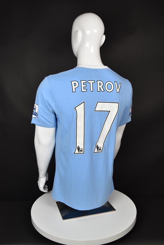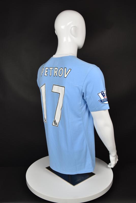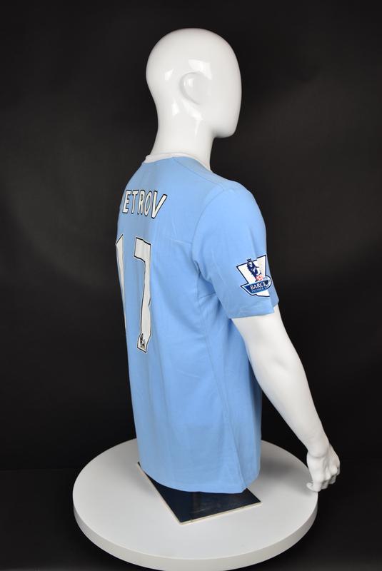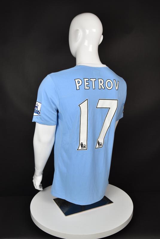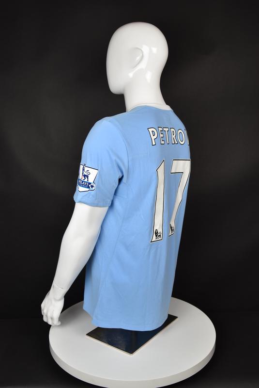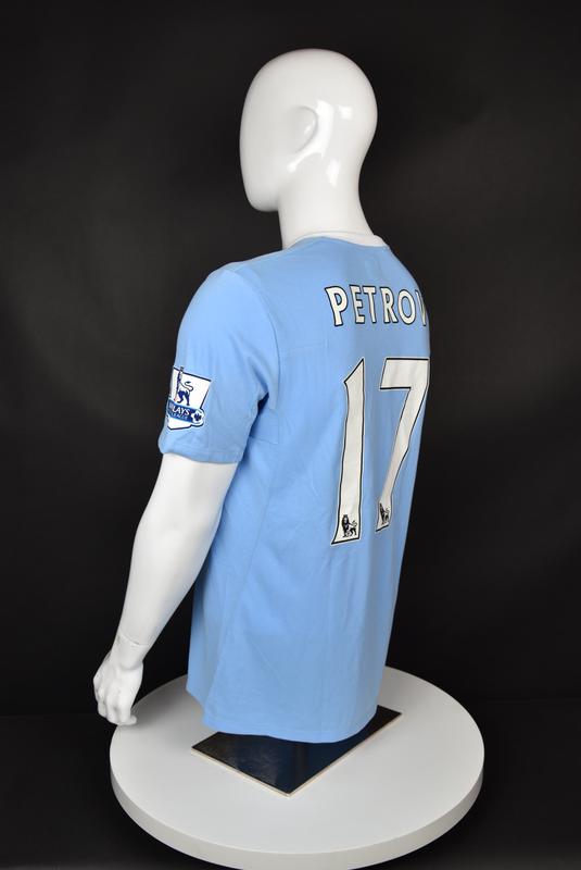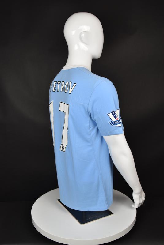 Manchester City shirt worn by Martin Petrov in the League Cup Round of 32 clash against Fulham (2:1). Game played at Etihad on September 23, 2009. The former Bulgarian International winger went on to make 72 appearances for the club in the period 2007-2010, scoring 12 goals in total. Petrov earned 90 caps for the national team, scoring 19 goals. He was part of the squad at the 2004 European Championship in Portugal, excelling in all three games and scoring Bulgaria's only goal at the finals - a penalty against Italy in the 1:2 loss. Petrov has won the League title and the League cup of both Bulgarian and Swiss championships, with CSKA Sofia and Servette Geneva, respectively. In 2006, he was voted the Bulgarian Footballer of the Year award.
