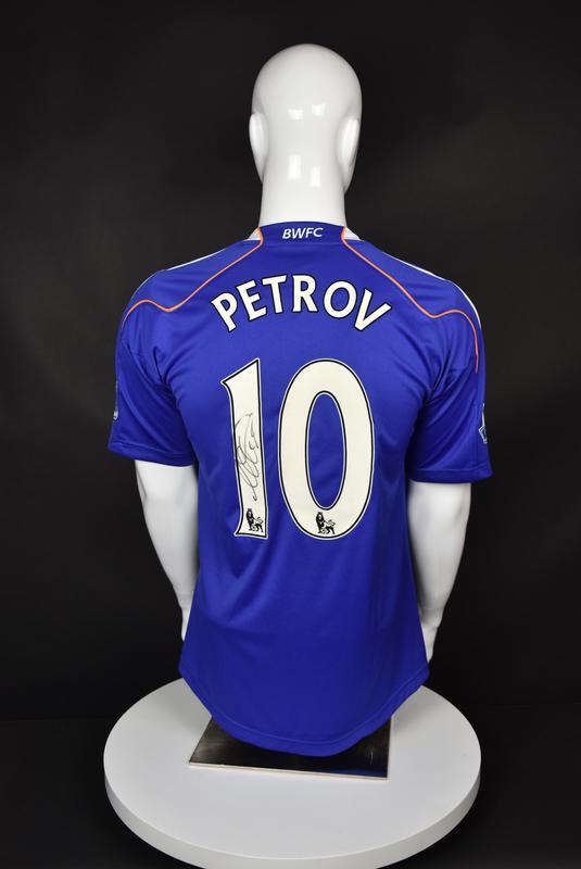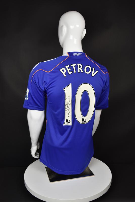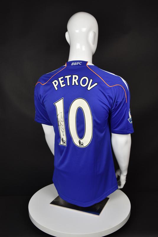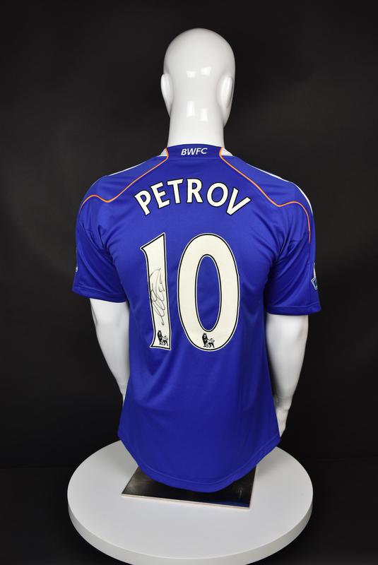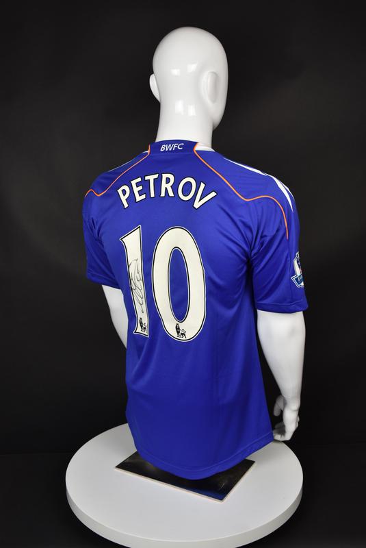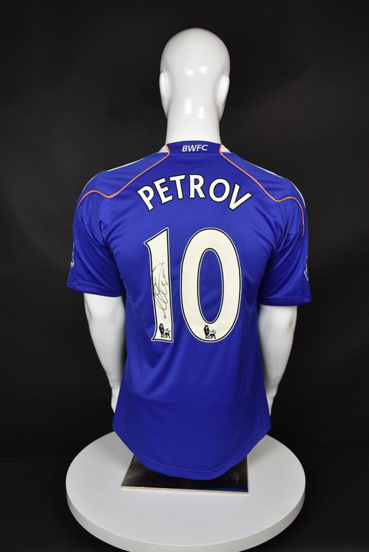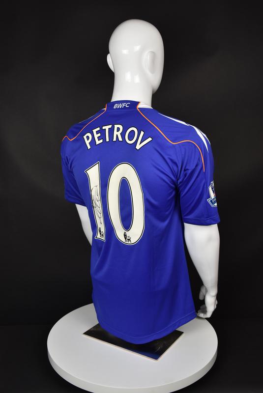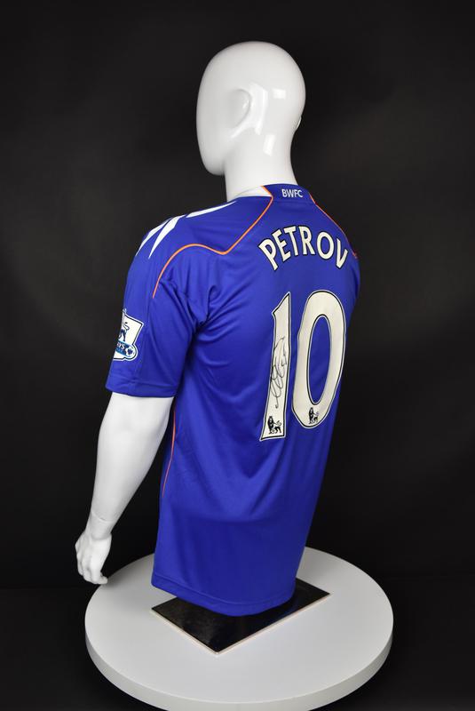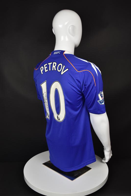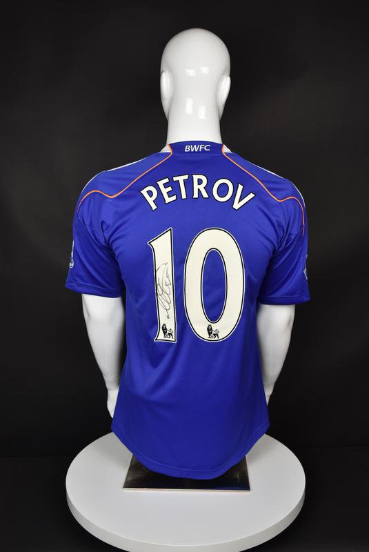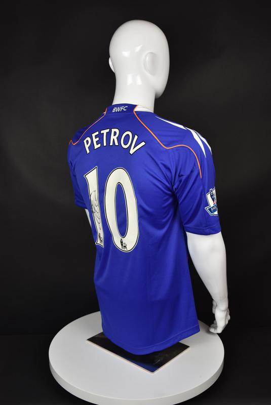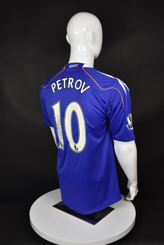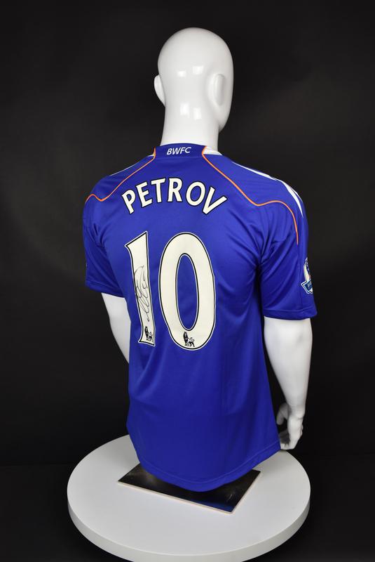 Bolton Wanderers shirt worn by Martin Petrov during the 2010/2011 season. The former Bulgarian International winger went on to score 12 goals in 86 games for the club. Shirt is signed by the player. Petrov earned 90 caps for the national team, scoring 19 goals. He was part of the squad at the 2004 European Championship in Portugal, excelling in all three games and scoring Bulgaria's only goal at the finals - a penalty against Italy in the 1:2 loss. Petrov has won the League title and the League cup of both Bulgarian and Swiss championships, with CSKA Sofia and Servette Geneva, respectively. In 2006, he was voted the Bulgarian Footballer of the Year award.