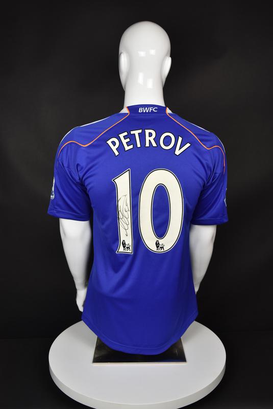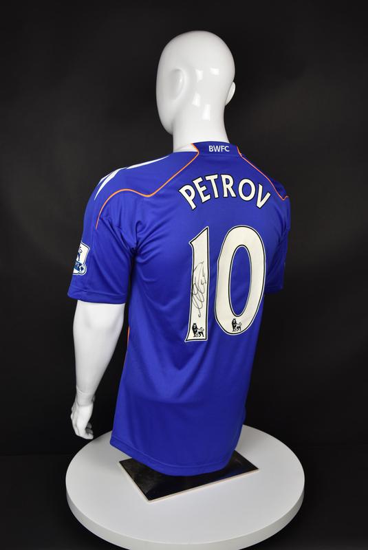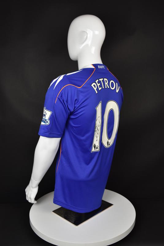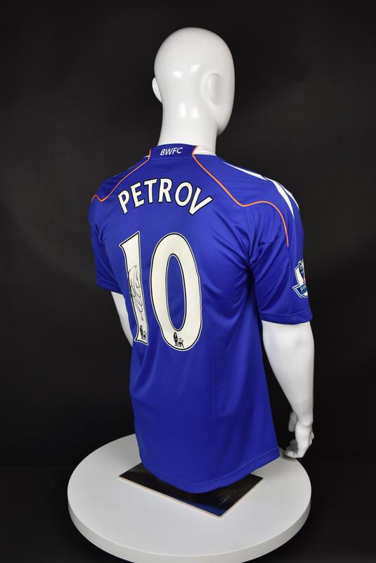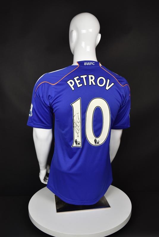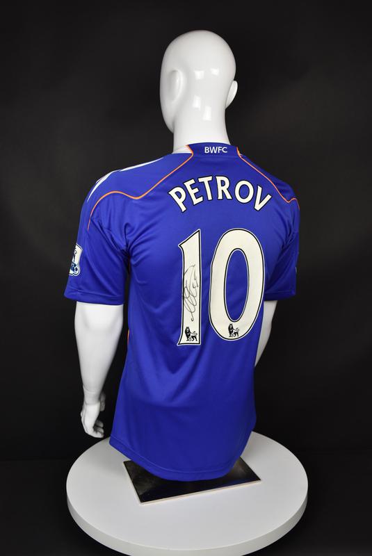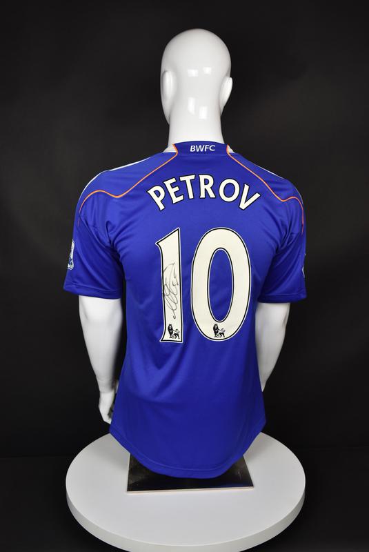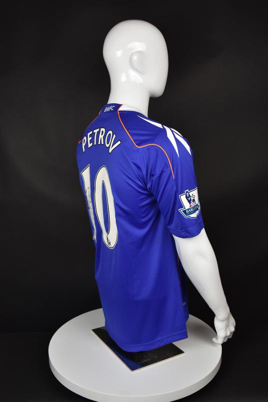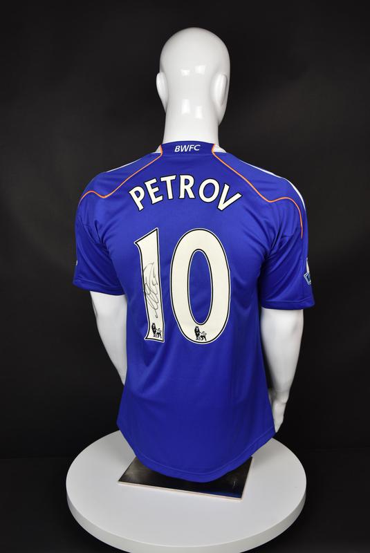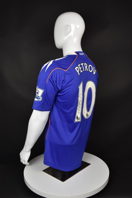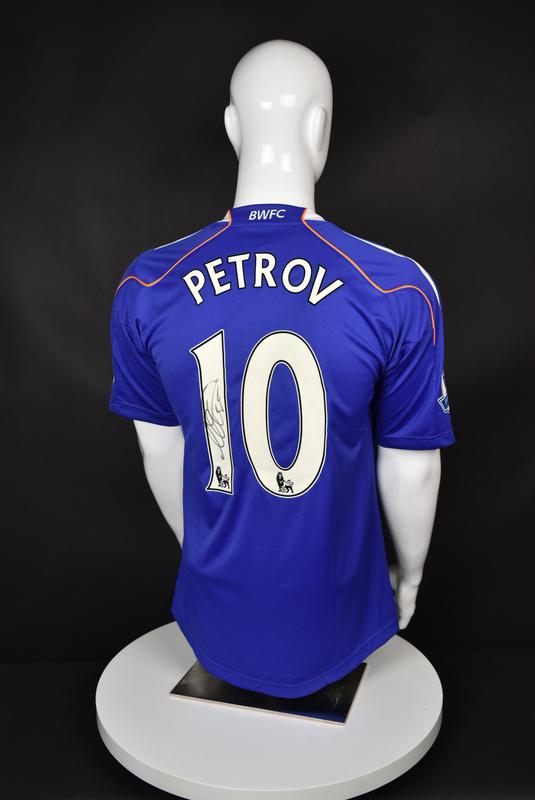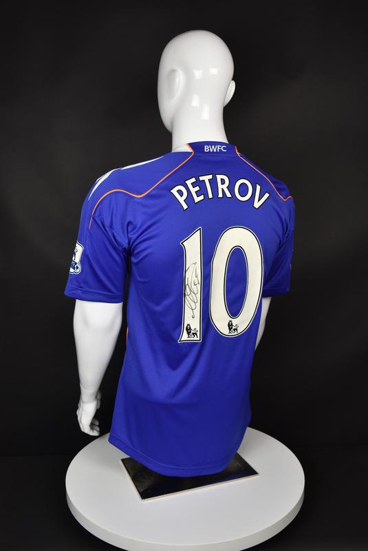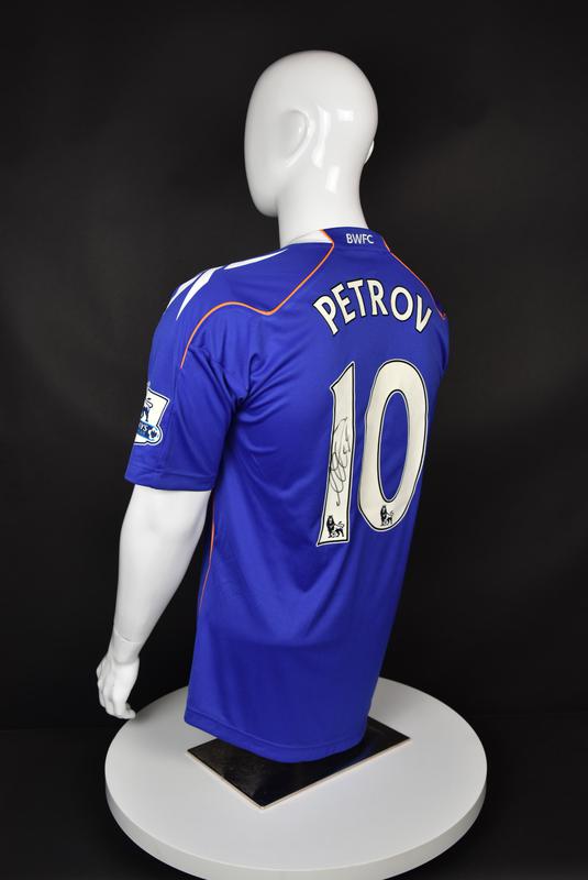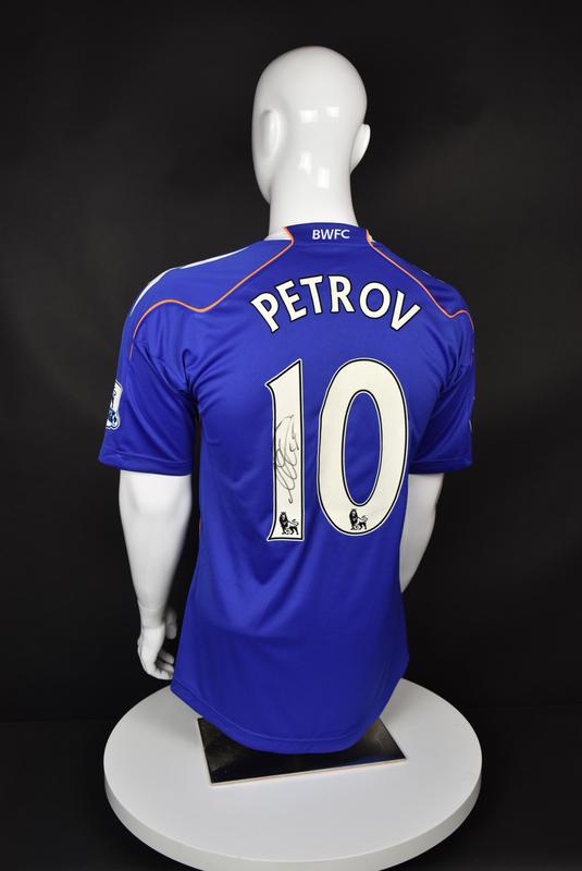 Bolton Wanderers shirt worn by Martin Petrov during the 2010/2011 season. The former Bulgarian International winger went on to score 12 goals in 86 games for the club. Shirt is signed by the player. Petrov earned 90 caps for the national team, scoring 19 goals. He was part of the squad at the 2004 European Championship in Portugal, excelling in all three games and scoring Bulgaria's only goal at the finals - a penalty against Italy in the 1:2 loss. Petrov has won the League title and the League cup of both Bulgarian and Swiss championships, with CSKA Sofia and Servette Geneva, respectively. In 2006, he was voted the Bulgarian Footballer of the Year award.