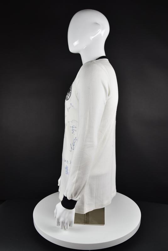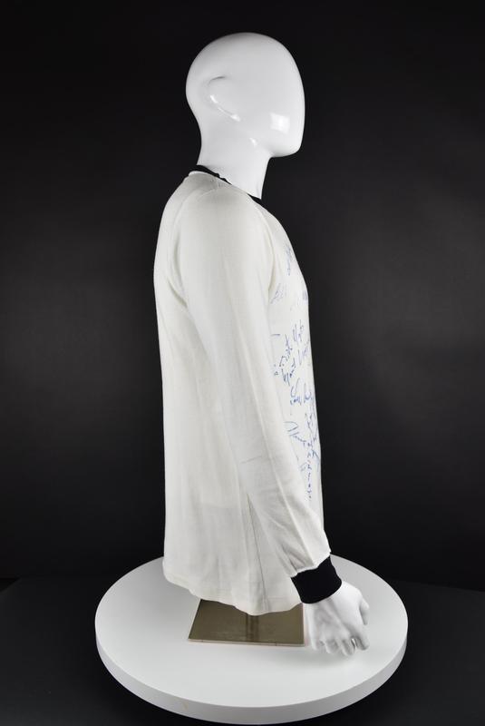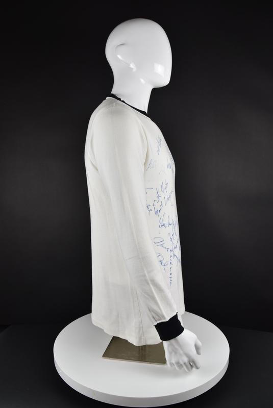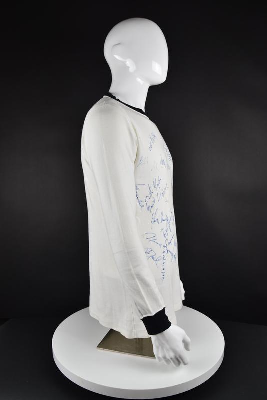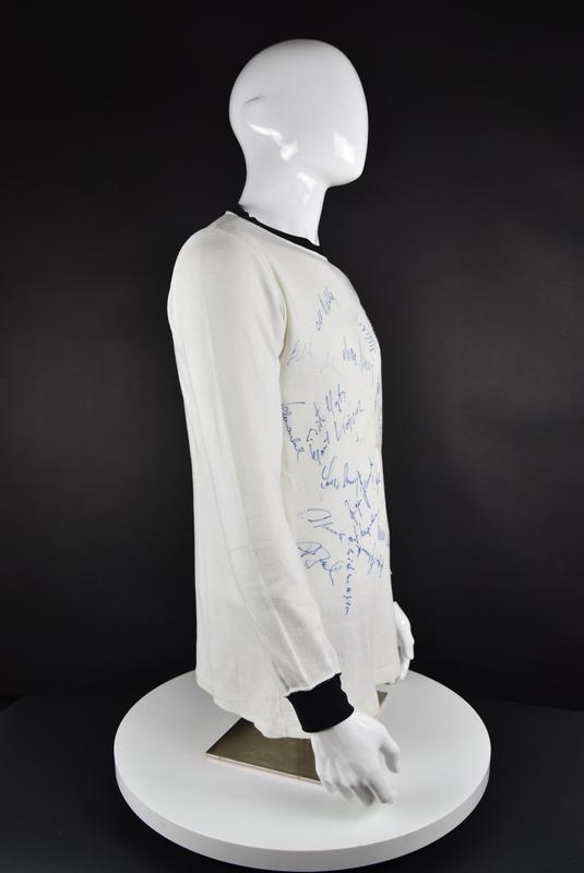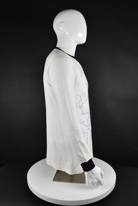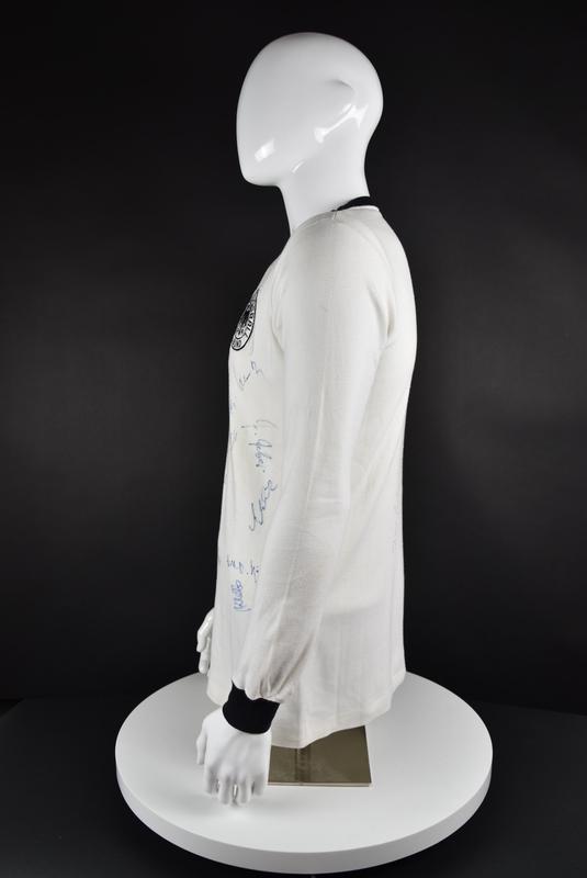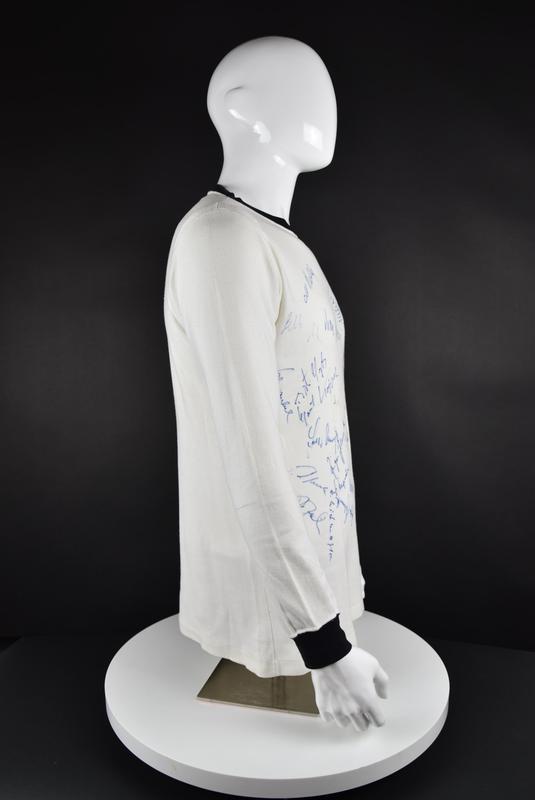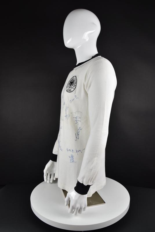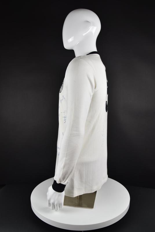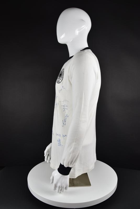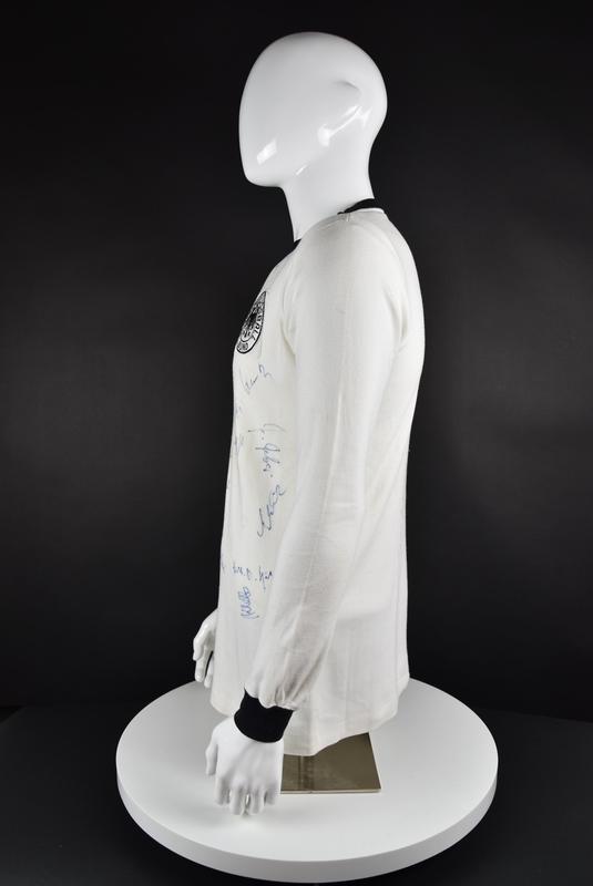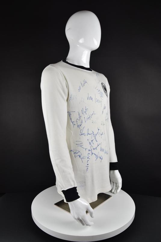 Germany (BRD) shirt believed to have been worn by Gerd Muller in an International friendly match against the USSR (4:1). Game played at the official opening of "Olympiastadion" in Munich on May 26, 1972. "Der Bomber" scored all 4 goals against the Soviets. Shirt is signed by the entire 1972 squad and is gifted by Franz Beckenbauer to a Bayern Munich team's doctor. At International level with West Germany, Muller scored the incredible 68 goals in 62 appearances, and at club level, in 15 years with Bayern Munich, he scored 398 goals. "Der Bomber" is World (1974) and European (1972) champion with West Germany. He won "Ballon d'Or" in 1970 when he scored ten goals at the 1970 FIFA World Cup in Mexico. He won three European Cups in a row with Bayern Munich (1974, 1975, 1976).