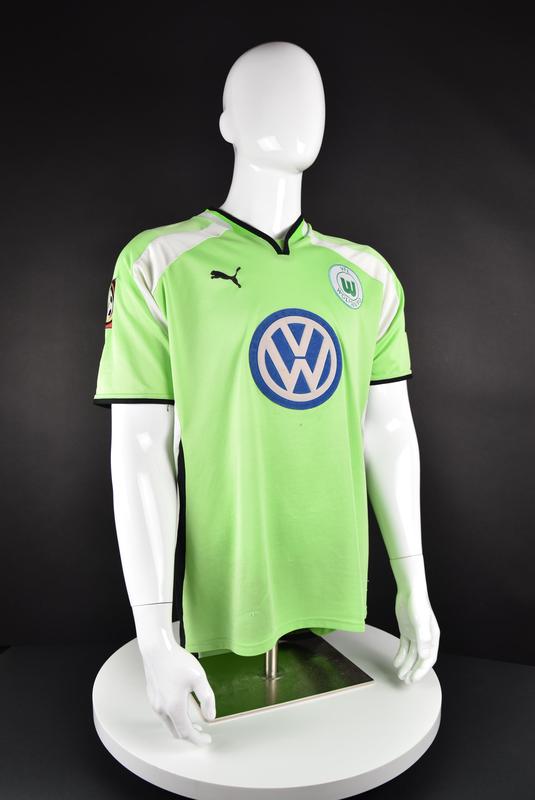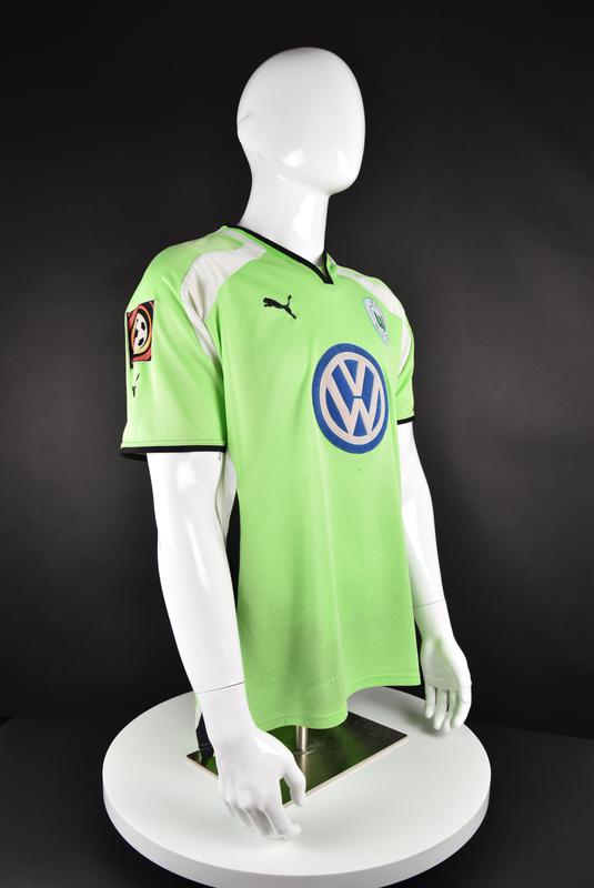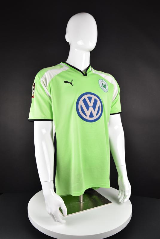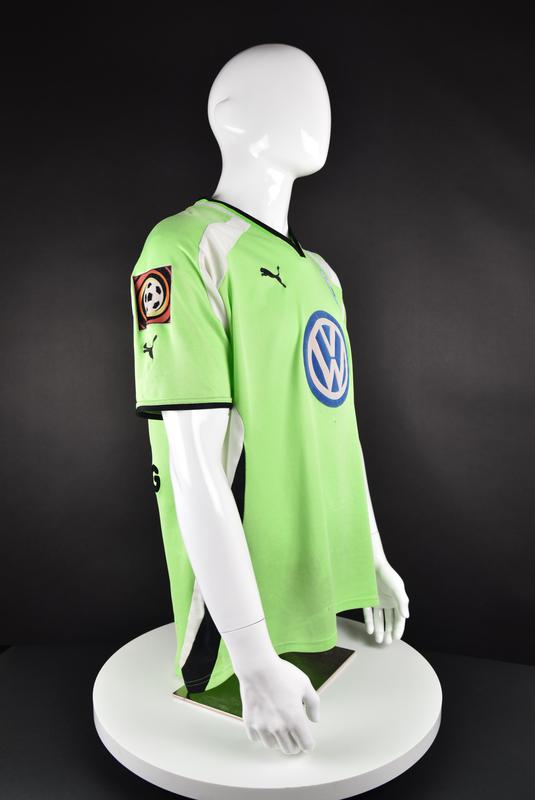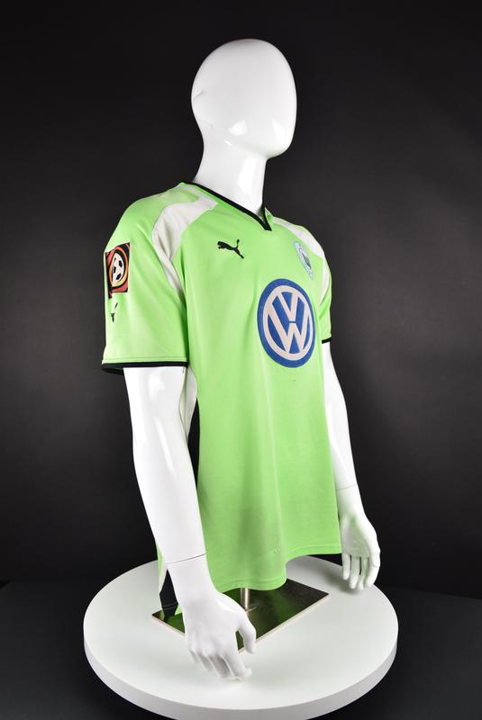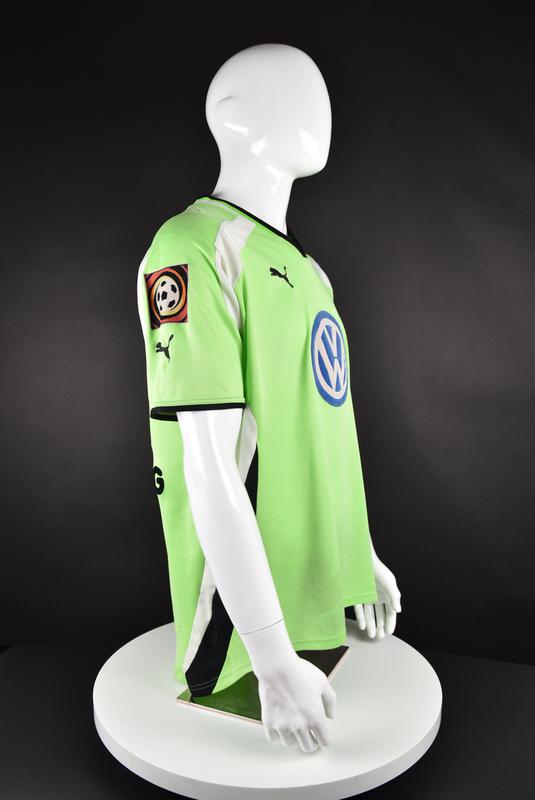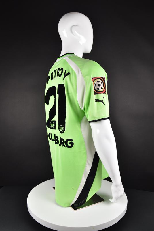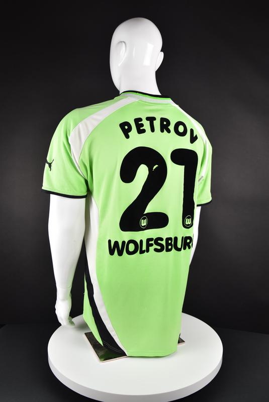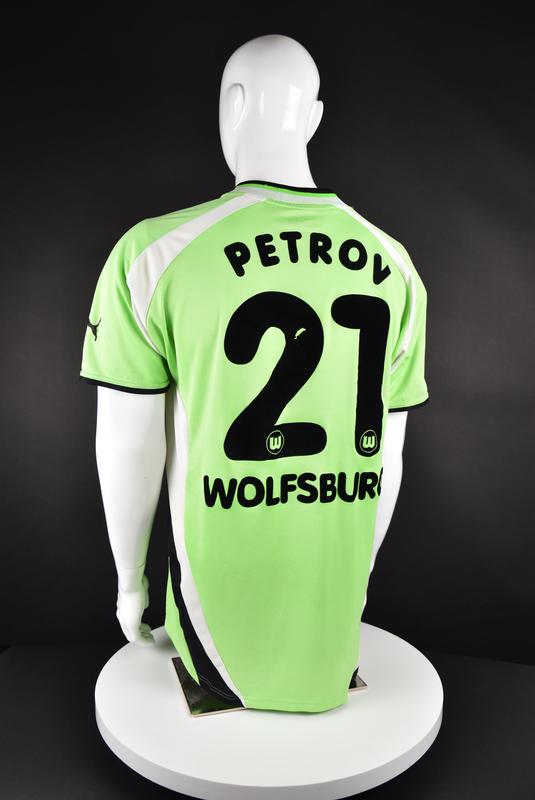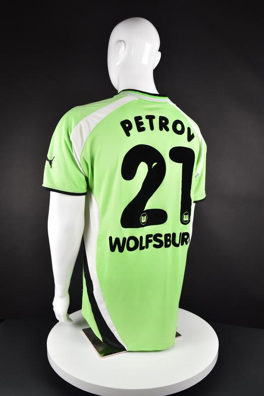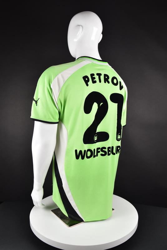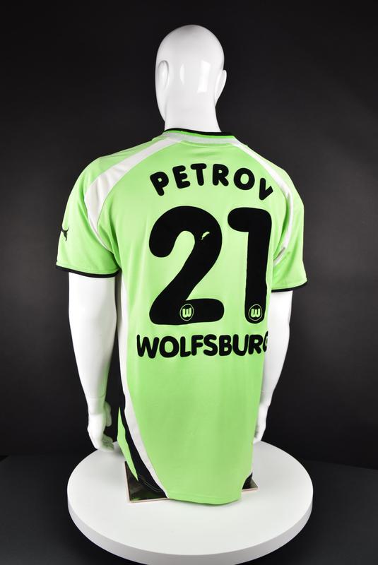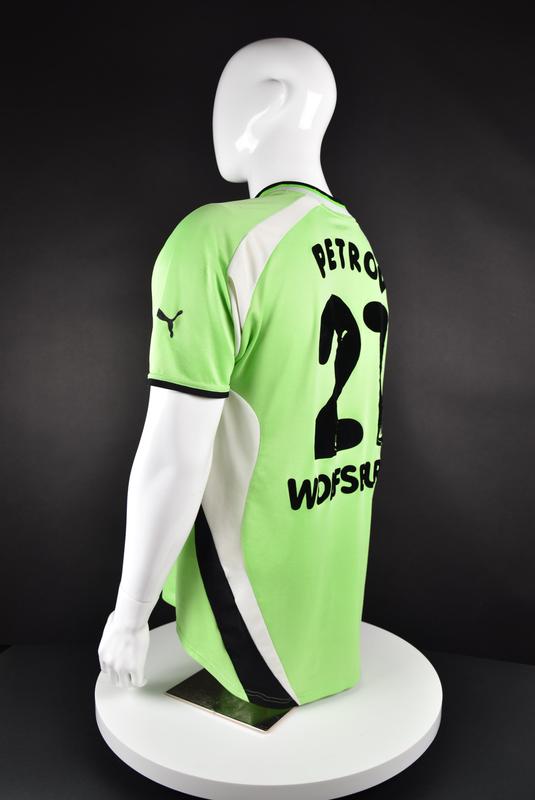 Wolfsburg shirt worn by Martin Petrov during the 2001/2002 season. The former Bulgarian International winger went on to make 137 appearances for the Bundesliga side in the period 2001-2005, scoring 40 goals. Shirt is gifted by the player. Petrov earned 90 caps for the national team, scoring 19 goals. He was part of the squad at the 2004 European Championship in Portugal, excelling in all three games and scoring Bulgaria's only goal at the finals - a penalty against Italy in the 1:2 loss. Petrov has won the League title and the League cup of both Bulgarian and Swiss championships, with CSKA Sofia and Servette Geneva, respectively. In 2006, he was voted the Bulgarian Footballer of the Year award.