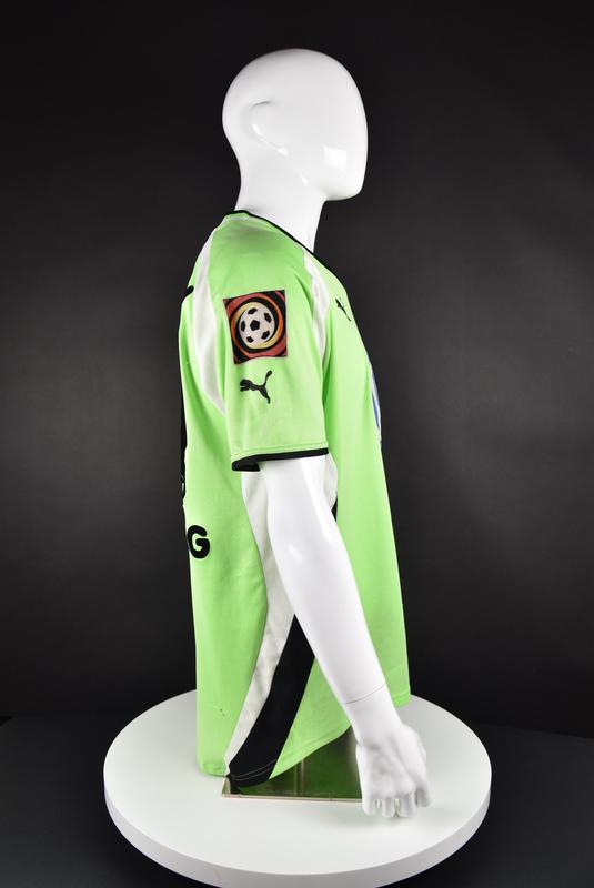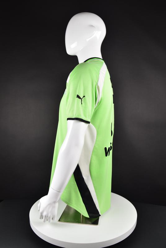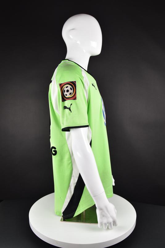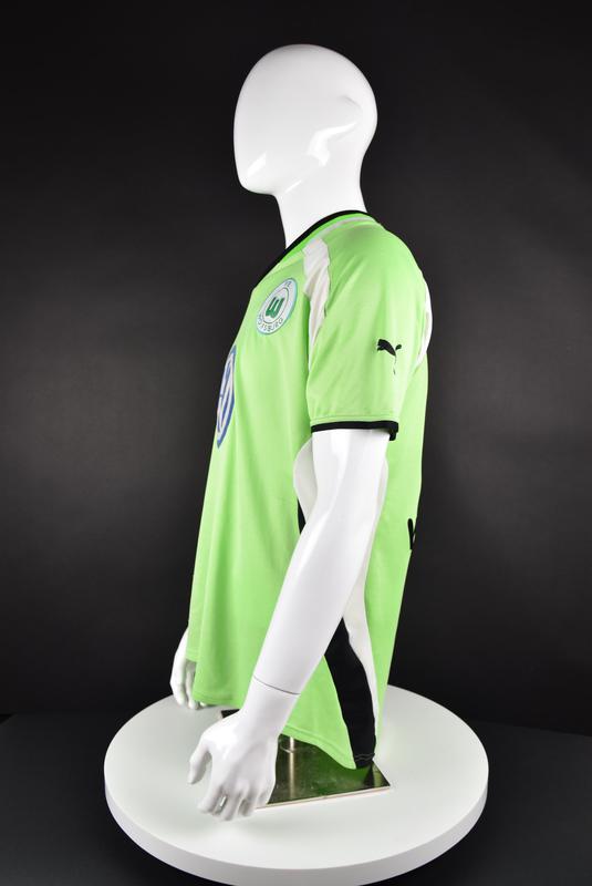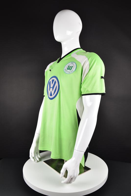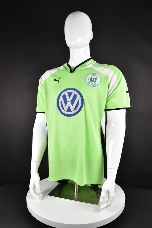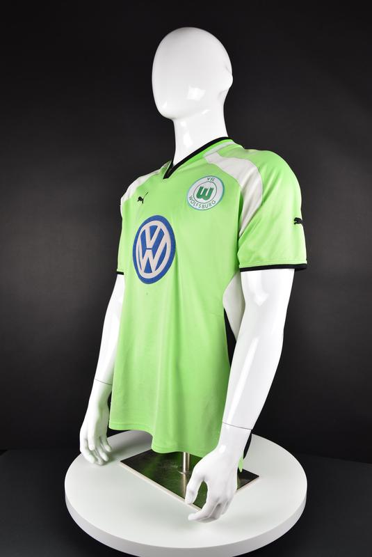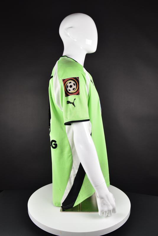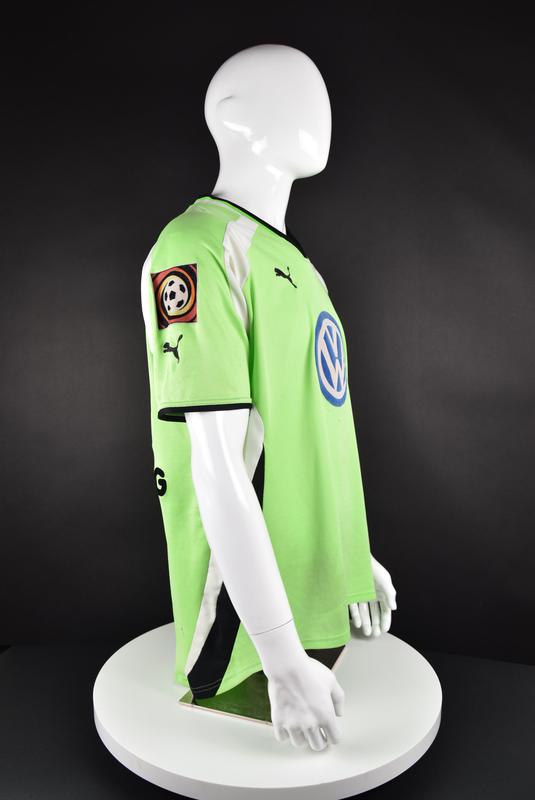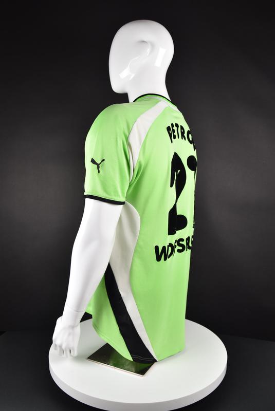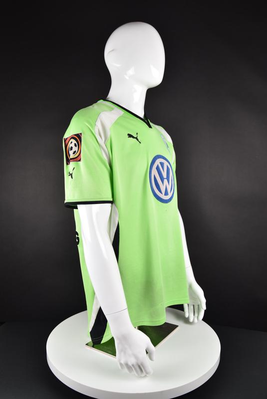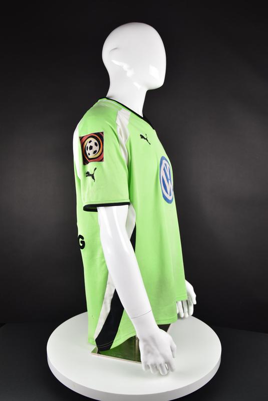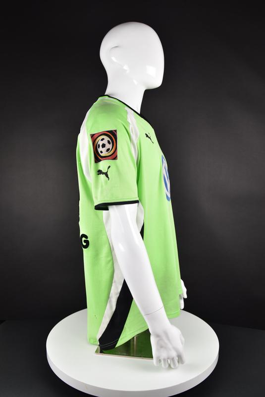 Wolfsburg shirt worn by Martin Petrov during the 2001/2002 season. The former Bulgarian International winger went on to make 137 appearances for the Bundesliga side in the period 2001-2005, scoring 40 goals. Shirt is gifted by the player. Petrov earned 90 caps for the national team, scoring 19 goals. He was part of the squad at the 2004 European Championship in Portugal, excelling in all three games and scoring Bulgaria's only goal at the finals - a penalty against Italy in the 1:2 loss. Petrov has won the League title and the League cup of both Bulgarian and Swiss championships, with CSKA Sofia and Servette Geneva, respectively. In 2006, he was voted the Bulgarian Footballer of the Year award.