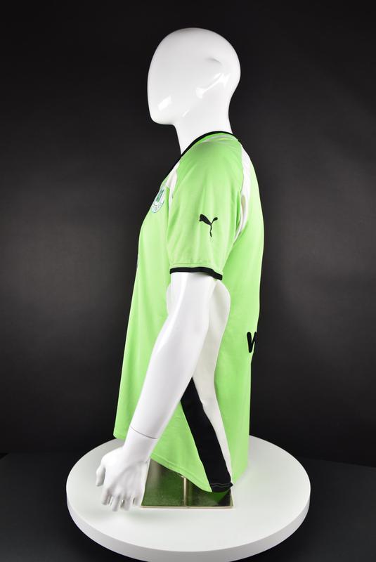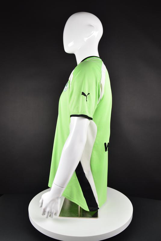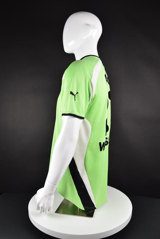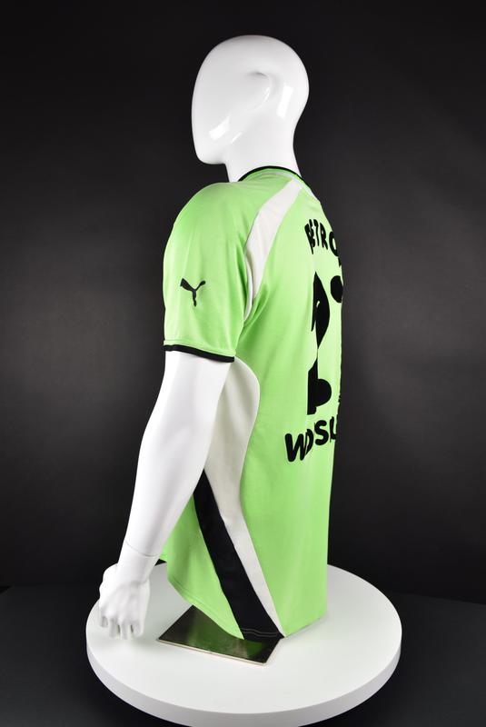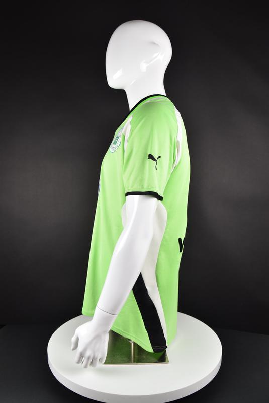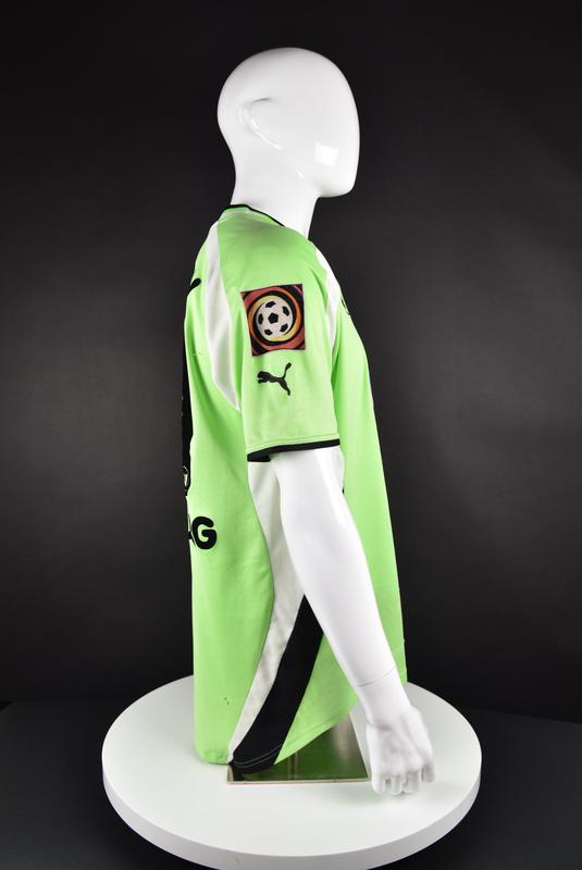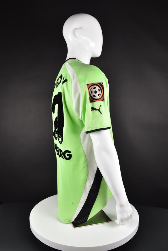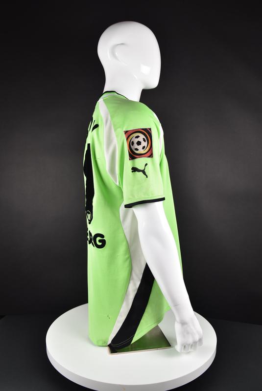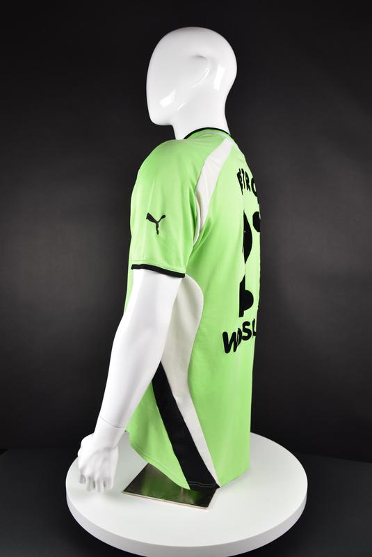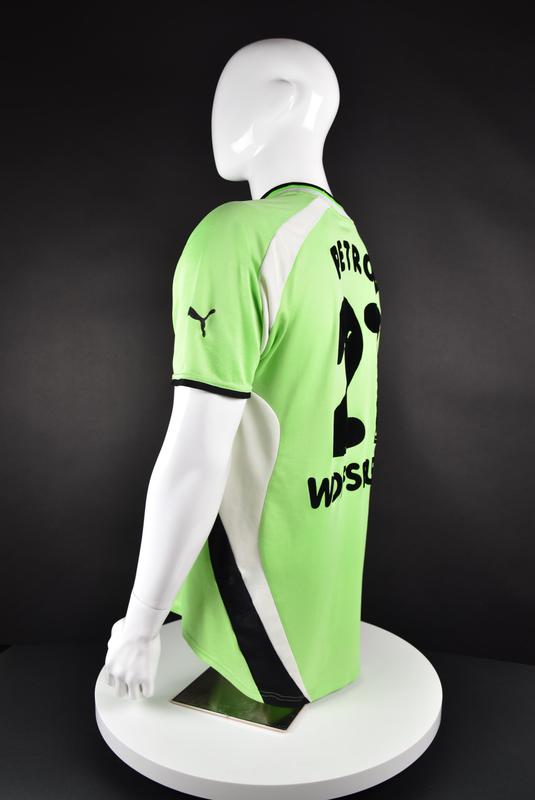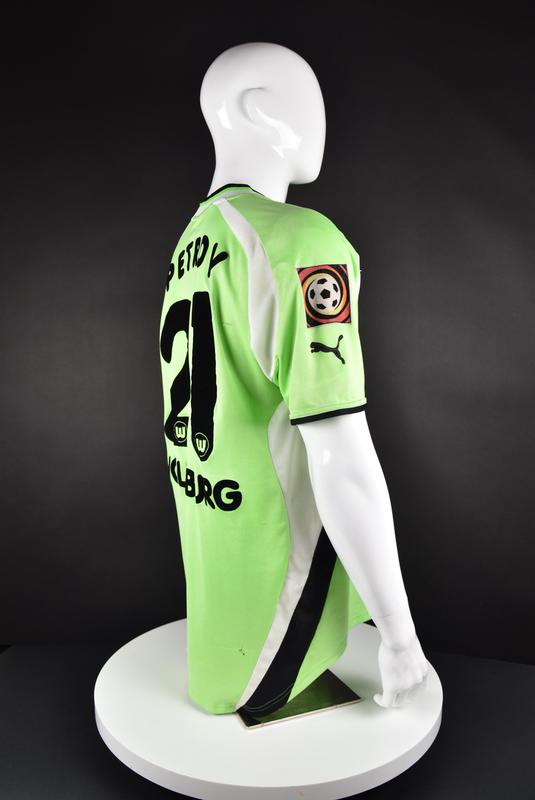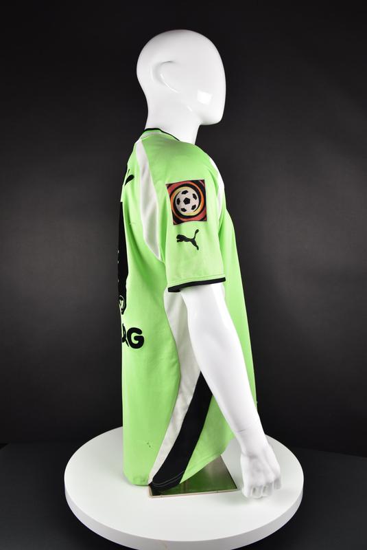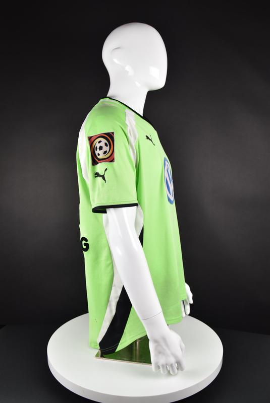 Wolfsburg shirt worn by Martin Petrov during the 2001/2002 season. The former Bulgarian International winger went on to make 137 appearances for the Bundesliga side in the period 2001-2005, scoring 40 goals. Shirt is gifted by the player. Petrov earned 90 caps for the national team, scoring 19 goals. He was part of the squad at the 2004 European Championship in Portugal, excelling in all three games and scoring Bulgaria's only goal at the finals - a penalty against Italy in the 1:2 loss. Petrov has won the League title and the League cup of both Bulgarian and Swiss championships, with CSKA Sofia and Servette Geneva, respectively. In 2006, he was voted the Bulgarian Footballer of the Year award.