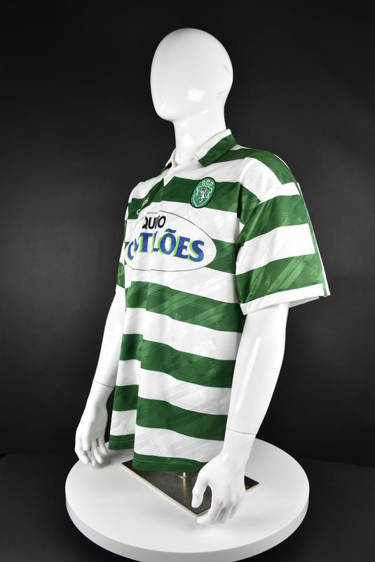 Sporting Lisbon shirt worn by Krasimir Balakov during the 1994/1995 season. The former Bulgarian International attacking midfielder went on to make 138 appearances for the club in Primeira Liga, scoring 43 goals. Balakov won the Portuguese Cup with Sporting in 1995. Shirt is gifted by the player. Balakov made 92 appearances for Bulgaria between 1988 and 2003 (one of the best totals in national history) and scored 16 goals. He is a bronze medalist from the 1994 FIFA World Cup and was voted to the World Cup All-Star team.