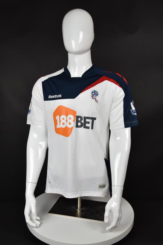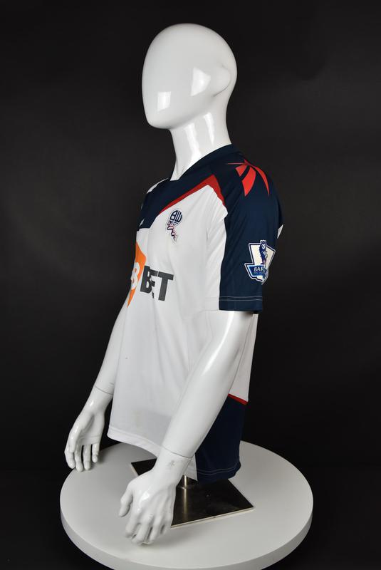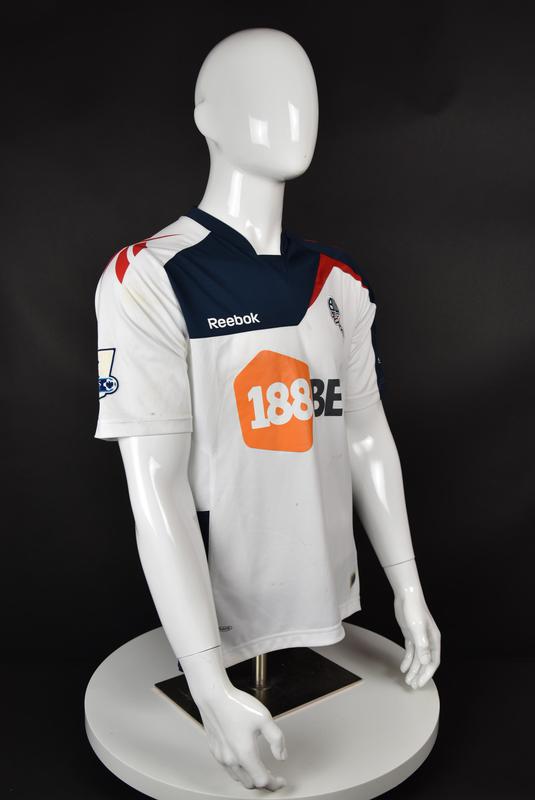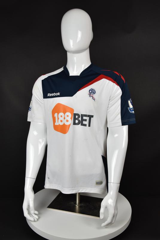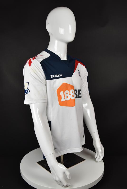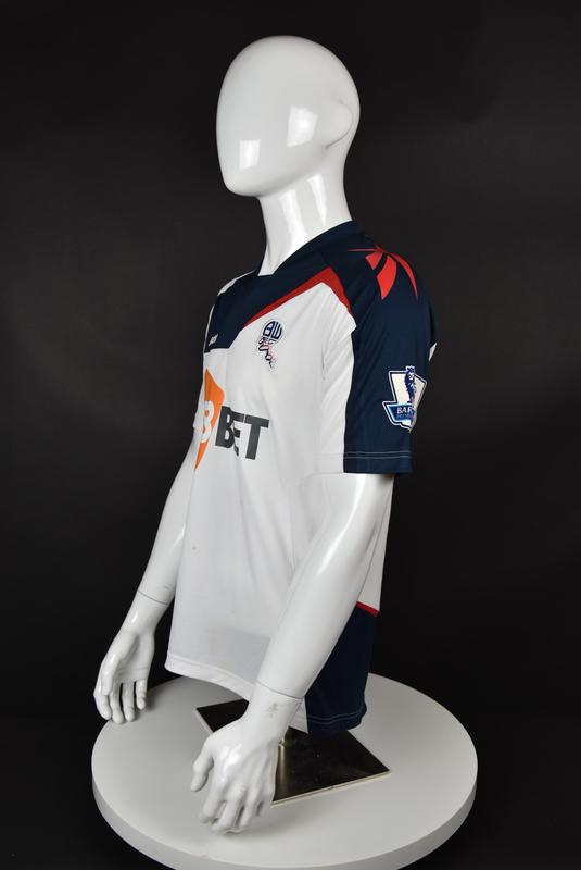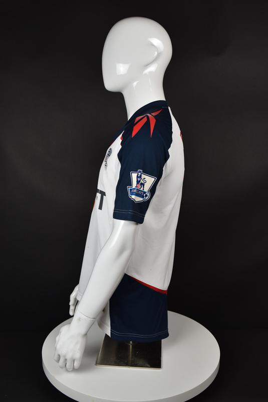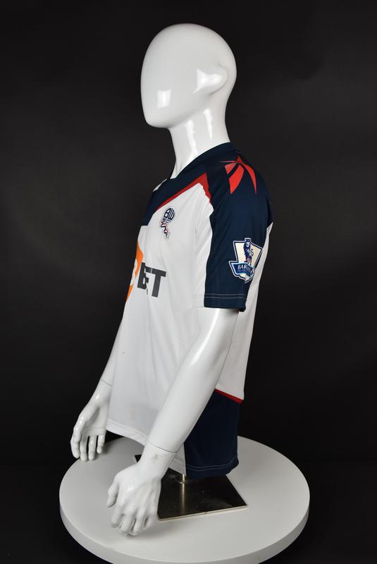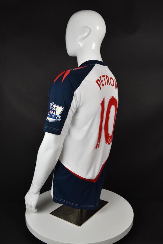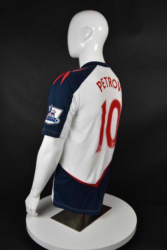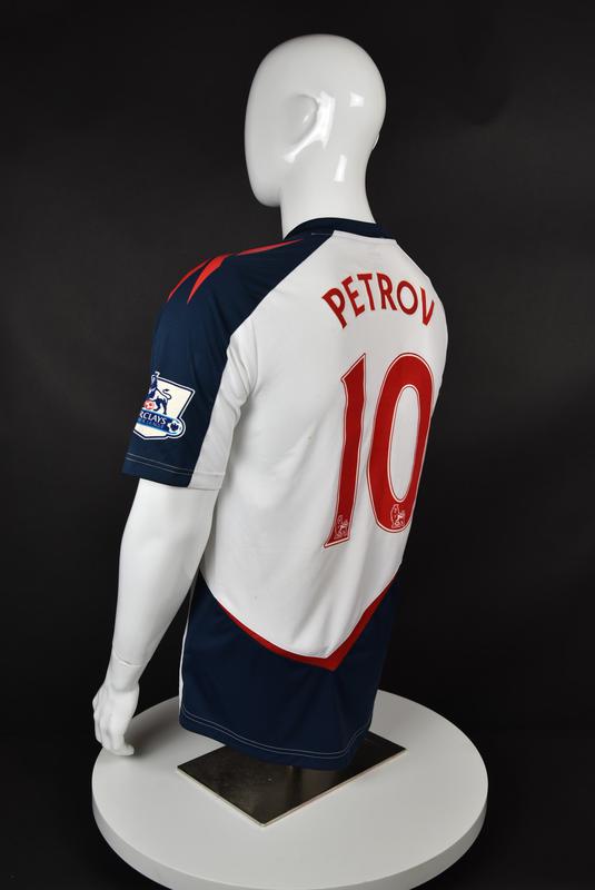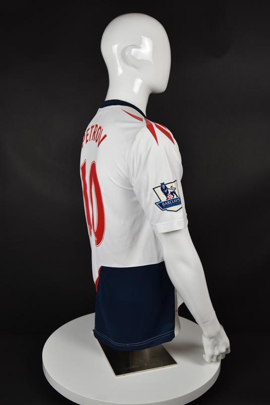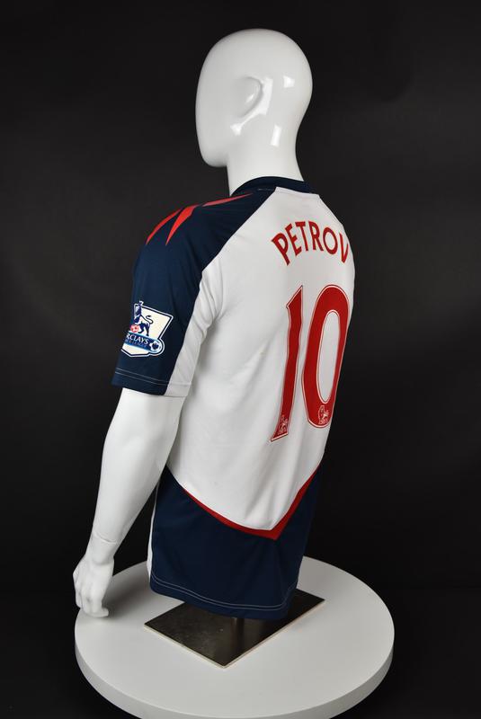 Bolton Wanderers shirt worn by Martin Petrov in the Premier League clash against Aston Villa (1:2). Game played at Villa Park on April 24, 2012. The former Bulgarian International winger went on to score the equalizer. Interesting fact is that all three goals were scored within 3 minutes time. Warnock gave Villa the lead in the 61 minute with Petrov and N'Gog netting the ball in the '62 and '63. Petrov went on to score 12 goals in 86 games for the club over 2,5 years. Shirt was gifted by the player after the match. Petrov earned 90 caps for the national team, scoring 19 goals. He was part of the squad at the 2004 European Championship in Portugal, excelling in all three games and scoring Bulgaria's only goal at the finals - a penalty against Italy in the 1:2 loss. Petrov has won the League title and the League cup of both Bulgarian and Swiss championships, with CSKA Sofia and Servette Geneva, respectively. In 2006, he was voted the Bulgarian Footballer of the Year award.