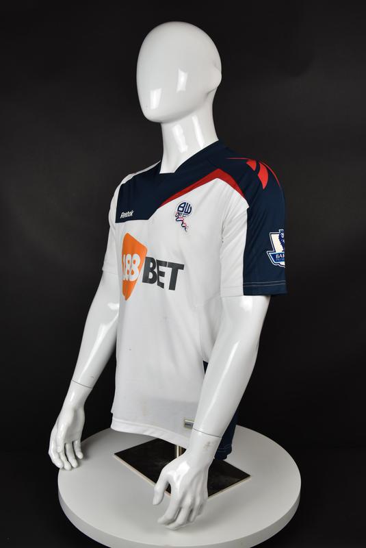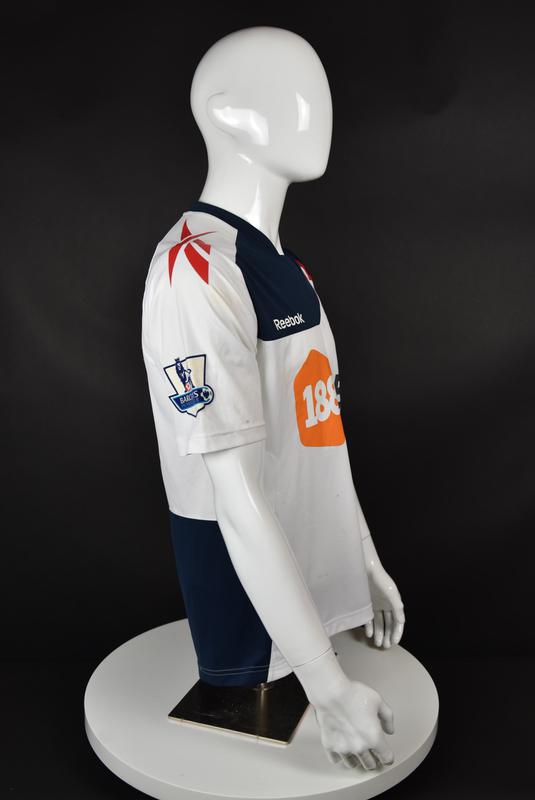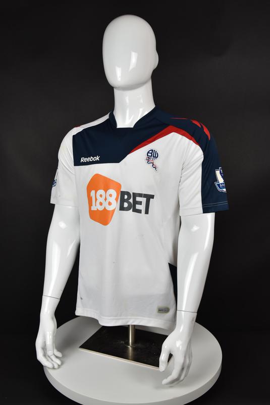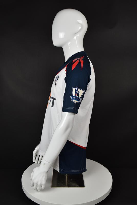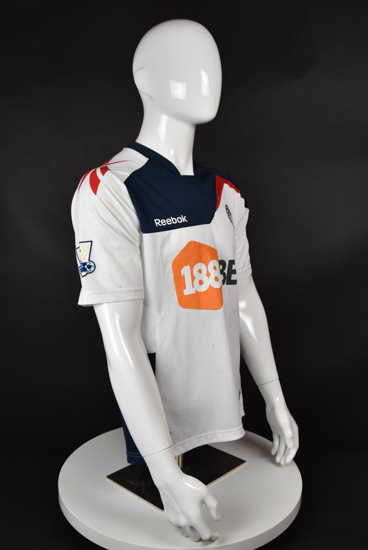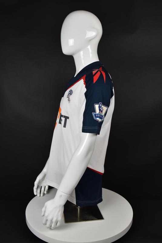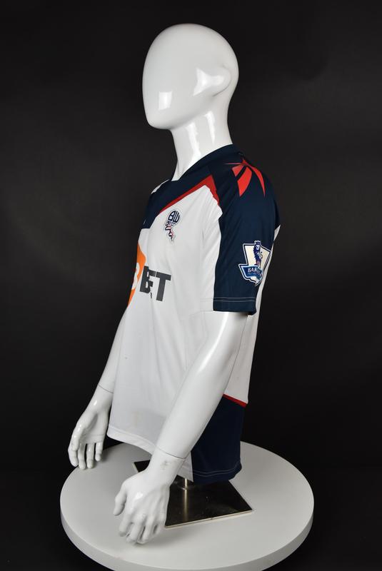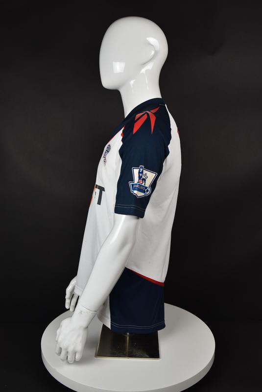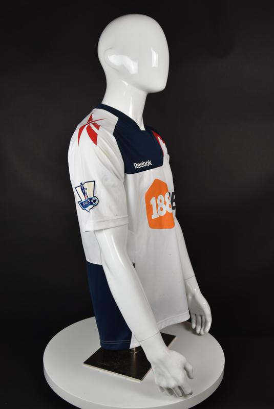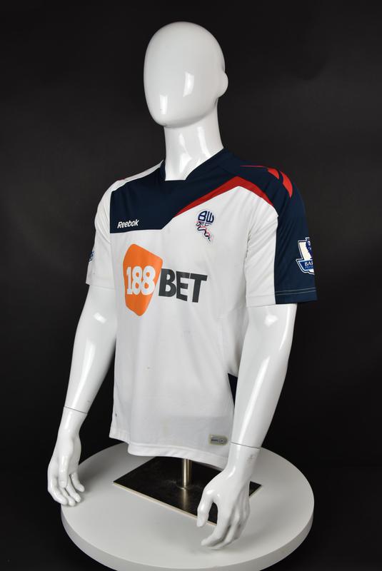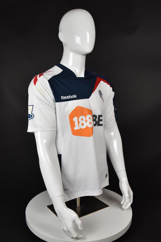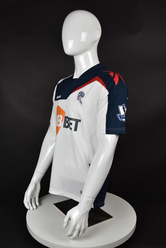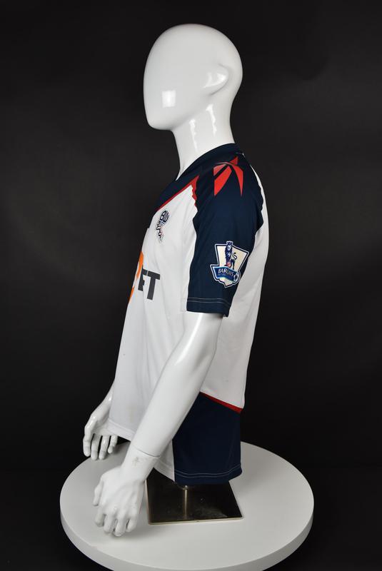 Bolton Wanderers shirt worn by Martin Petrov in the Premier League clash against Aston Villa (1:2). Game played at Villa Park on April 24, 2012. The former Bulgarian International winger went on to score the equalizer. Interesting fact is that all three goals were scored within 3 minutes time. Warnock gave Villa the lead in the 61 minute with Petrov and N'Gog netting the ball in the '62 and '63. Petrov went on to score 12 goals in 86 games for the club over 2,5 years. Shirt was gifted by the player after the match. Petrov earned 90 caps for the national team, scoring 19 goals. He was part of the squad at the 2004 European Championship in Portugal, excelling in all three games and scoring Bulgaria's only goal at the finals - a penalty against Italy in the 1:2 loss. Petrov has won the League title and the League cup of both Bulgarian and Swiss championships, with CSKA Sofia and Servette Geneva, respectively. In 2006, he was voted the Bulgarian Footballer of the Year award.