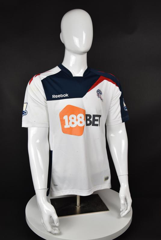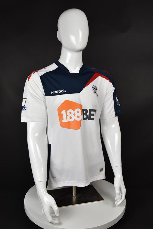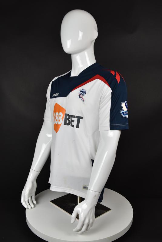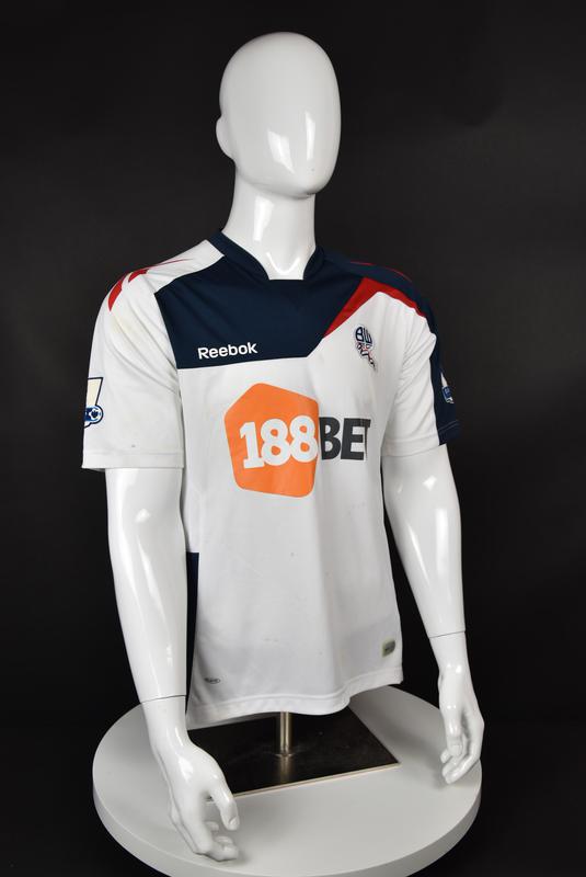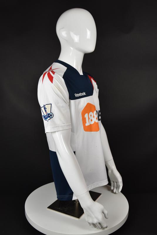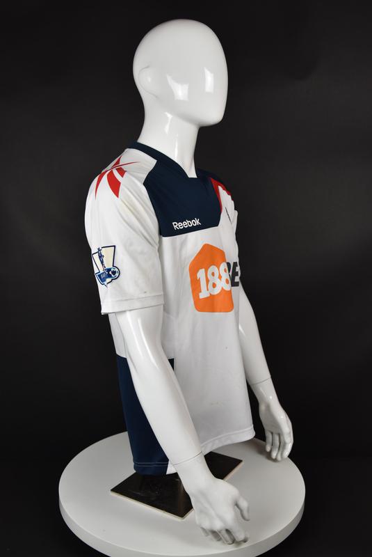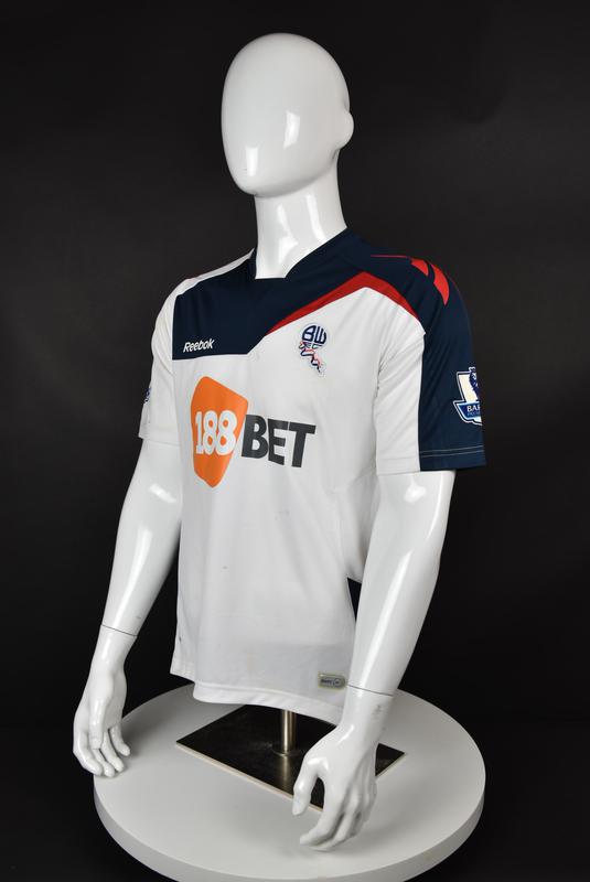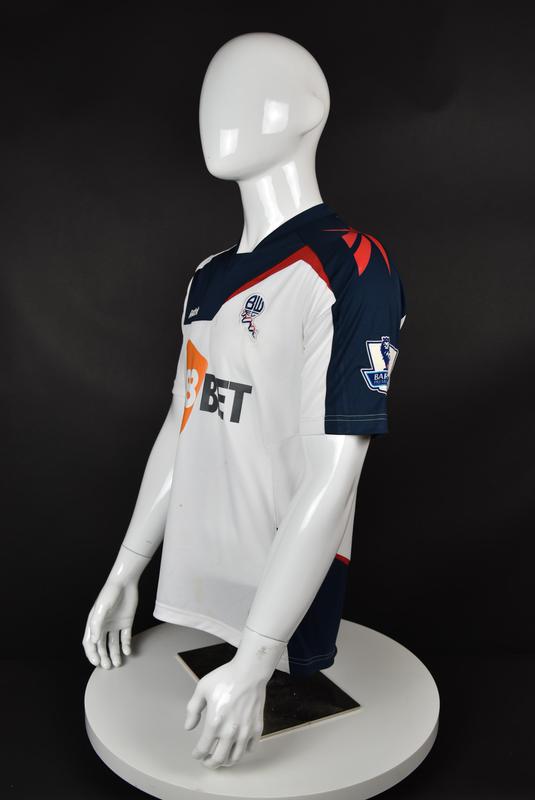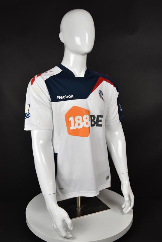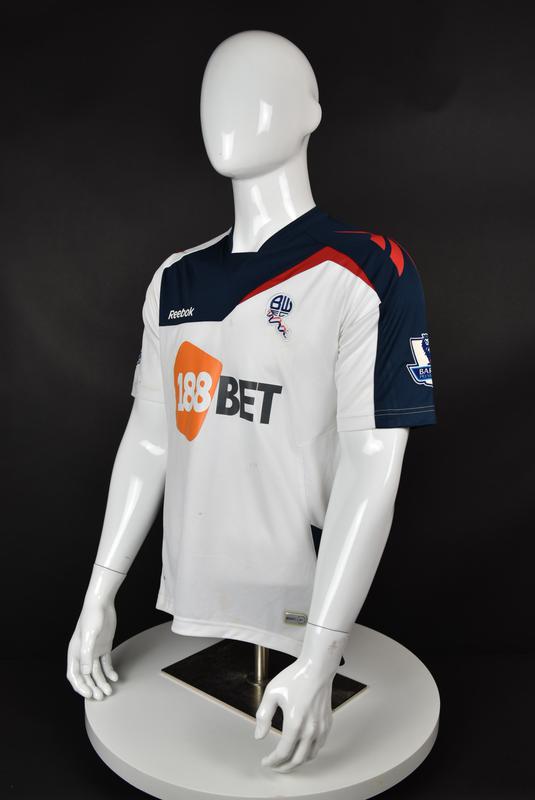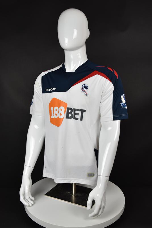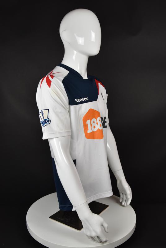 Bolton Wanderers shirt worn by Martin Petrov in the Premier League clash against Aston Villa (1:2). Game played at Villa Park on April 24, 2012. The former Bulgarian International winger went on to score the equalizer. Interesting fact is that all three goals were scored within 3 minutes time. Warnock gave Villa the lead in the 61 minute with Petrov and N'Gog netting the ball in the '62 and '63. Petrov went on to score 12 goals in 86 games for the club over 2,5 years. Shirt was gifted by the player after the match. Petrov earned 90 caps for the national team, scoring 19 goals. He was part of the squad at the 2004 European Championship in Portugal, excelling in all three games and scoring Bulgaria's only goal at the finals - a penalty against Italy in the 1:2 loss. Petrov has won the League title and the League cup of both Bulgarian and Swiss championships, with CSKA Sofia and Servette Geneva, respectively. In 2006, he was voted the Bulgarian Footballer of the Year award.