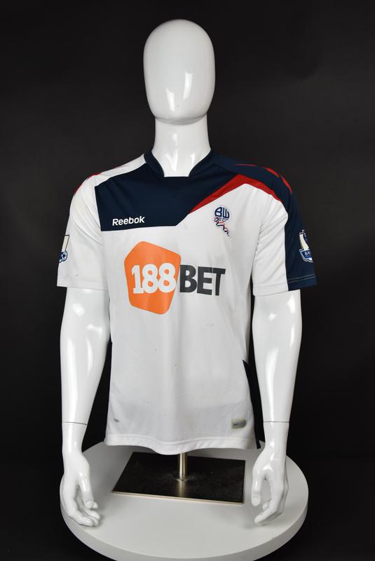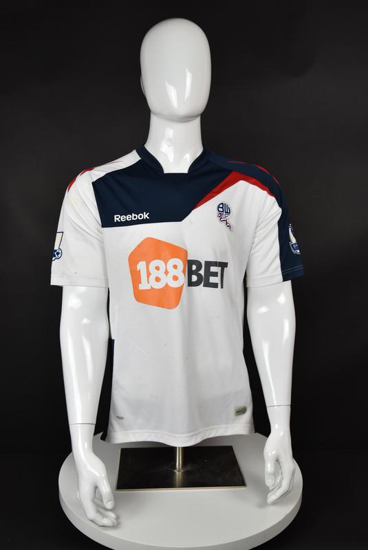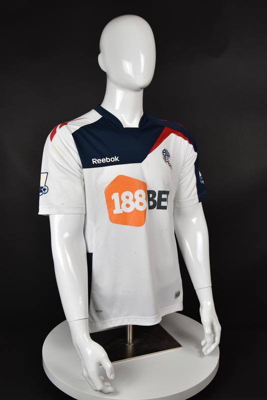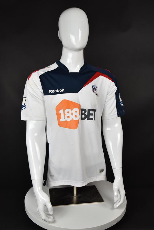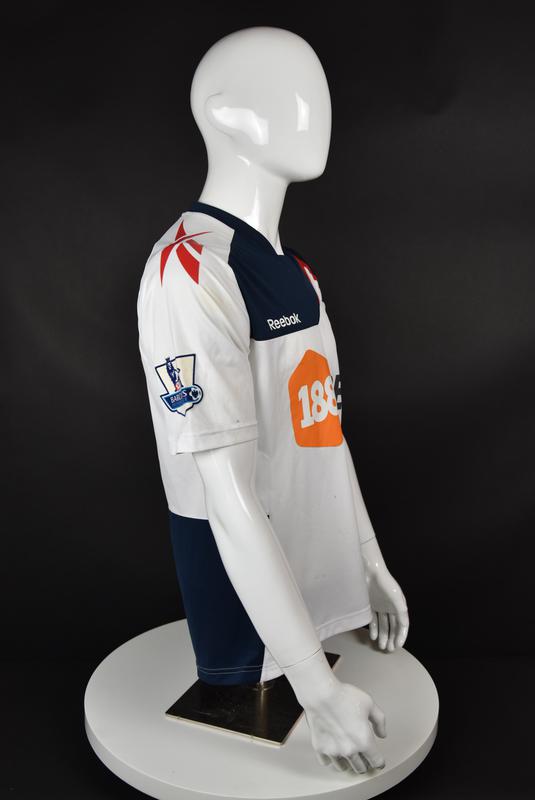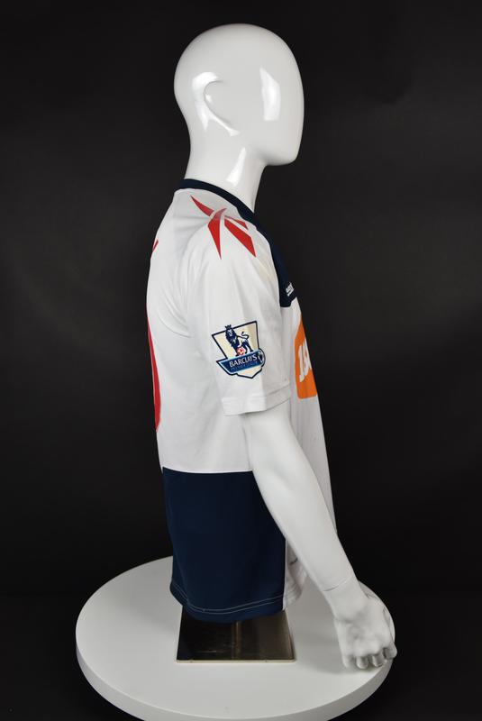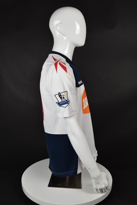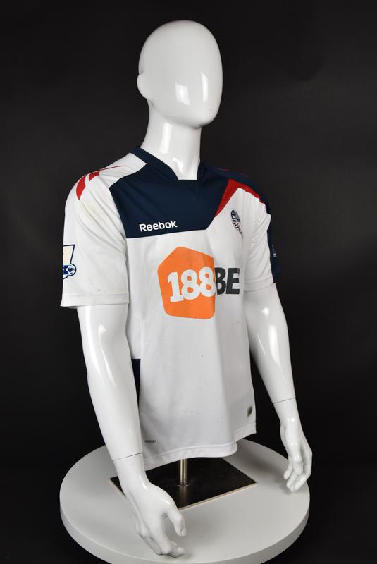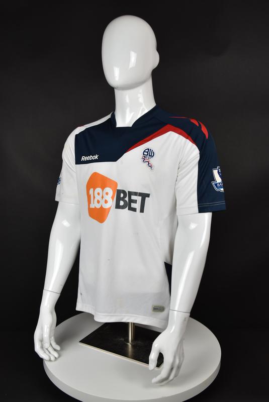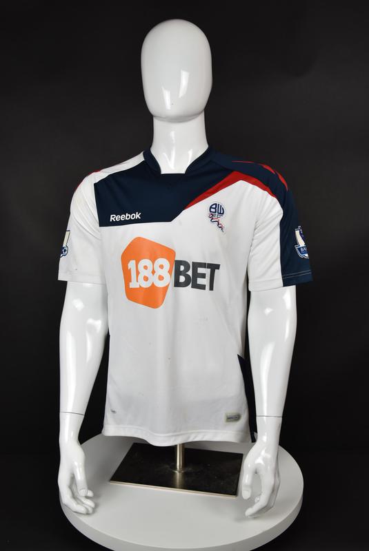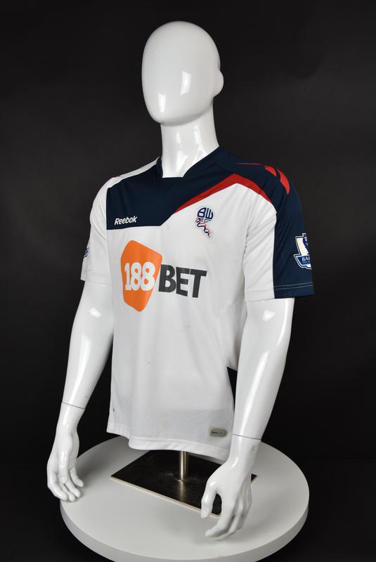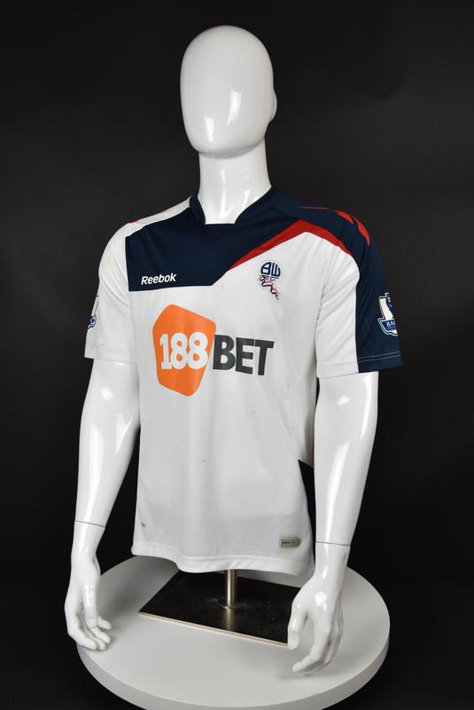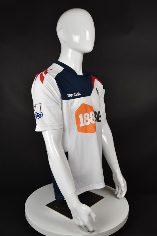 Bolton Wanderers shirt worn by Martin Petrov in the Premier League clash against Aston Villa (1:2). Game played at Villa Park on April 24, 2012. The former Bulgarian International winger went on to score the equalizer. Interesting fact is that all three goals were scored within 3 minutes time. Warnock gave Villa the lead in the 61 minute with Petrov and N'Gog netting the ball in the '62 and '63. Petrov went on to score 12 goals in 86 games for the club over 2,5 years. Shirt was gifted by the player after the match. Petrov earned 90 caps for the national team, scoring 19 goals. He was part of the squad at the 2004 European Championship in Portugal, excelling in all three games and scoring Bulgaria's only goal at the finals - a penalty against Italy in the 1:2 loss. Petrov has won the League title and the League cup of both Bulgarian and Swiss championships, with CSKA Sofia and Servette Geneva, respectively. In 2006, he was voted the Bulgarian Footballer of the Year award.