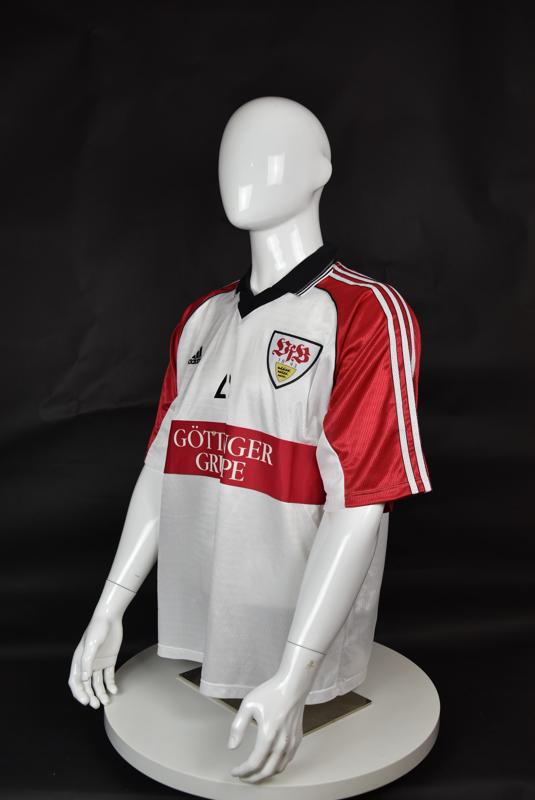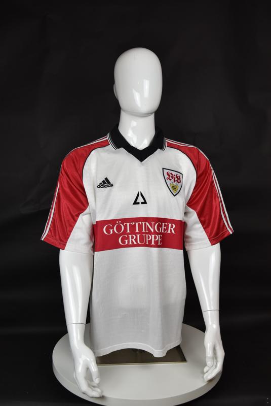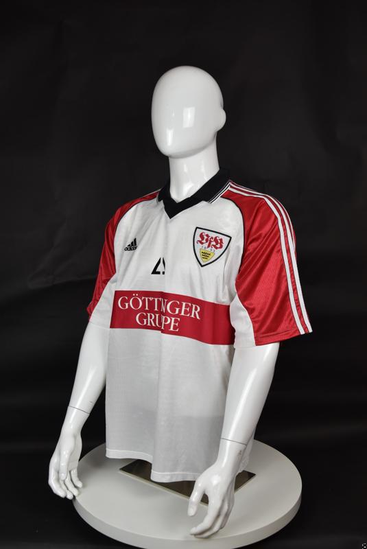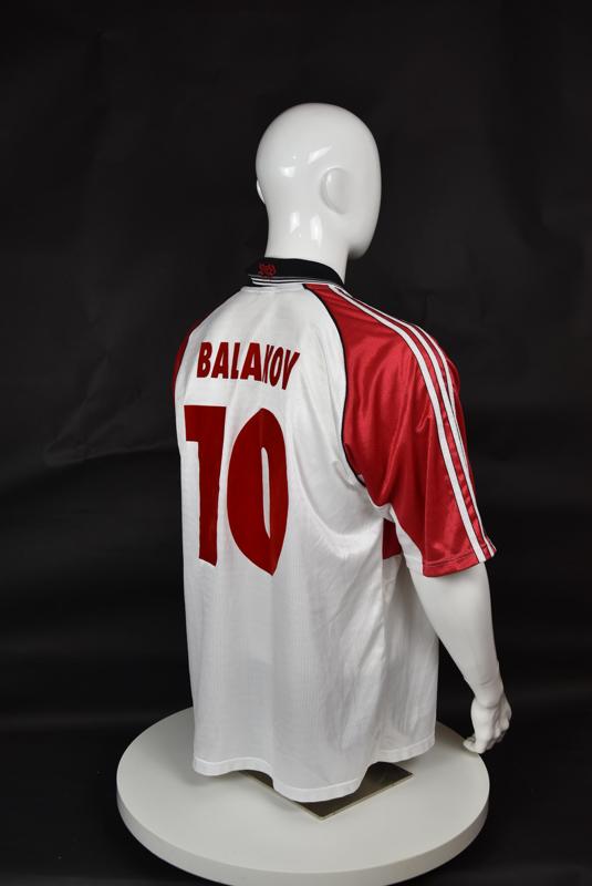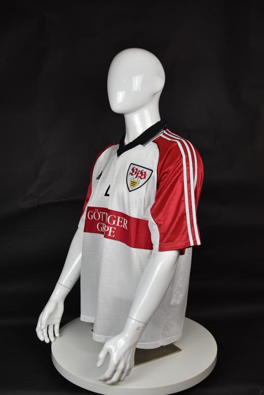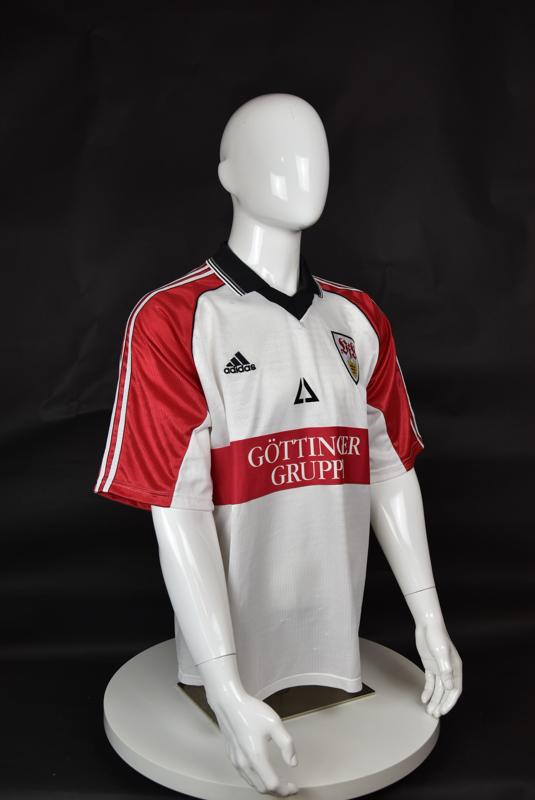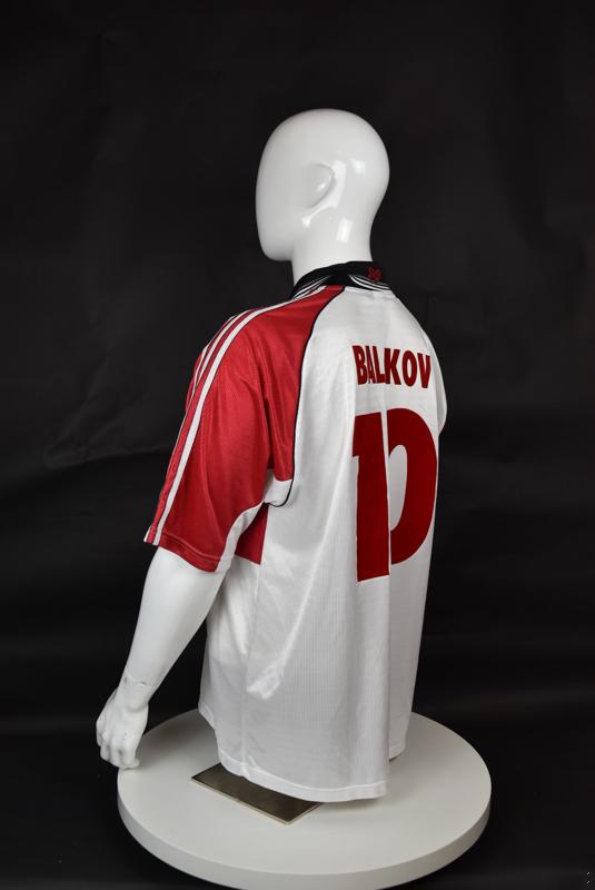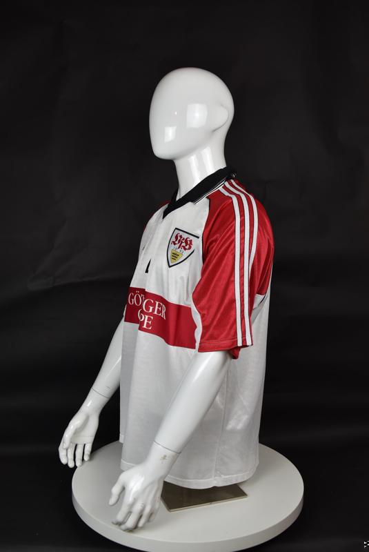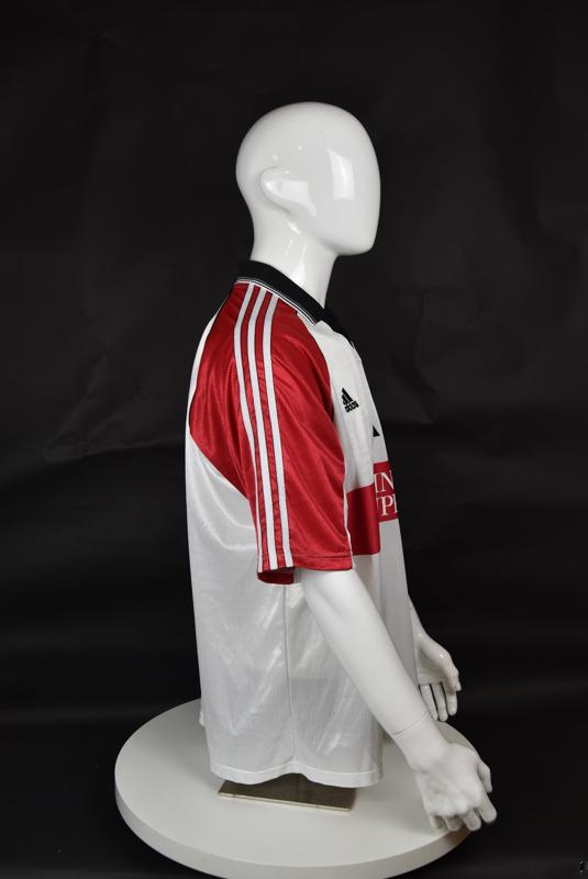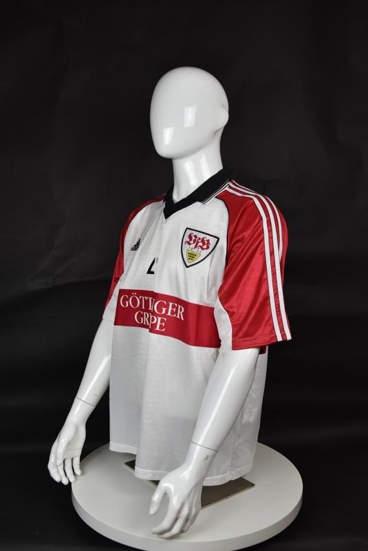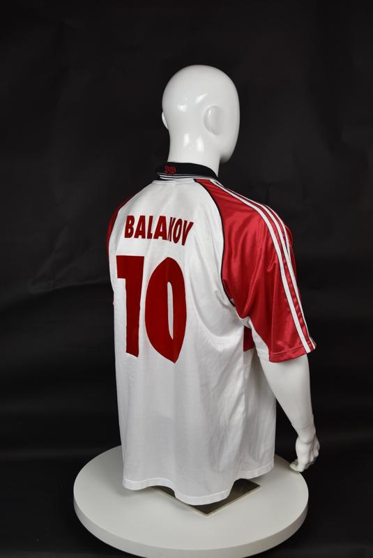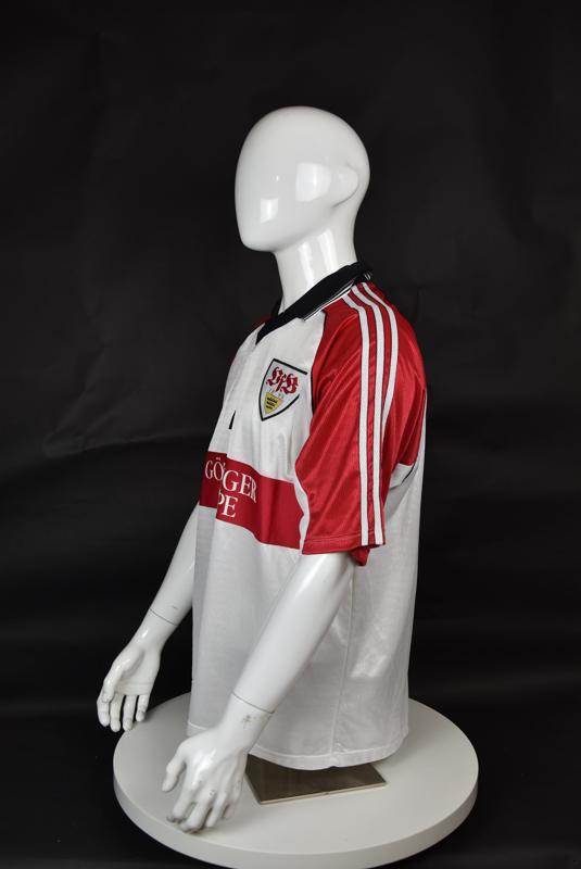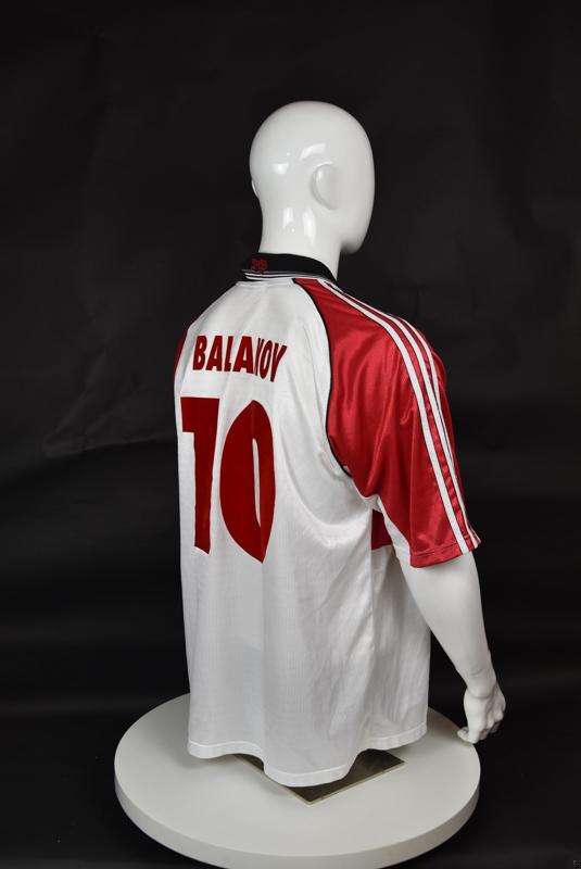 Stuttgart shirt worn by Krasimir Balakov against Feyenord during the 1998/1998 UEFA Cup First Round first leg clash (1:3). Game played at "Gottlieb-Daimler-Stadion" on September 15, 1998. Balakov played full 90 minutes and swapped shirts with Feyenord's captain Jean-Paul van Gastel after the game. The Germans completed a memorable come back in the second leg, beating the Rotterdamers 3:0 to advance to the next stage. Balakov scored the first goal in the 35th minute. However, Stuttgart were not so lucky in the Second round and were kicked out of the tournament by Clube Brugge after 4:3 on aggregate. The former Bulgarian International attacking midfielder spent 8 seasons at "Gottlieb-Daimler-Stadion" and went on to make 298 appearances for the club, scoring 73 goals. Balakov won the DFB Pokal in 1997, reached the final of Cup Winners' Cup in 1998 and said farewell to his career at Stuttgart as Bundesliga runner-up (2003). He made 92 appearances for Bulgaria between 1988 and 2003 (one of the best totals in national history) and scored 16 goals. Balakov is a bronze medalist from the 1994 FIFA World Cup and was voted to the World Cup All-Star team.