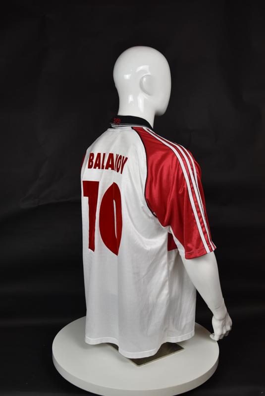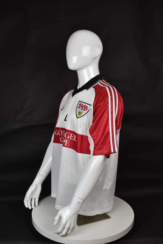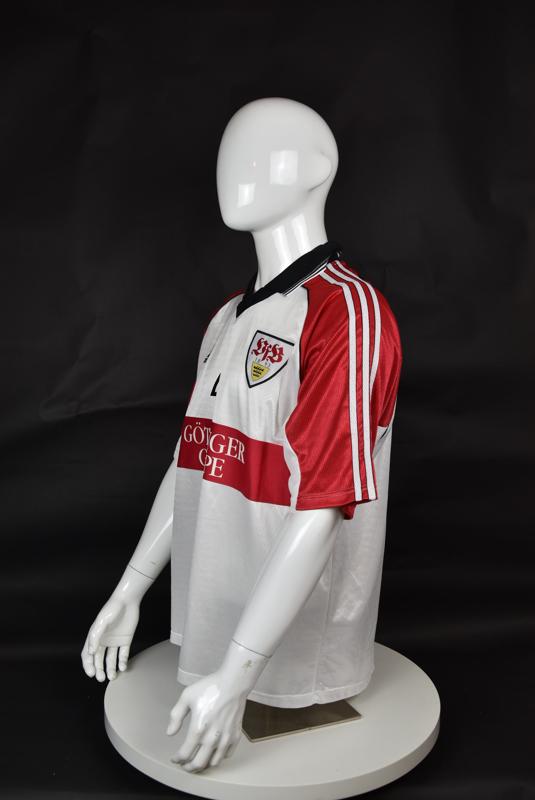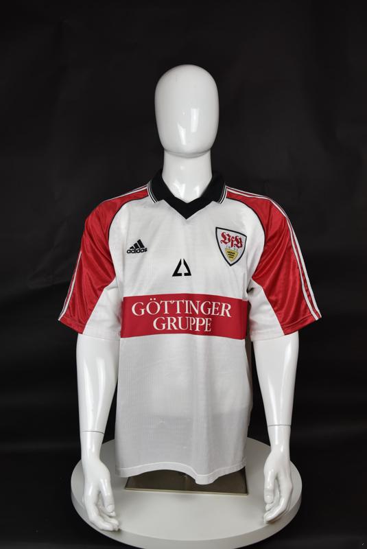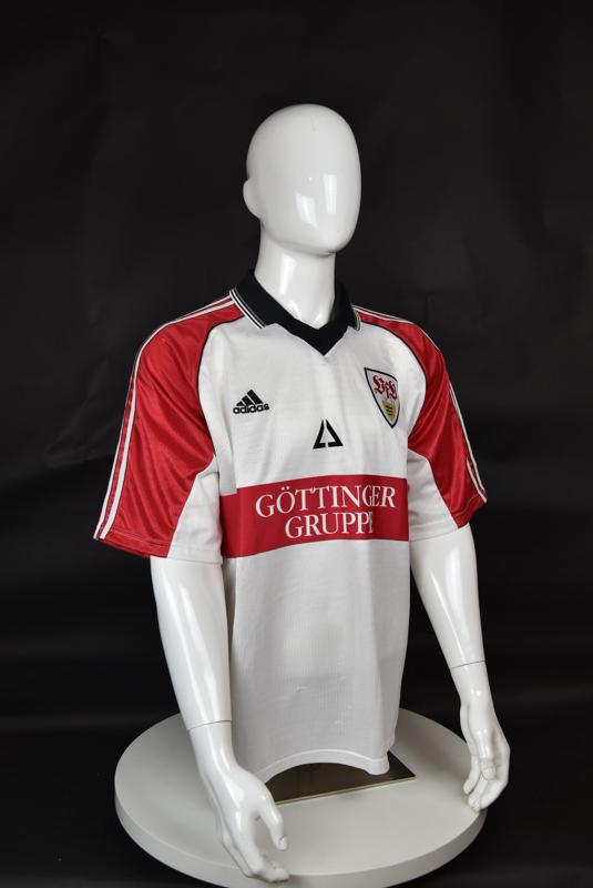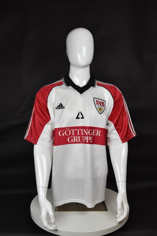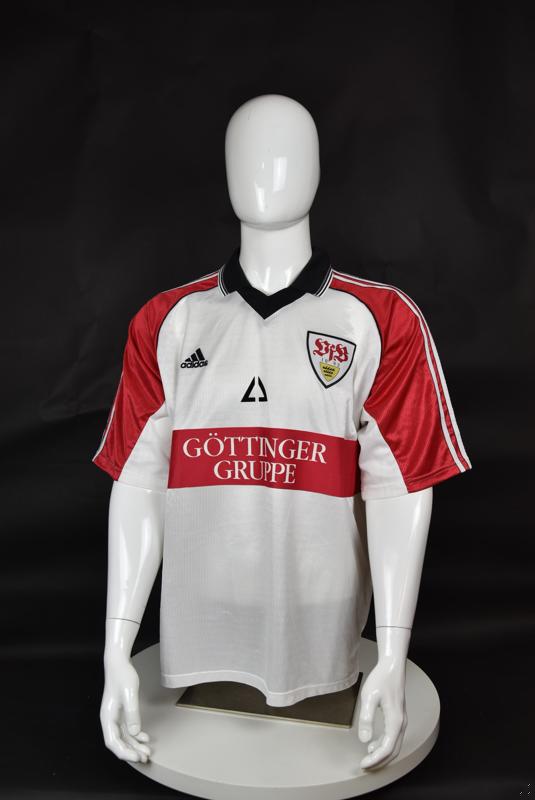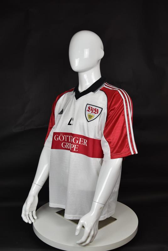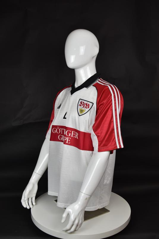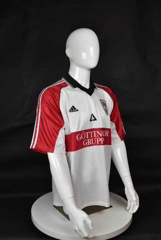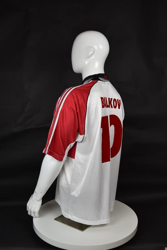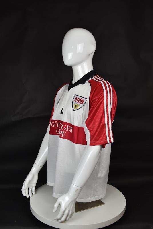 Stuttgart shirt worn by Krasimir Balakov against Feyenord during the 1998/1998 UEFA Cup First Round first leg clash (1:3). Game played at "Gottlieb-Daimler-Stadion" on September 15, 1998. Balakov played full 90 minutes and swapped shirts with Feyenord's captain Jean-Paul van Gastel after the game. The Germans completed a memorable come back in the second leg, beating the Rotterdamers 3:0 to advance to the next stage. Balakov scored the first goal in the 35th minute. However, Stuttgart were not so lucky in the Second round and were kicked out of the tournament by Clube Brugge after 4:3 on aggregate. The former Bulgarian International attacking midfielder spent 8 seasons at "Gottlieb-Daimler-Stadion" and went on to make 298 appearances for the club, scoring 73 goals. Balakov won the DFB Pokal in 1997, reached the final of Cup Winners' Cup in 1998 and said farewell to his career at Stuttgart as Bundesliga runner-up (2003). He made 92 appearances for Bulgaria between 1988 and 2003 (one of the best totals in national history) and scored 16 goals. Balakov is a bronze medalist from the 1994 FIFA World Cup and was voted to the World Cup All-Star team.