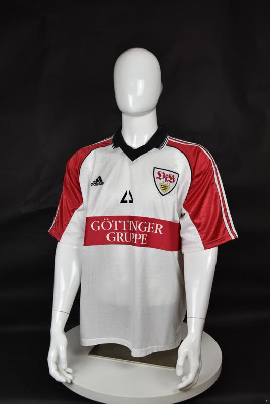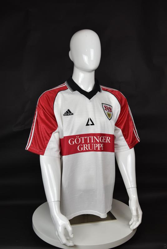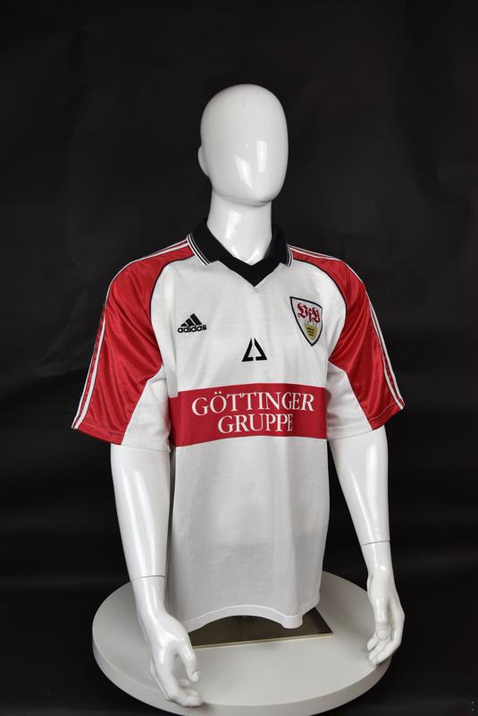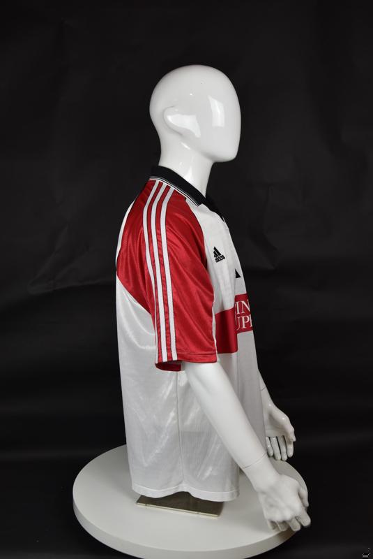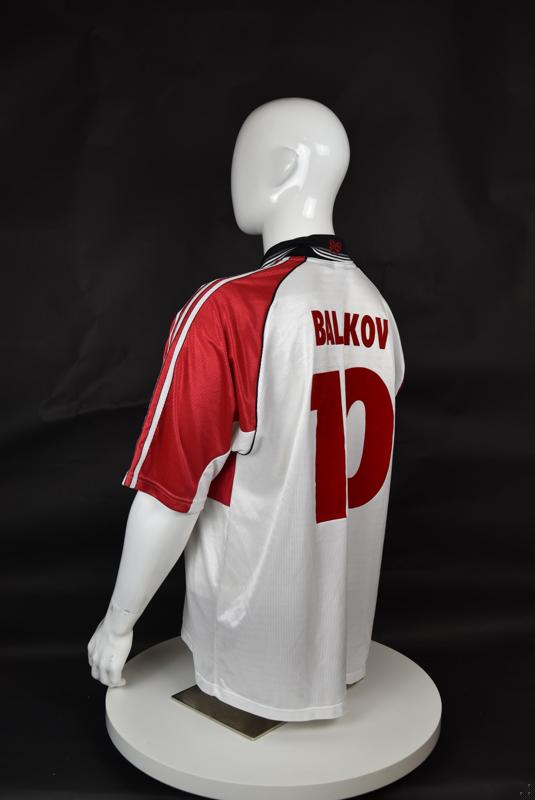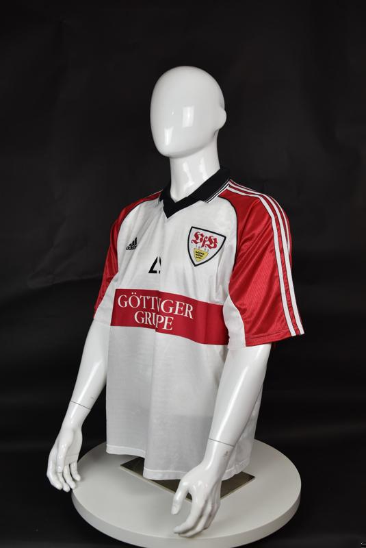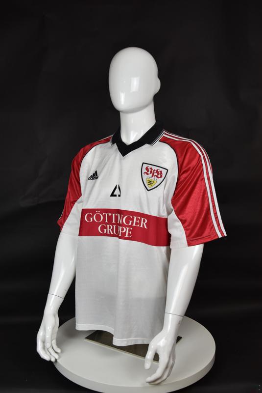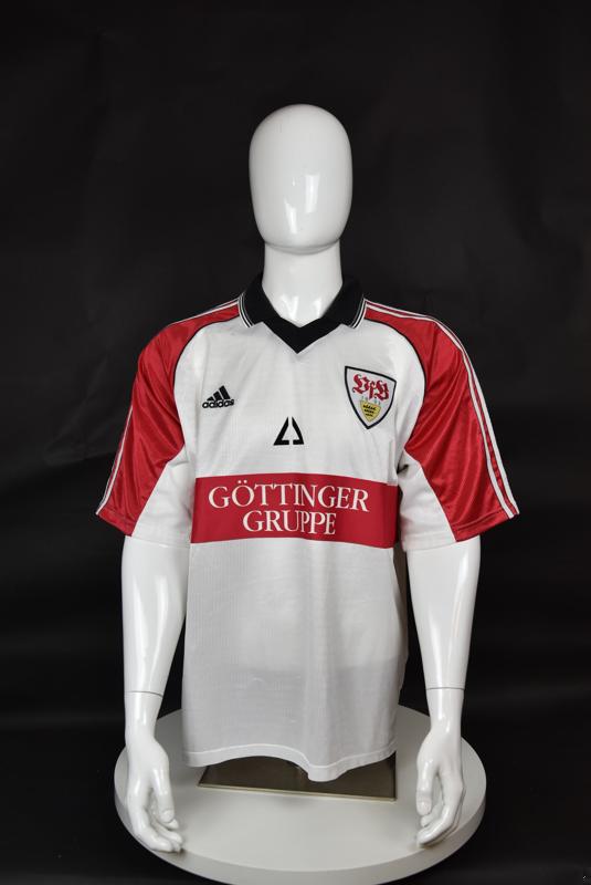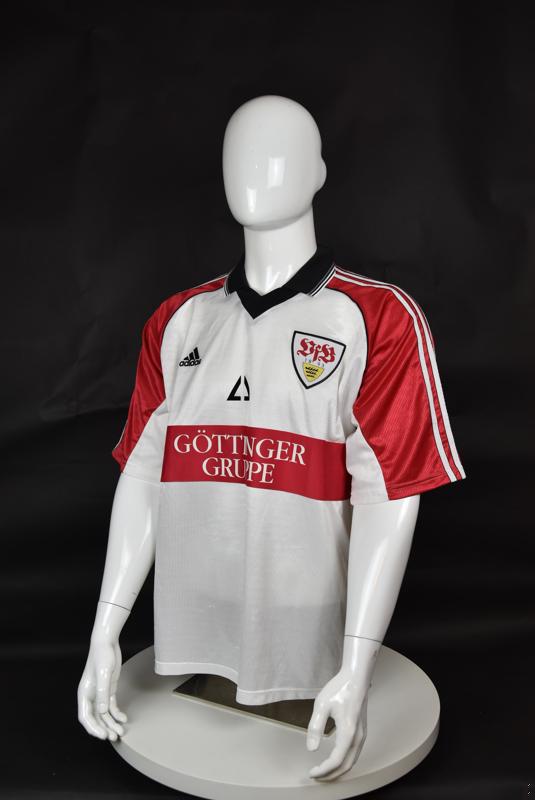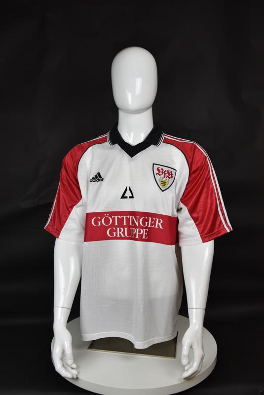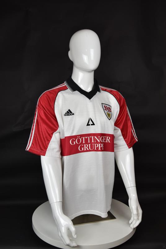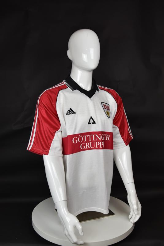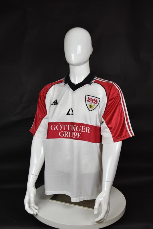 Stuttgart shirt worn by Krasimir Balakov against Feyenord during the 1998/1998 UEFA Cup First Round first leg clash (1:3). Game played at "Gottlieb-Daimler-Stadion" on September 15, 1998. Balakov played full 90 minutes and swapped shirts with Feyenord's captain Jean-Paul van Gastel after the game. The Germans completed a memorable come back in the second leg, beating the Rotterdamers 3:0 to advance to the next stage. Balakov scored the first goal in the 35th minute. However, Stuttgart were not so lucky in the Second round and were kicked out of the tournament by Clube Brugge after 4:3 on aggregate. The former Bulgarian International attacking midfielder spent 8 seasons at "Gottlieb-Daimler-Stadion" and went on to make 298 appearances for the club, scoring 73 goals. Balakov won the DFB Pokal in 1997, reached the final of Cup Winners' Cup in 1998 and said farewell to his career at Stuttgart as Bundesliga runner-up (2003). He made 92 appearances for Bulgaria between 1988 and 2003 (one of the best totals in national history) and scored 16 goals. Balakov is a bronze medalist from the 1994 FIFA World Cup and was voted to the World Cup All-Star team.