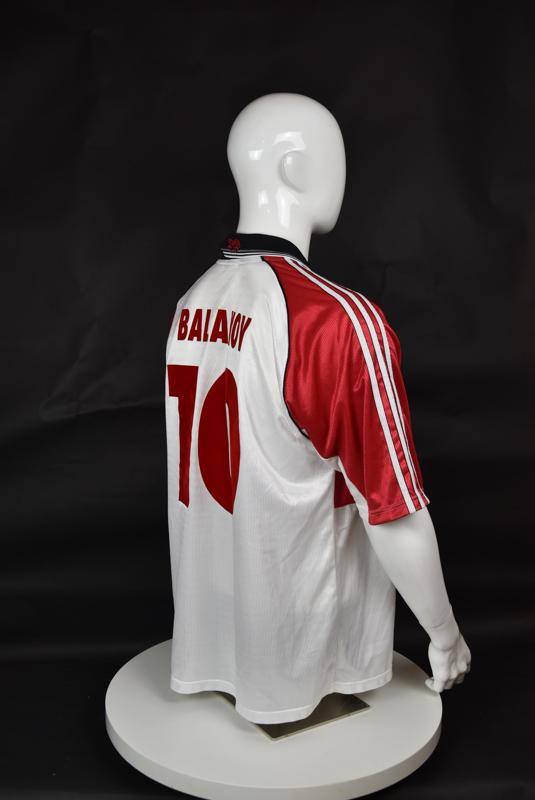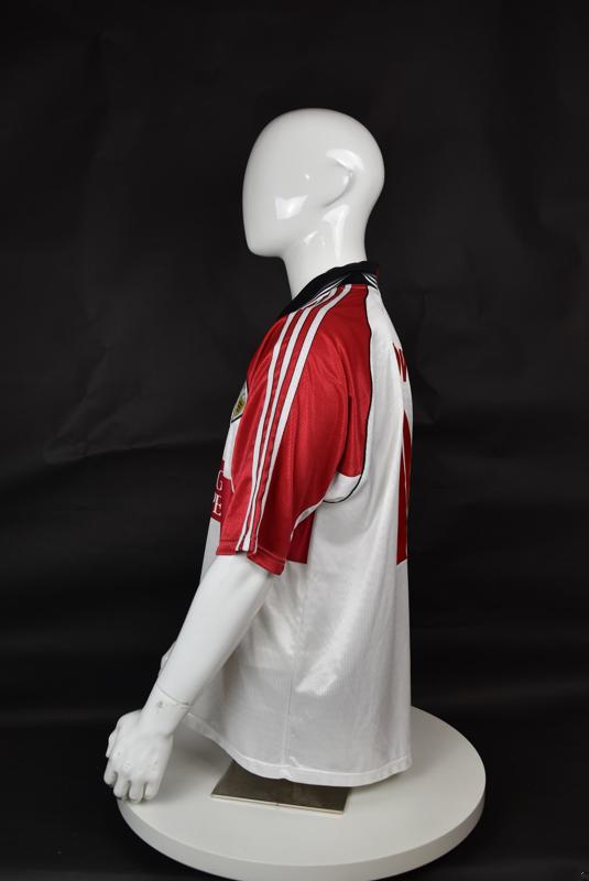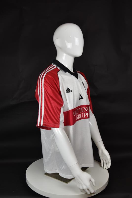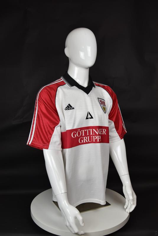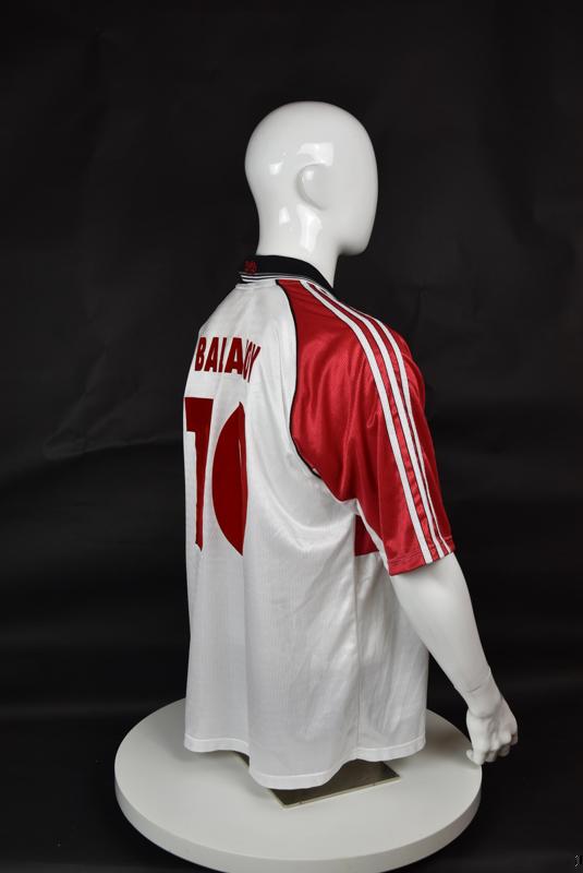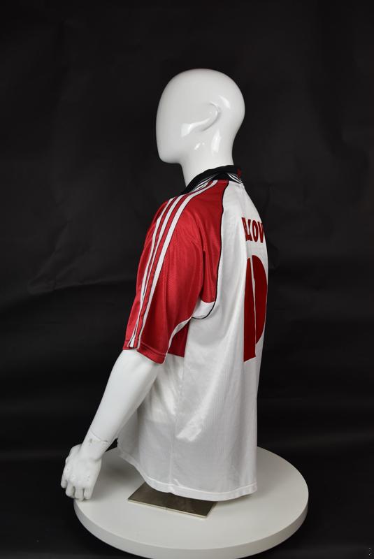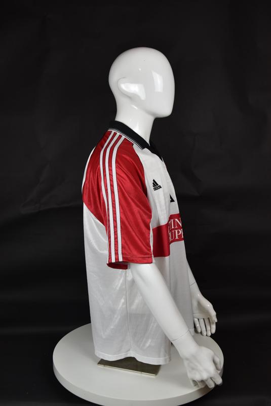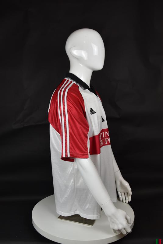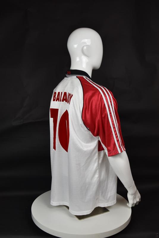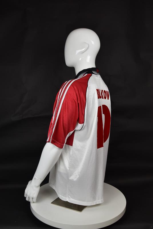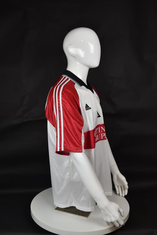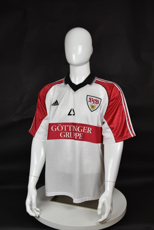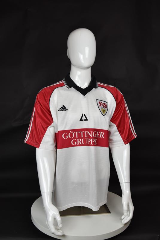 Stuttgart shirt worn by Krasimir Balakov against Feyenord during the 1998/1998 UEFA Cup First Round first leg clash (1:3). Game played at "Gottlieb-Daimler-Stadion" on September 15, 1998. Balakov played full 90 minutes and swapped shirts with Feyenord's captain Jean-Paul van Gastel after the game. The Germans completed a memorable come back in the second leg, beating the Rotterdamers 3:0 to advance to the next stage. Balakov scored the first goal in the 35th minute. However, Stuttgart were not so lucky in the Second round and were kicked out of the tournament by Clube Brugge after 4:3 on aggregate. The former Bulgarian International attacking midfielder spent 8 seasons at "Gottlieb-Daimler-Stadion" and went on to make 298 appearances for the club, scoring 73 goals. Balakov won the DFB Pokal in 1997, reached the final of Cup Winners' Cup in 1998 and said farewell to his career at Stuttgart as Bundesliga runner-up (2003). He made 92 appearances for Bulgaria between 1988 and 2003 (one of the best totals in national history) and scored 16 goals. Balakov is a bronze medalist from the 1994 FIFA World Cup and was voted to the World Cup All-Star team.