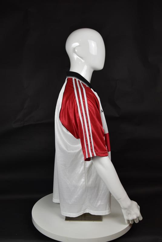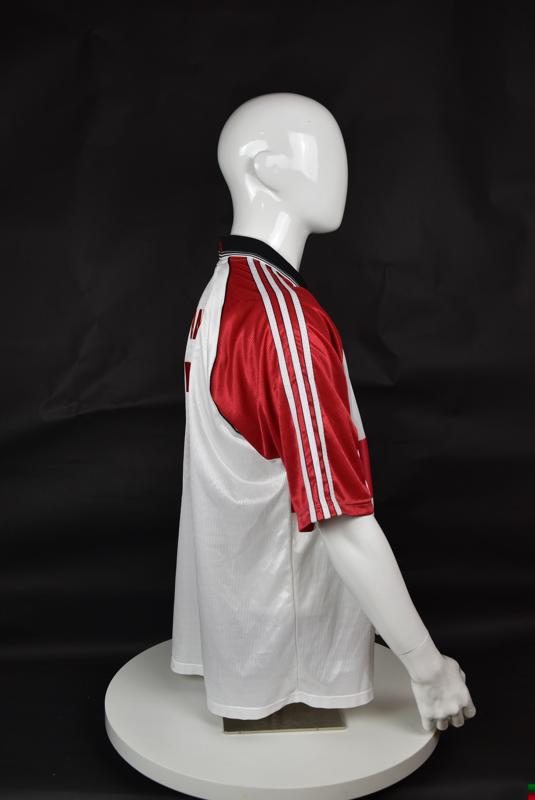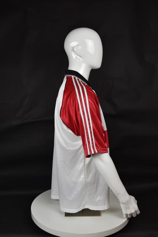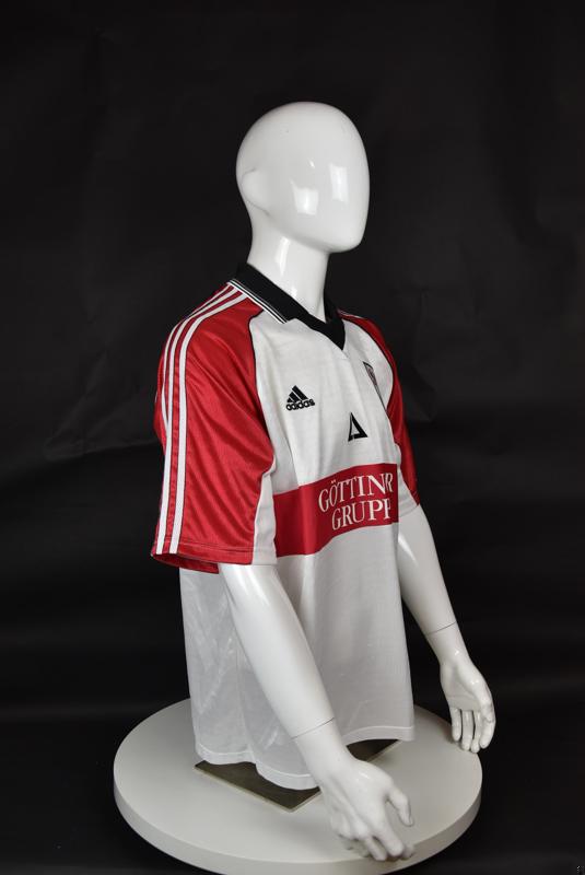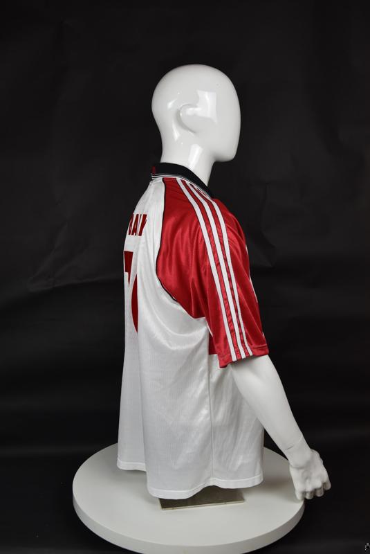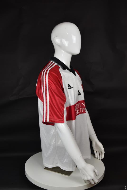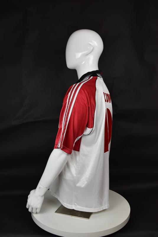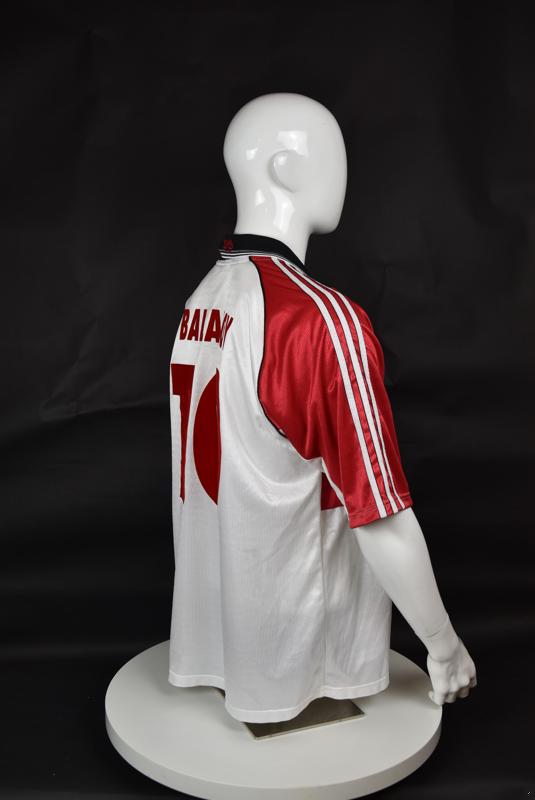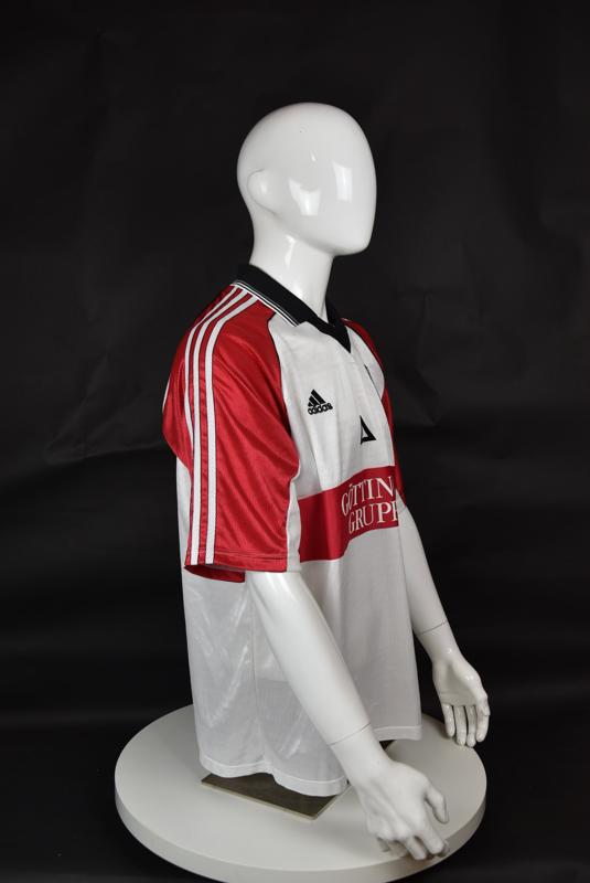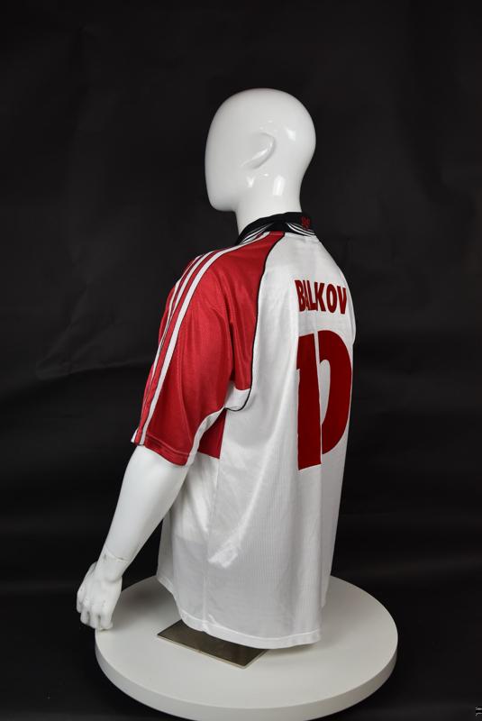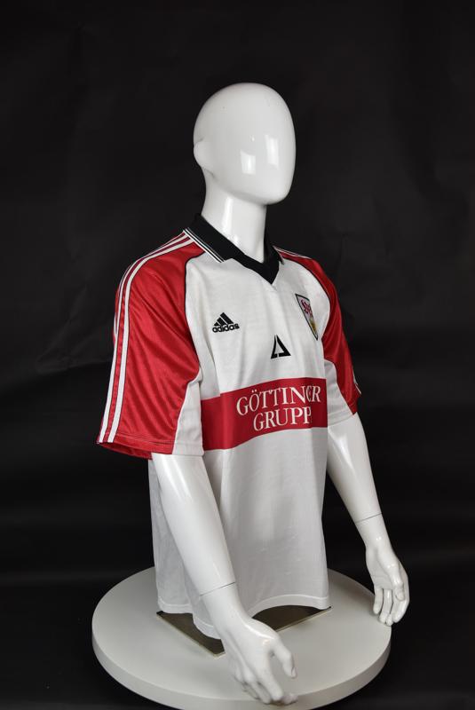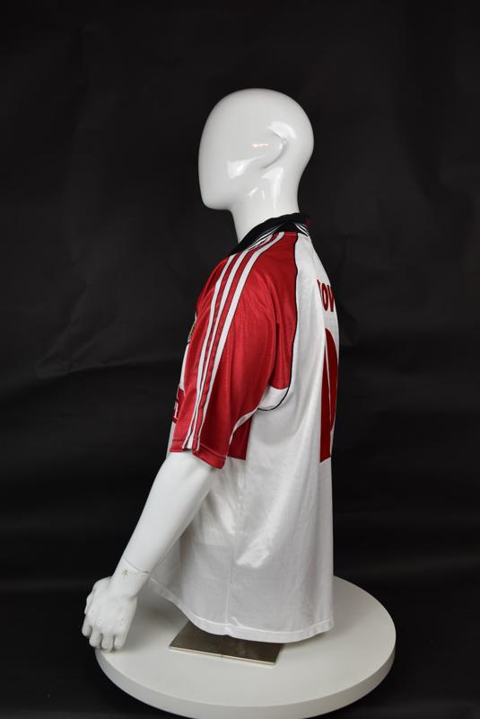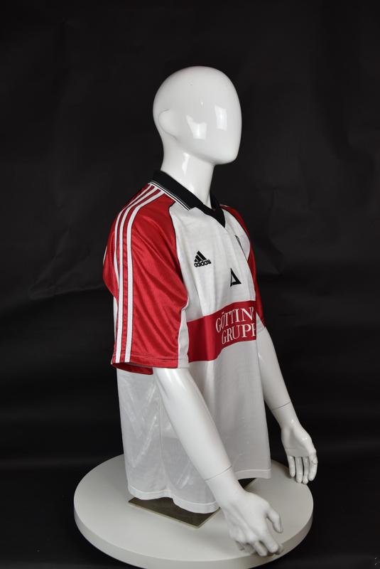 Stuttgart shirt worn by Krasimir Balakov against Feyenord during the 1998/1998 UEFA Cup First Round first leg clash (1:3). Game played at "Gottlieb-Daimler-Stadion" on September 15, 1998. Balakov played full 90 minutes and swapped shirts with Feyenord's captain Jean-Paul van Gastel after the game. The Germans completed a memorable come back in the second leg, beating the Rotterdamers 3:0 to advance to the next stage. Balakov scored the first goal in the 35th minute. However, Stuttgart were not so lucky in the Second round and were kicked out of the tournament by Clube Brugge after 4:3 on aggregate. The former Bulgarian International attacking midfielder spent 8 seasons at "Gottlieb-Daimler-Stadion" and went on to make 298 appearances for the club, scoring 73 goals. Balakov won the DFB Pokal in 1997, reached the final of Cup Winners' Cup in 1998 and said farewell to his career at Stuttgart as Bundesliga runner-up (2003). He made 92 appearances for Bulgaria between 1988 and 2003 (one of the best totals in national history) and scored 16 goals. Balakov is a bronze medalist from the 1994 FIFA World Cup and was voted to the World Cup All-Star team.