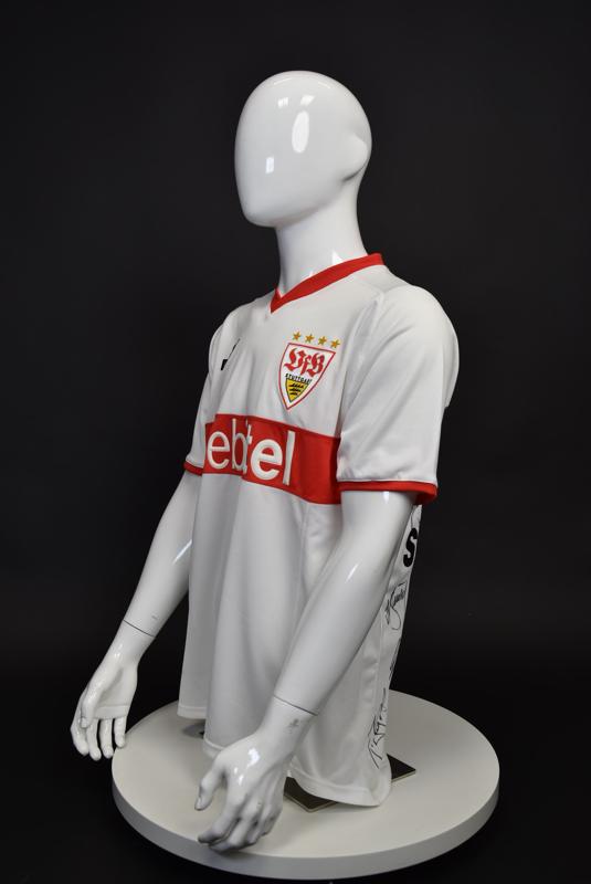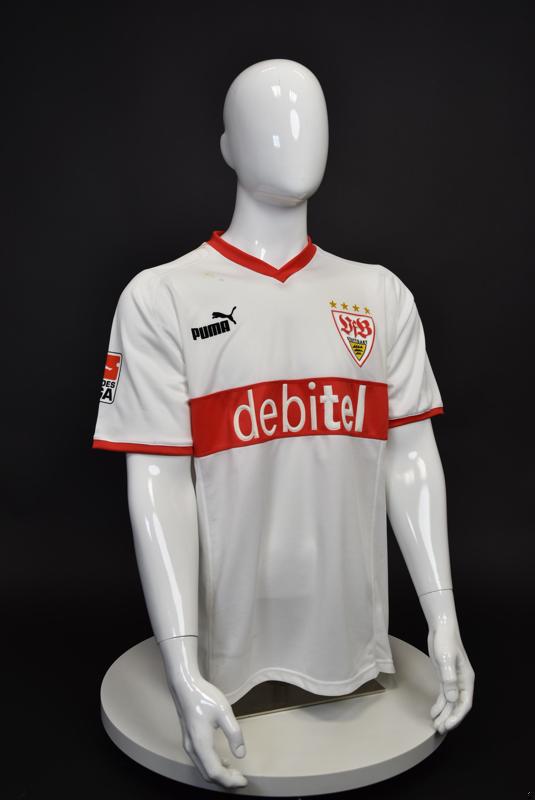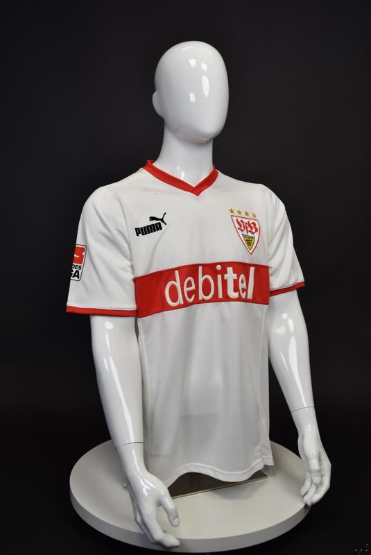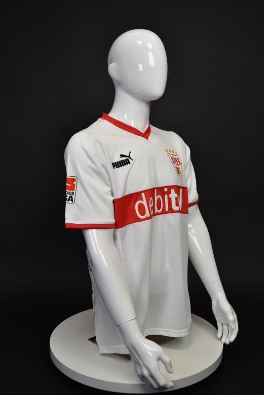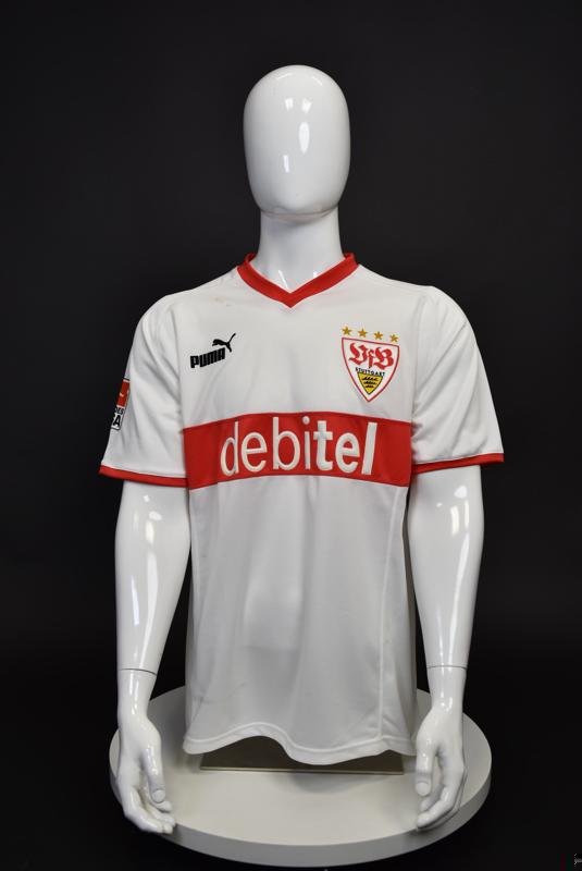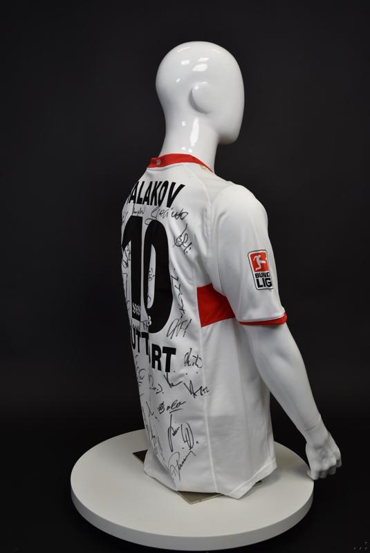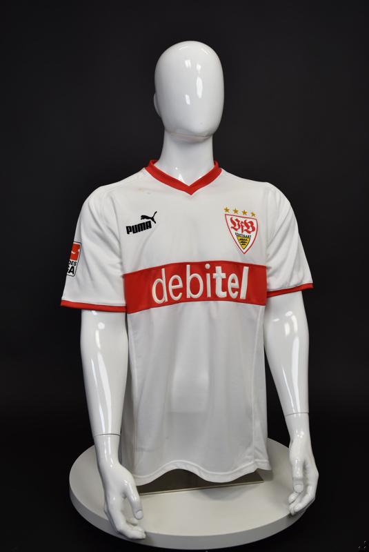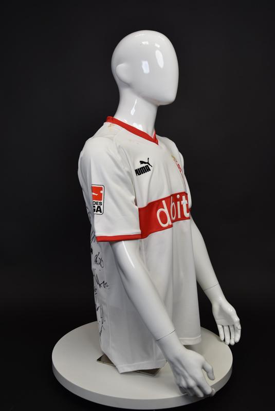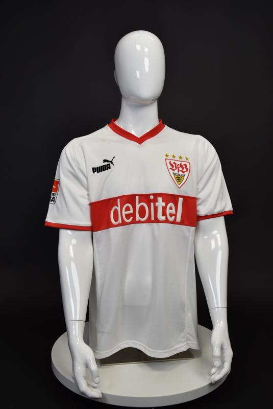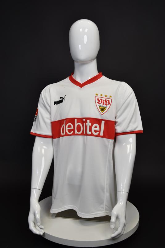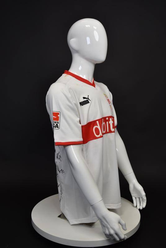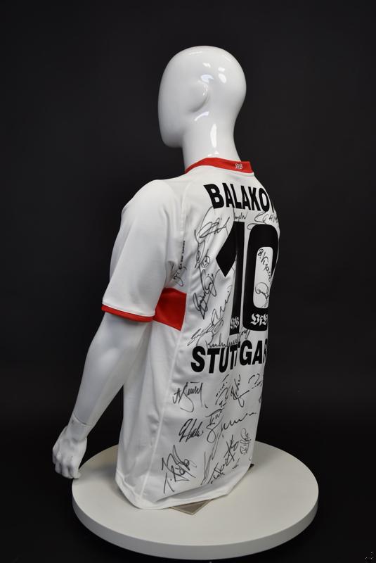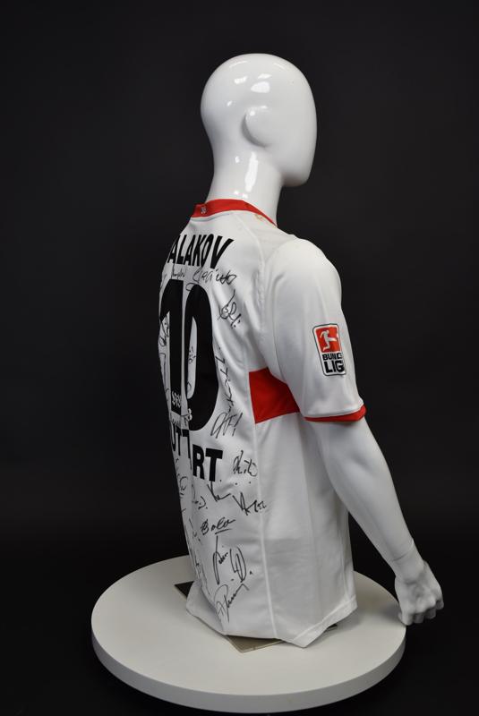Stuttgart shirt worn by Krasimir Balakov against Wolfsburg in his last match as a professional footballer in the Bundesliga. The kit was signed by the entire team and was donated by Bala for an auction organized by the renowned local magazine Sport Bild. Years later, Bulgarian Football Shirts contacted the person who acquired it to buy it back and return it to Bulgaria. The last match of the great Bulgarian midfielder took place on May 24, 2003 at the Gottlieb-Daimler Stadium. The match ended in a 2:0 victory for the VfB, with Balakov receiving the honor of scoring from a penalty in his last match for the Die Schwaben. Stuttgart finished second in the Bundesliga and claimed a spot in the UEFA Champions League group stage. This kit is of exceptional historical and collector's value for the Bulgarian football, and the symbolism on it is far from only in the traces of use that still remain. Mud and blood, which are an excellent metaphor for the incredible perseverance, work ethics and attitude that one of the greatest Bulgarian football players has put in throughout his career. The Puma jersey, with Balakov's name on the back, was made in Bulgaria. The last match against Wolfsburg took place on the most beloved and revered Bulgarian holiday - that of our alphabet and letters - the Day of the Holy Brothers Cyril and Methodius, of the Bulgarian alphabet, education and culture and of the Slavonic literature. The jersey itself is also remarkable by the four stars placed right above the crest, which go the four titles won by the Die Schwaben (Note: In 2007, VfB lifted their last Bundesliga title to date). What makes the shirt of this model unique is that the match against Wolfsburg and Krasimir Balakov's farewell game four days later are the only time in which Stuttgart puts four stars above the crest. In addition to that, having the shirt signed by the entire squad, staff and management makes it a unqiue piece of memorabilia not only for Bulgaria but of course also for VfB Stuttgart. The former Bulgarian International attacking midfielder spent 8 seasons at "Gottlieb-Daimler-Stadion" and went on to make 298 appearances for the club, scoring 73 goals. Balakov won the DFB Pokal in 1997, reached the final of Cup Winners' Cup in 1998 and said farewell to his career at Stuttgart as Bundesliga runner-up (2003). He made 92 appearances for Bulgaria between 1988 and 2003 (one of the best totals in national history) and scored 16 goals. Balakov is a bronze medalist from the 1994 FIFA World Cup and was voted to the World Cup All-Star team.