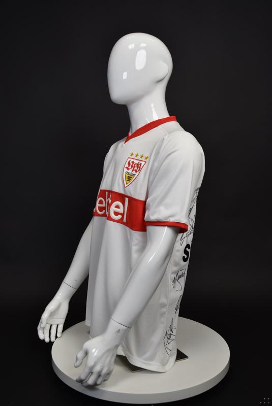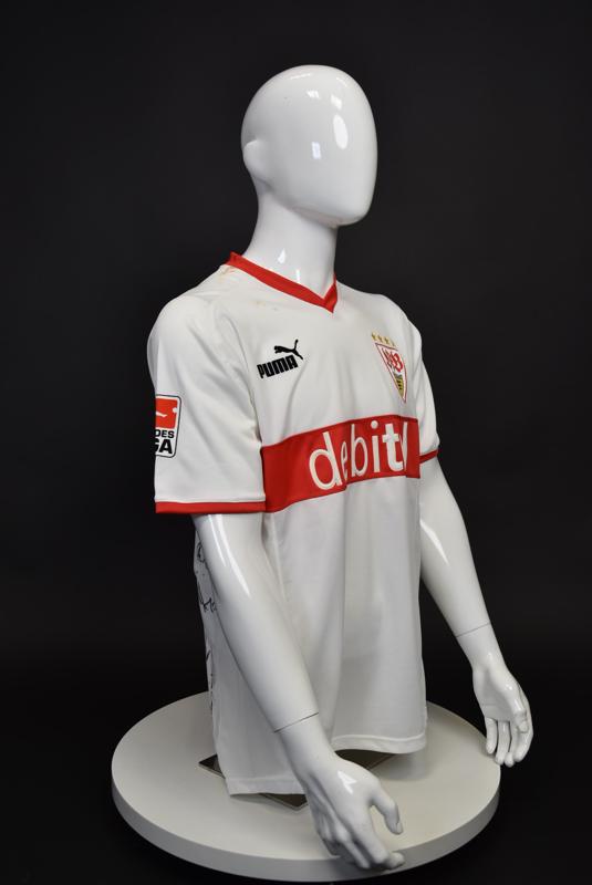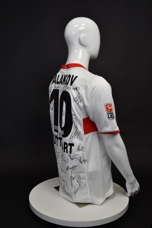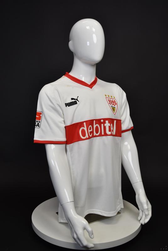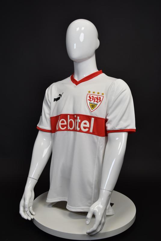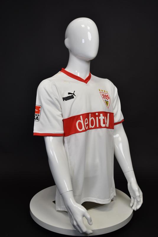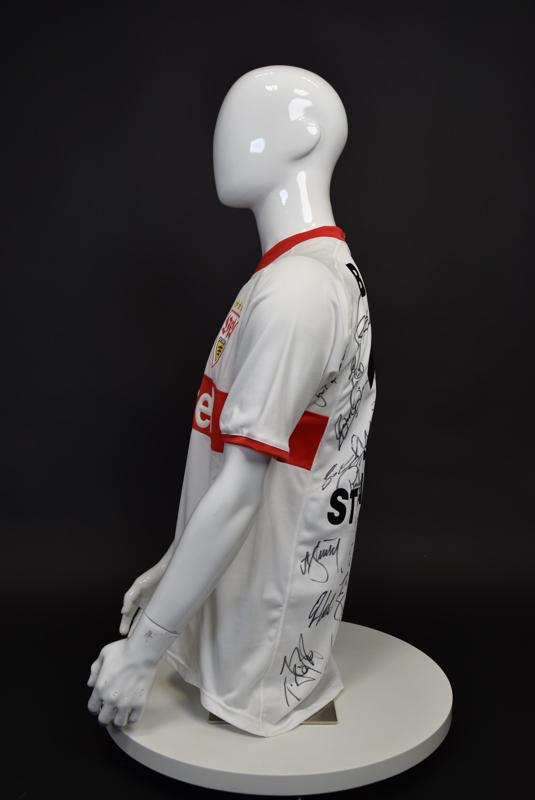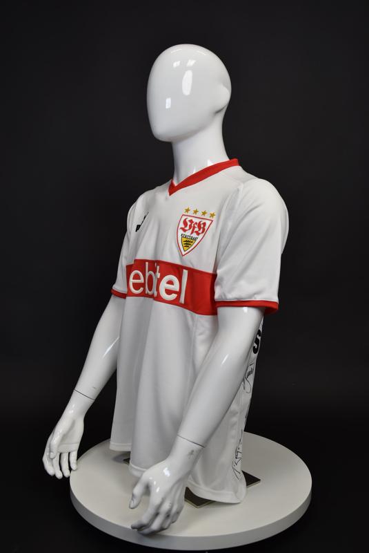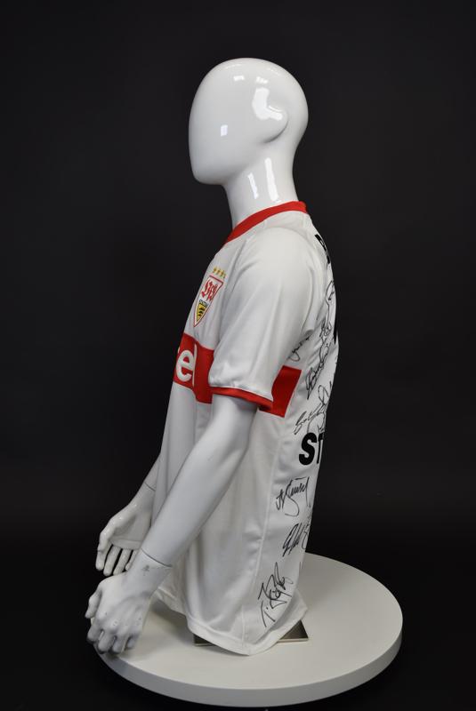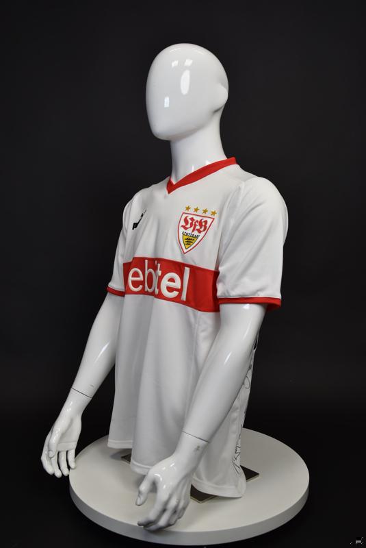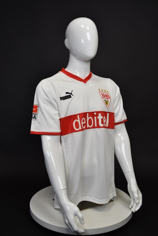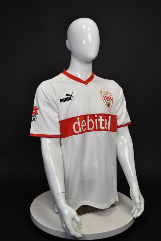 Stuttgart shirt worn by Krasimir Balakov against Wolfsburg in his last match as a professional footballer in the Bundesliga. The kit was signed by the entire team and was donated by Bala for an auction organized by the renowned local magazine Sport Bild. Years later, Bulgarian Football Shirts contacted the person who acquired it to buy it back and return it to Bulgaria. The last match of the great Bulgarian midfielder took place on May 24, 2003 at the Gottlieb-Daimler Stadium. The match ended in a 2:0 victory for the VfB, with Balakov receiving the honor of scoring from a penalty in his last match for the Die Schwaben. Stuttgart finished second in the Bundesliga and claimed a spot in the UEFA Champions League group stage. This kit is of exceptional historical and collector's value for the Bulgarian football, and the symbolism on it is far from only in the traces of use that still remain. Mud and blood, which are an excellent metaphor for the incredible perseverance, work ethics and attitude that one of the greatest Bulgarian football players has put in throughout his career. The Puma jersey, with Balakov's name on the back, was made in Bulgaria. The last match against Wolfsburg took place on the most beloved and revered Bulgarian holiday - that of our alphabet and letters - the Day of the Holy Brothers Cyril and Methodius, of the Bulgarian alphabet, education and culture and of the Slavonic literature. The jersey itself is also remarkable by the four stars placed right above the crest, which go the four titles won by the Die Schwaben (Note: In 2007, VfB lifted their last Bundesliga title to date). What makes the shirt of this model unique is that the match against Wolfsburg and Krasimir Balakov's farewell game four days later are the only time in which Stuttgart puts four stars above the crest. In addition to that, having the shirt signed by the entire squad, staff and management makes it a unqiue piece of memorabilia not only for Bulgaria but of course also for VfB Stuttgart. The former Bulgarian International attacking midfielder spent 8 seasons at "Gottlieb-Daimler-Stadion" and went on to make 298 appearances for the club, scoring 73 goals. Balakov won the DFB Pokal in 1997, reached the final of Cup Winners' Cup in 1998 and said farewell to his career at Stuttgart as Bundesliga runner-up (2003). He made 92 appearances for Bulgaria between 1988 and 2003 (one of the best totals in national history) and scored 16 goals. Balakov is a bronze medalist from the 1994 FIFA World Cup and was voted to the World Cup All-Star team.