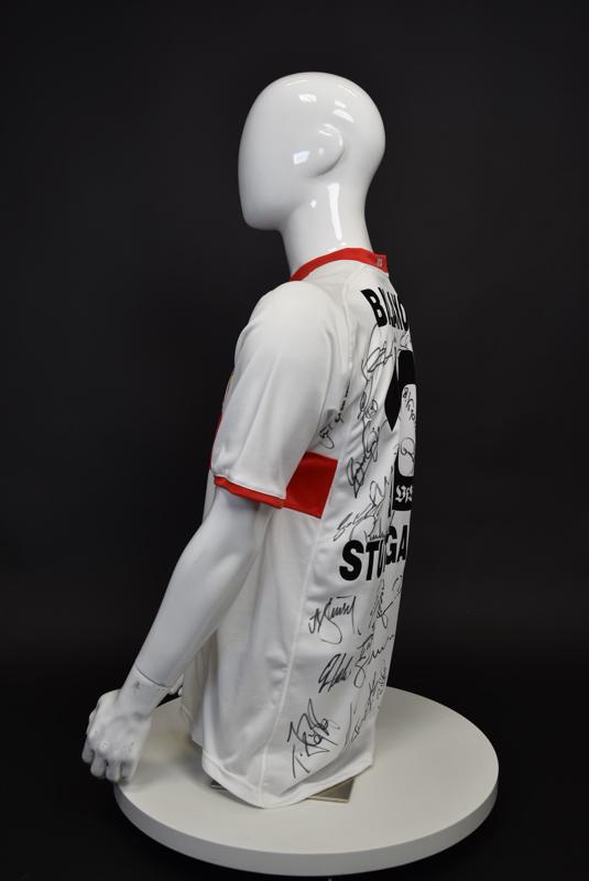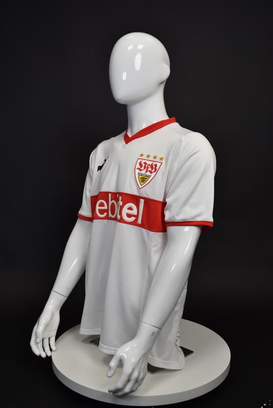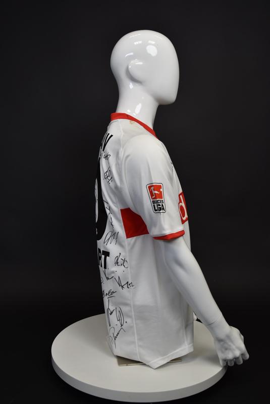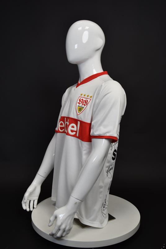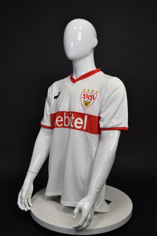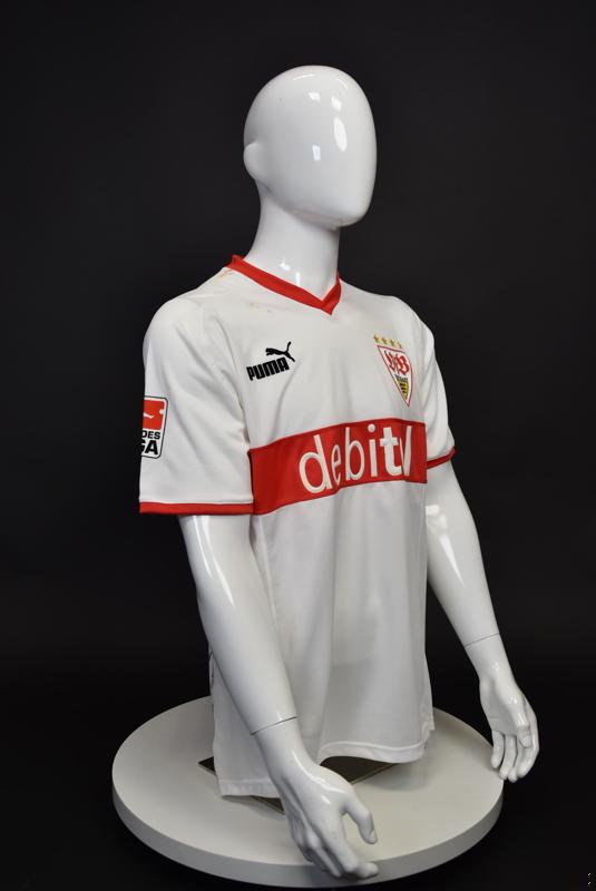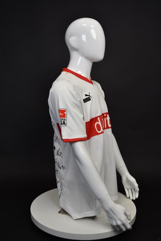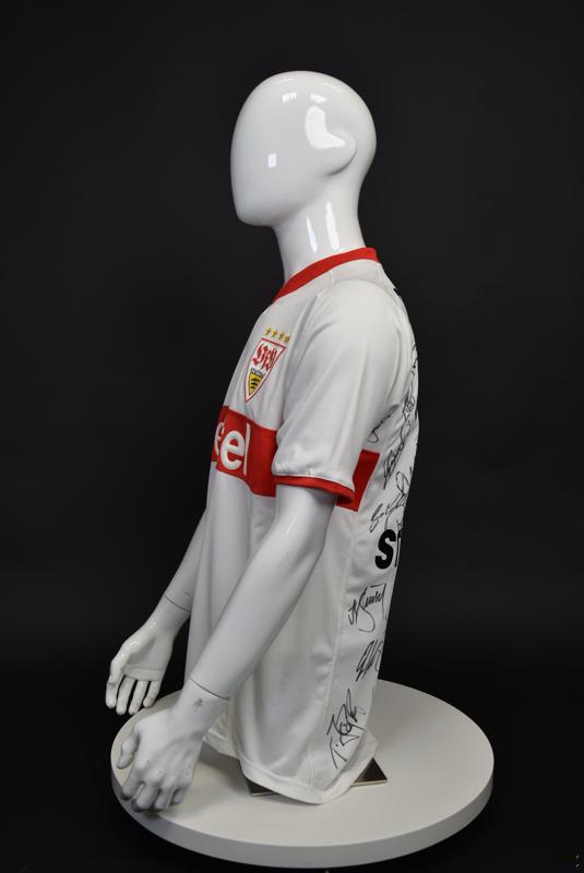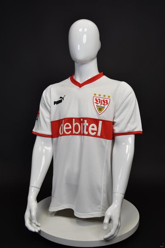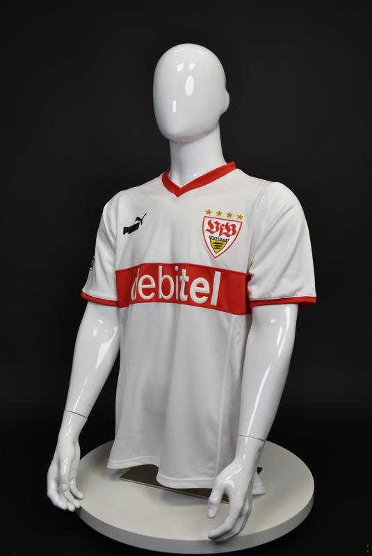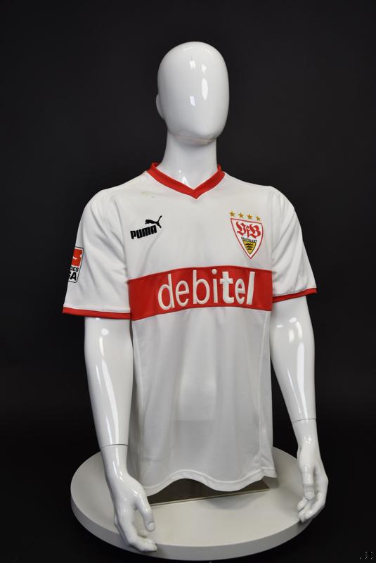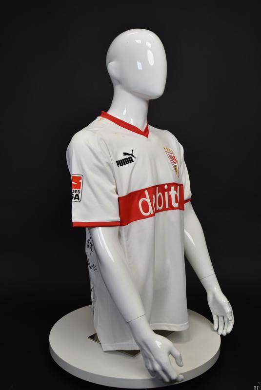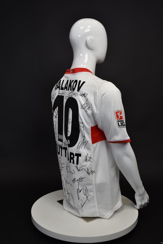 Stuttgart shirt worn by Krasimir Balakov against Wolfsburg in his last match as a professional footballer in the Bundesliga. The kit was signed by the entire team and was donated by Bala for an auction organized by the renowned local magazine Sport Bild. Years later, Bulgarian Football Shirts contacted the person who acquired it to buy it back and return it to Bulgaria. The last match of the great Bulgarian midfielder took place on May 24, 2003 at the Gottlieb-Daimler Stadium. The match ended in a 2:0 victory for the VfB, with Balakov receiving the honor of scoring from a penalty in his last match for the Die Schwaben. Stuttgart finished second in the Bundesliga and claimed a spot in the UEFA Champions League group stage. This kit is of exceptional historical and collector's value for the Bulgarian football, and the symbolism on it is far from only in the traces of use that still remain. Mud and blood, which are an excellent metaphor for the incredible perseverance, work ethics and attitude that one of the greatest Bulgarian football players has put in throughout his career. The Puma jersey, with Balakov's name on the back, was made in Bulgaria. The last match against Wolfsburg took place on the most beloved and revered Bulgarian holiday - that of our alphabet and letters - the Day of the Holy Brothers Cyril and Methodius, of the Bulgarian alphabet, education and culture and of the Slavonic literature. The jersey itself is also remarkable by the four stars placed right above the crest, which go the four titles won by the Die Schwaben (Note: In 2007, VfB lifted their last Bundesliga title to date). What makes the shirt of this model unique is that the match against Wolfsburg and Krasimir Balakov's farewell game four days later are the only time in which Stuttgart puts four stars above the crest. In addition to that, having the shirt signed by the entire squad, staff and management makes it a unqiue piece of memorabilia not only for Bulgaria but of course also for VfB Stuttgart. The former Bulgarian International attacking midfielder spent 8 seasons at "Gottlieb-Daimler-Stadion" and went on to make 298 appearances for the club, scoring 73 goals. Balakov won the DFB Pokal in 1997, reached the final of Cup Winners' Cup in 1998 and said farewell to his career at Stuttgart as Bundesliga runner-up (2003). He made 92 appearances for Bulgaria between 1988 and 2003 (one of the best totals in national history) and scored 16 goals. Balakov is a bronze medalist from the 1994 FIFA World Cup and was voted to the World Cup All-Star team.