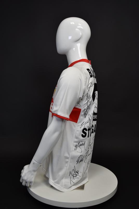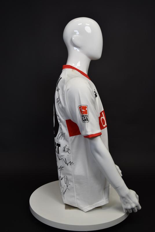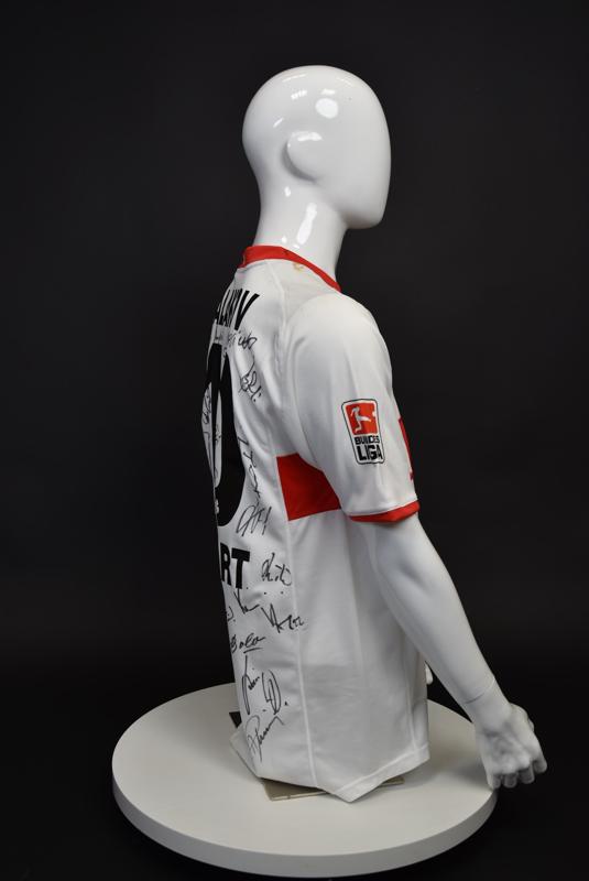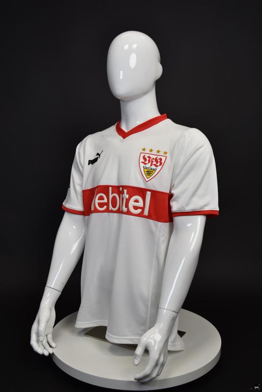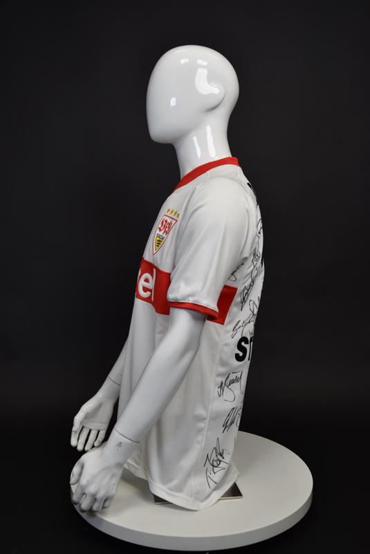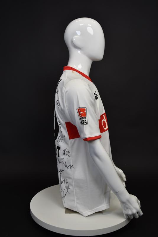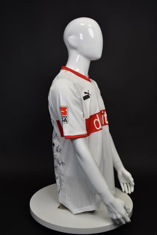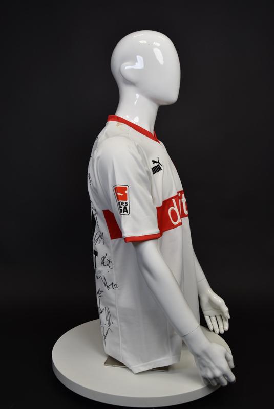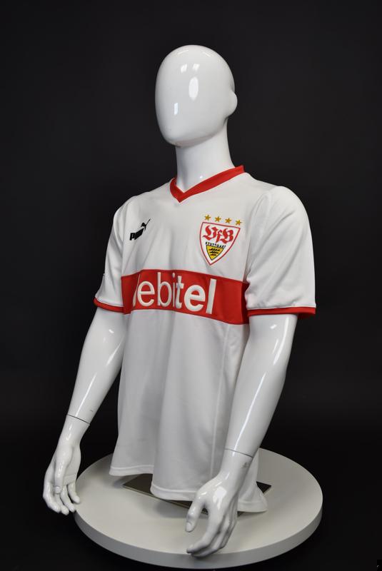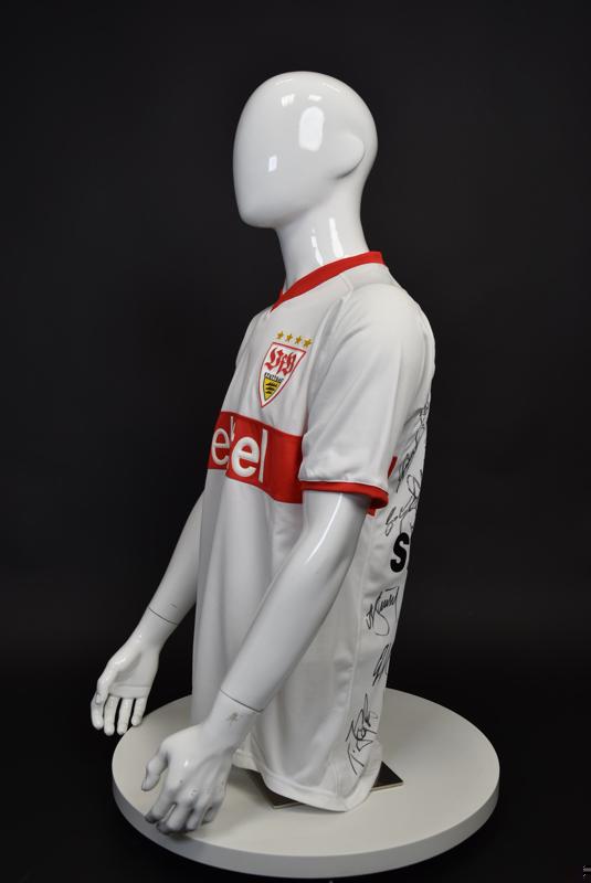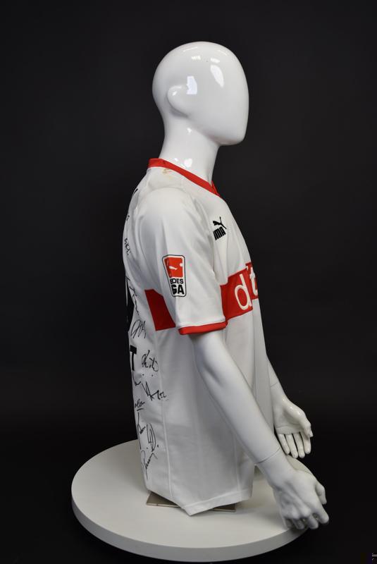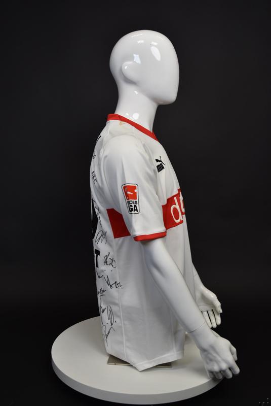 Stuttgart shirt worn by Krasimir Balakov against Wolfsburg in his last match as a professional footballer in the Bundesliga. The kit was signed by the entire team and was donated by Bala for an auction organized by the renowned local magazine Sport Bild. Years later, Bulgarian Football Shirts contacted the person who acquired it to buy it back and return it to Bulgaria. The last match of the great Bulgarian midfielder took place on May 24, 2003 at the Gottlieb-Daimler Stadium. The match ended in a 2:0 victory for the VfB, with Balakov receiving the honor of scoring from a penalty in his last match for the Die Schwaben. Stuttgart finished second in the Bundesliga and claimed a spot in the UEFA Champions League group stage. This kit is of exceptional historical and collector's value for the Bulgarian football, and the symbolism on it is far from only in the traces of use that still remain. Mud and blood, which are an excellent metaphor for the incredible perseverance, work ethics and attitude that one of the greatest Bulgarian football players has put in throughout his career. The Puma jersey, with Balakov's name on the back, was made in Bulgaria. The last match against Wolfsburg took place on the most beloved and revered Bulgarian holiday - that of our alphabet and letters - the Day of the Holy Brothers Cyril and Methodius, of the Bulgarian alphabet, education and culture and of the Slavonic literature. The jersey itself is also remarkable by the four stars placed right above the crest, which go the four titles won by the Die Schwaben (Note: In 2007, VfB lifted their last Bundesliga title to date). What makes the shirt of this model unique is that the match against Wolfsburg and Krasimir Balakov's farewell game four days later are the only time in which Stuttgart puts four stars above the crest. In addition to that, having the shirt signed by the entire squad, staff and management makes it a unqiue piece of memorabilia not only for Bulgaria but of course also for VfB Stuttgart. The former Bulgarian International attacking midfielder spent 8 seasons at "Gottlieb-Daimler-Stadion" and went on to make 298 appearances for the club, scoring 73 goals. Balakov won the DFB Pokal in 1997, reached the final of Cup Winners' Cup in 1998 and said farewell to his career at Stuttgart as Bundesliga runner-up (2003). He made 92 appearances for Bulgaria between 1988 and 2003 (one of the best totals in national history) and scored 16 goals. Balakov is a bronze medalist from the 1994 FIFA World Cup and was voted to the World Cup All-Star team.
