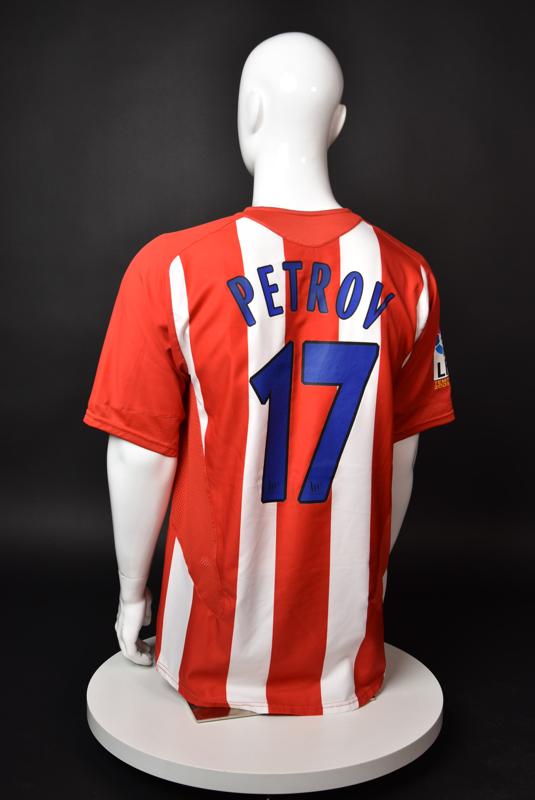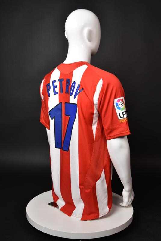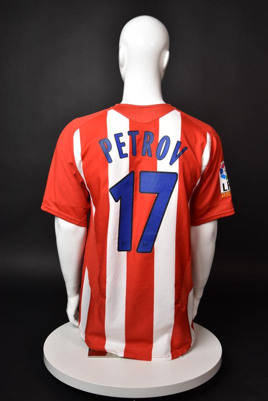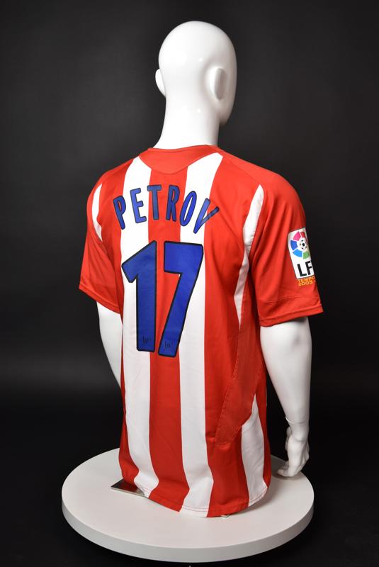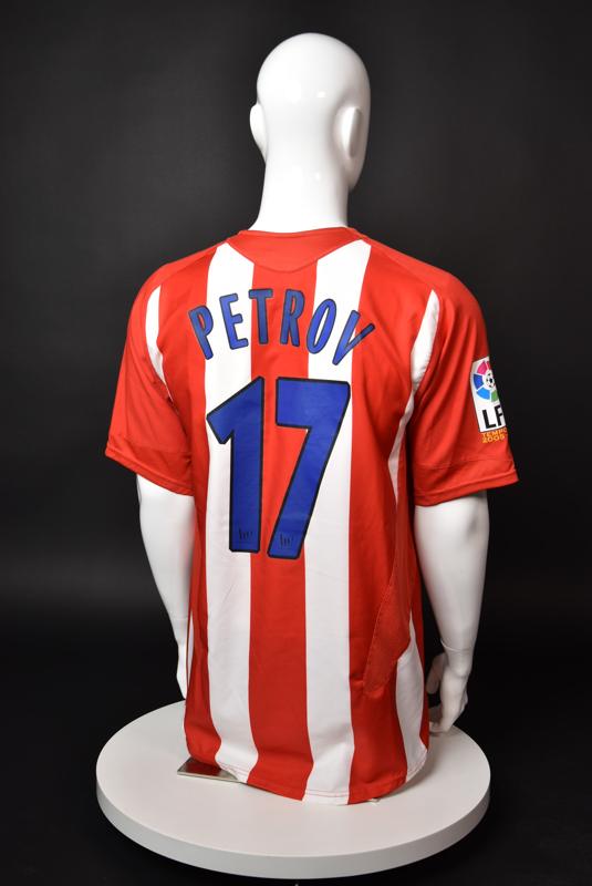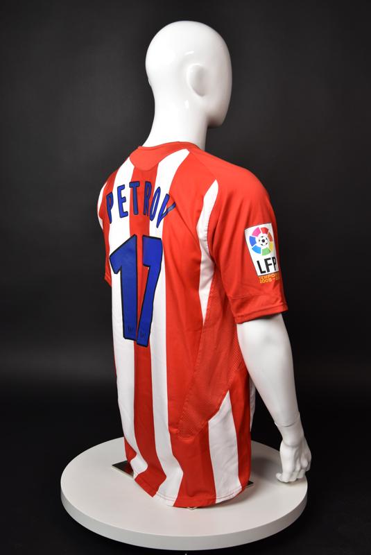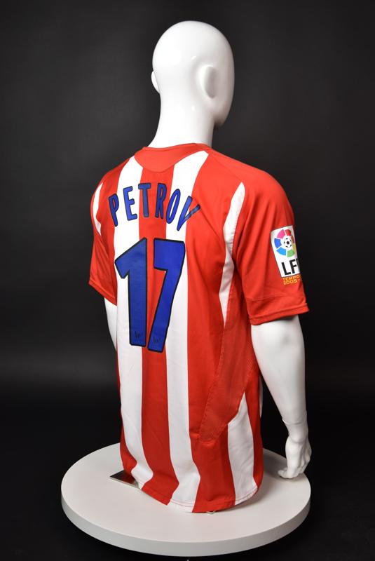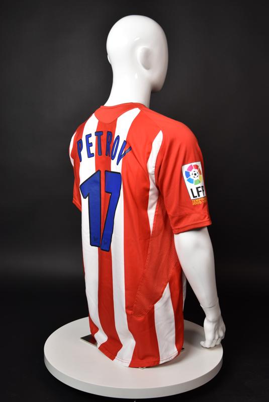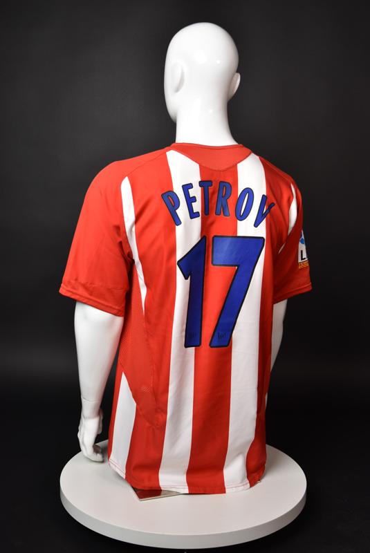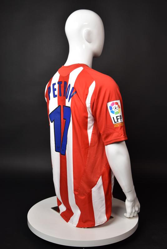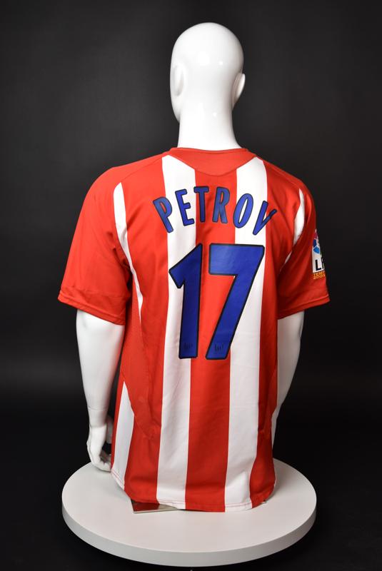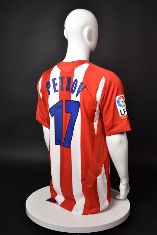 Atletico Madrid shirt worn by Martin Petrov in the 2-1 win over Barcelona, Game played at Vicente Calderon on September 18, 2005. In La Liga's matchday 3 clash, the Catalans took the lead in the 4th minute after a goal by Samuel Eto'o. Wearing this shirt, Petrov assisted to Fernando Torres for the equalizer. Atleti completed the comeback in the beginning of the second half, when another Balkan player, Serbian Mateja Kezman, scored the winning goal. The Bulgarian moved to the Vicente Calderon in the summer of 2005, after recording four exceptional seasons in the ranks of the German side Vfl Wolfsburg. The former Bulgarian international spent two seasons in the Spanish capital and went on to make 52 appearances, scoring 3 goals. Petrov earned 90 caps for the national team, scoring 19 goals. He was part of the squad at the 2004 European Championship in Portugal, excelling in all three games and scoring Bulgaria's only goal at the finals - a penalty against Italy in the 1:2 loss. Petrov has won the League title and the League cup of both Bulgarian and Swiss championships, with CSKA Sofia and Servette Geneva, respectively. In 2006, he was voted the Bulgarian Footballer of the Year award.