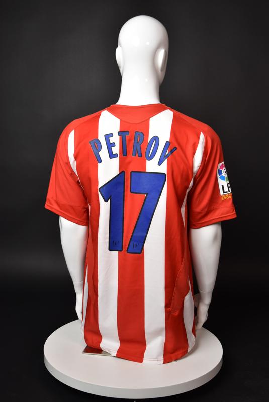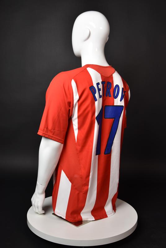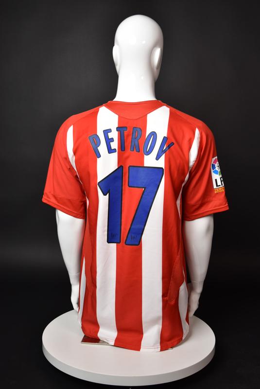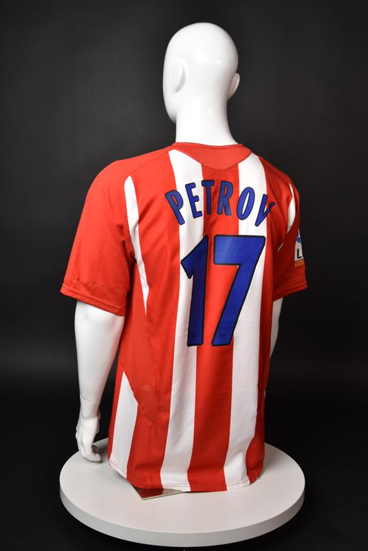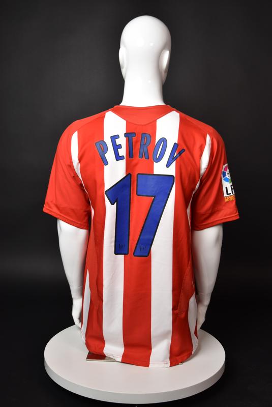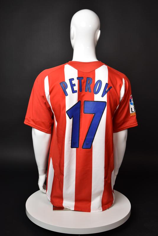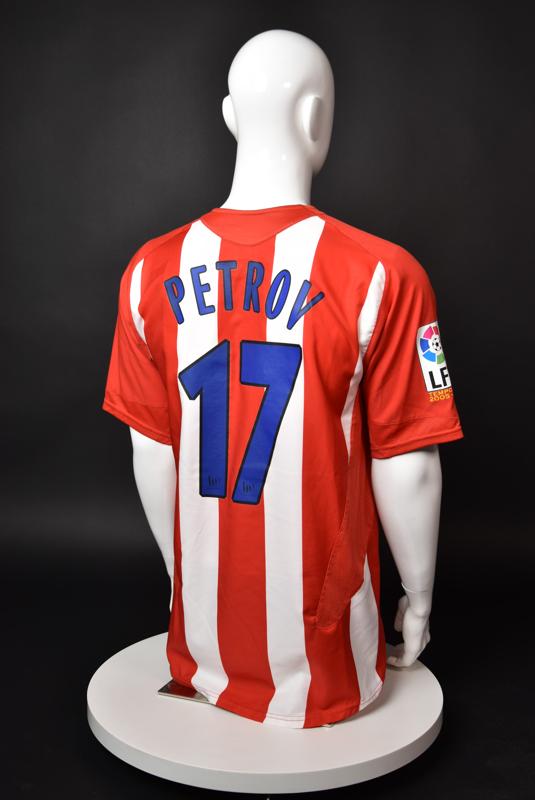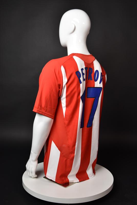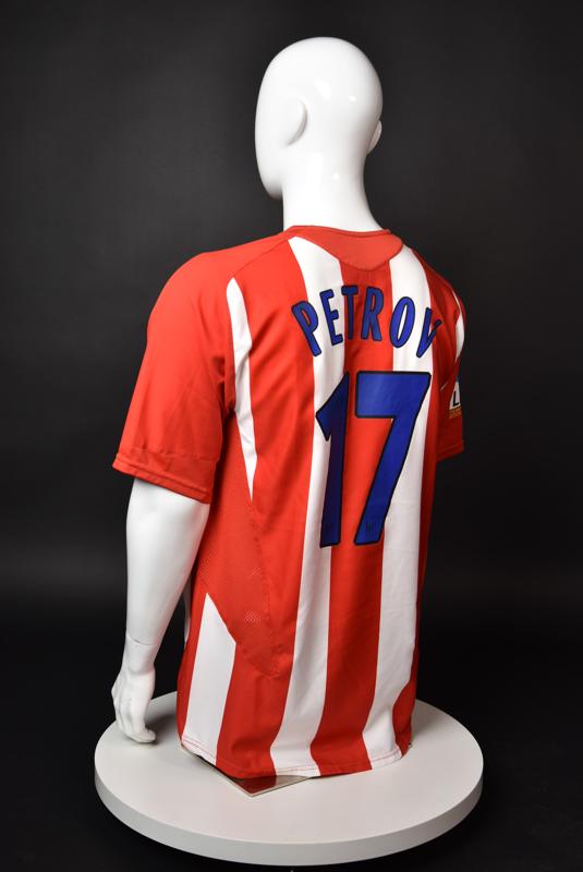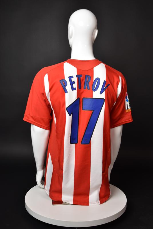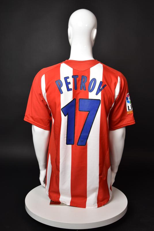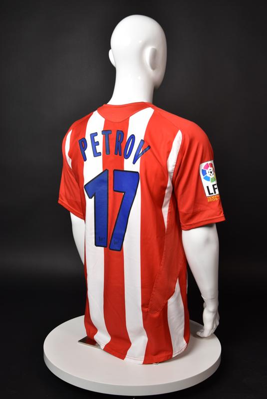 Atletico Madrid shirt worn by Martin Petrov in the 2-1 win over Barcelona, Game played at Vicente Calderon on September 18, 2005. In La Liga's matchday 3 clash, the Catalans took the lead in the 4th minute after a goal by Samuel Eto'o. Wearing this shirt, Petrov assisted to Fernando Torres for the equalizer. Atleti completed the comeback in the beginning of the second half, when another Balkan player, Serbian Mateja Kezman, scored the winning goal. The Bulgarian moved to the Vicente Calderon in the summer of 2005, after recording four exceptional seasons in the ranks of the German side Vfl Wolfsburg. The former Bulgarian international spent two seasons in the Spanish capital and went on to make 52 appearances, scoring 3 goals. Petrov earned 90 caps for the national team, scoring 19 goals. He was part of the squad at the 2004 European Championship in Portugal, excelling in all three games and scoring Bulgaria's only goal at the finals - a penalty against Italy in the 1:2 loss. Petrov has won the League title and the League cup of both Bulgarian and Swiss championships, with CSKA Sofia and Servette Geneva, respectively. In 2006, he was voted the Bulgarian Footballer of the Year award.