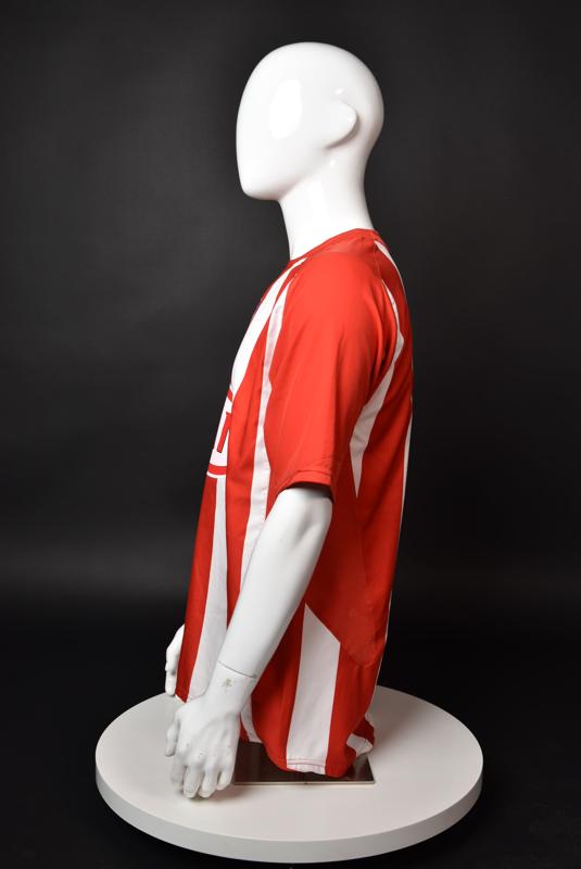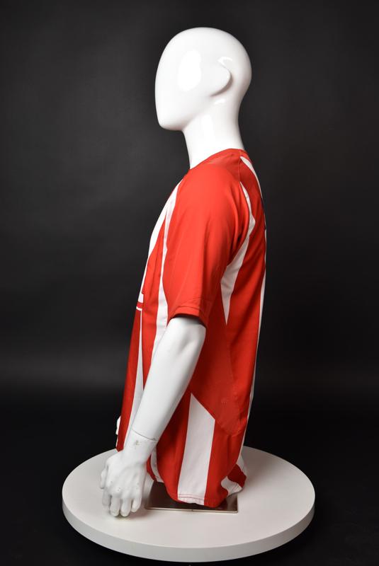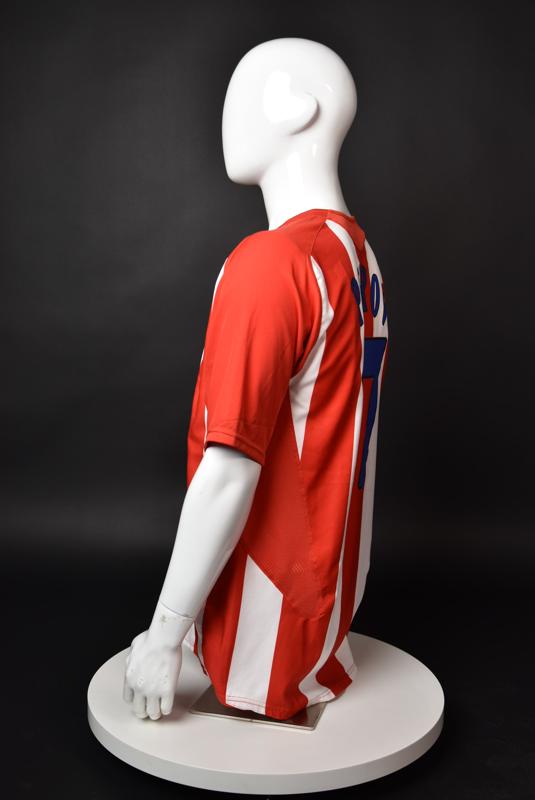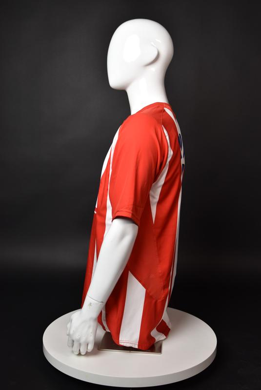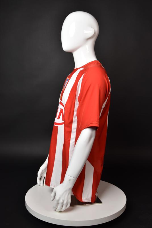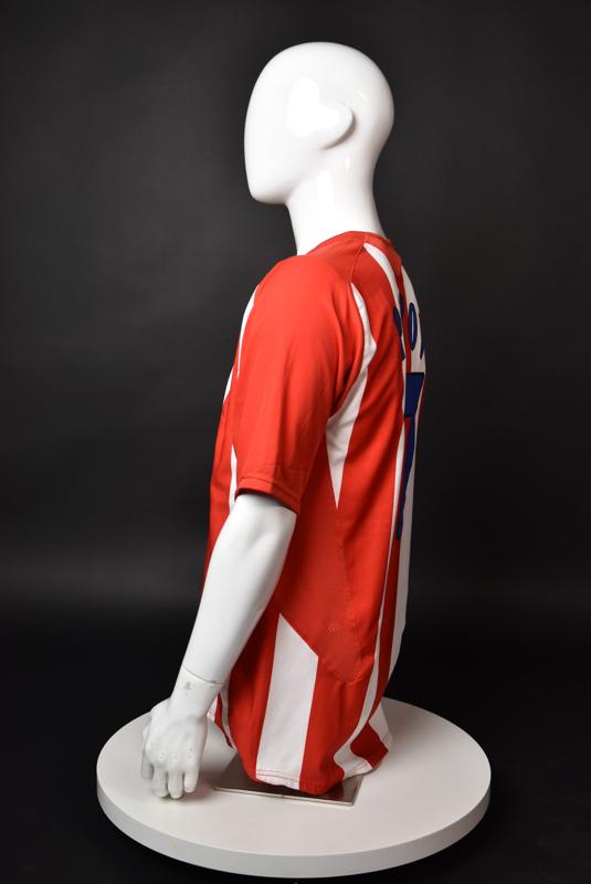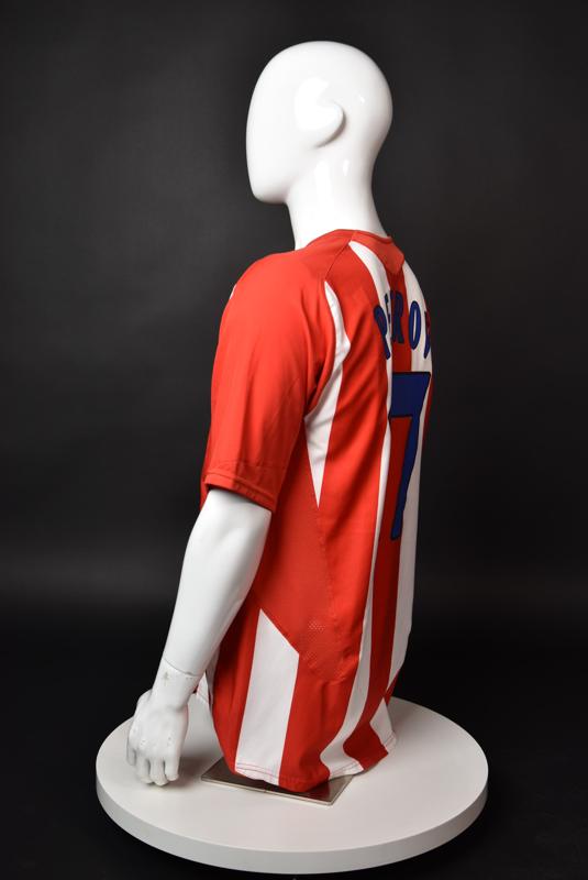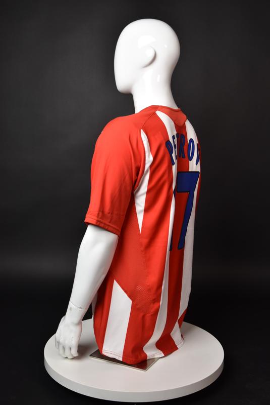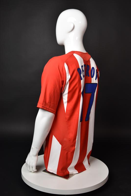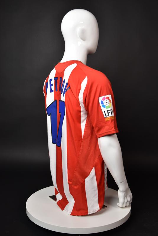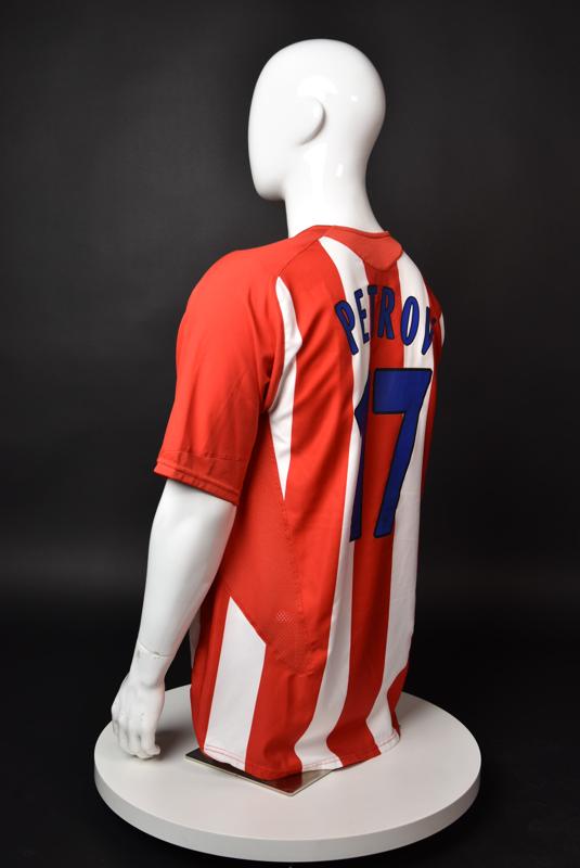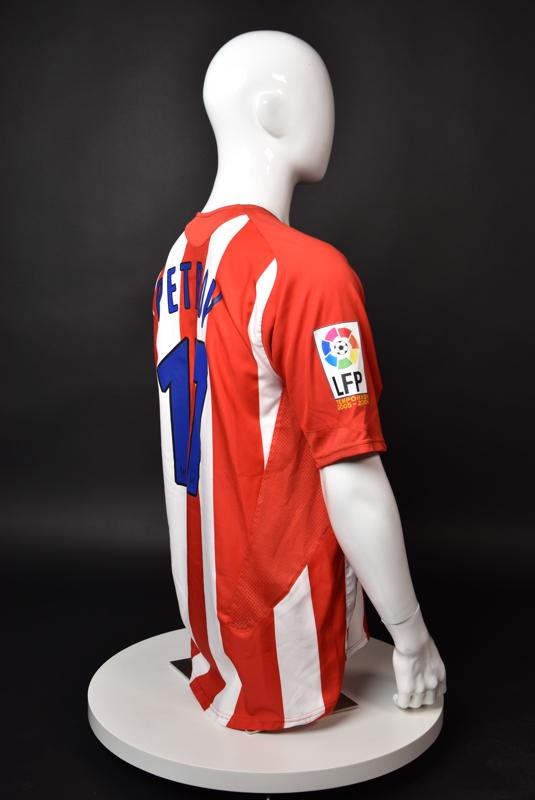 Atletico Madrid shirt worn by Martin Petrov in the 2-1 win over Barcelona, Game played at Vicente Calderon on September 18, 2005. In La Liga's matchday 3 clash, the Catalans took the lead in the 4th minute after a goal by Samuel Eto'o. Wearing this shirt, Petrov assisted to Fernando Torres for the equalizer. Atleti completed the comeback in the beginning of the second half, when another Balkan player, Serbian Mateja Kezman, scored the winning goal. The Bulgarian moved to the Vicente Calderon in the summer of 2005, after recording four exceptional seasons in the ranks of the German side Vfl Wolfsburg. The former Bulgarian international spent two seasons in the Spanish capital and went on to make 52 appearances, scoring 3 goals. Petrov earned 90 caps for the national team, scoring 19 goals. He was part of the squad at the 2004 European Championship in Portugal, excelling in all three games and scoring Bulgaria's only goal at the finals - a penalty against Italy in the 1:2 loss. Petrov has won the League title and the League cup of both Bulgarian and Swiss championships, with CSKA Sofia and Servette Geneva, respectively. In 2006, he was voted the Bulgarian Footballer of the Year award.